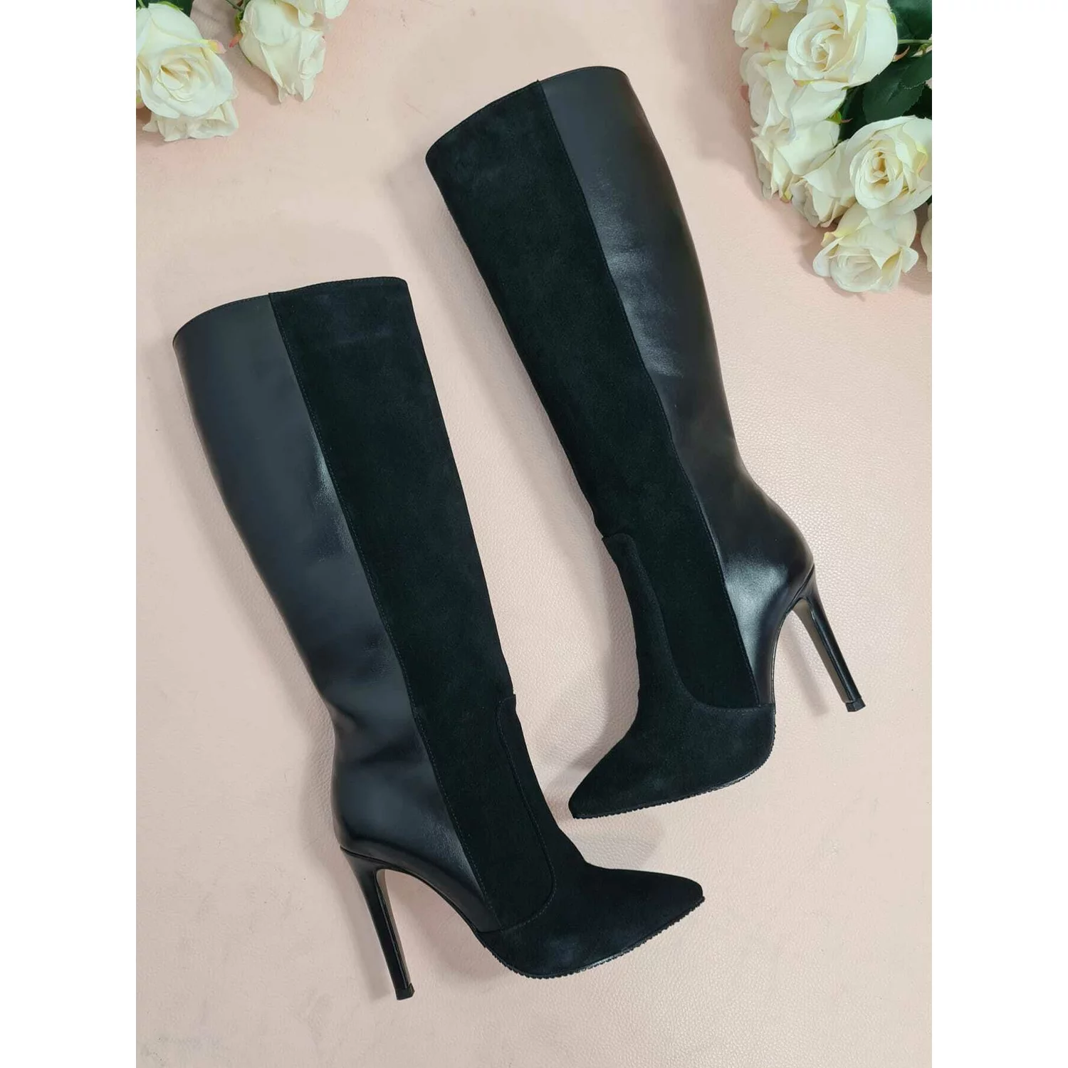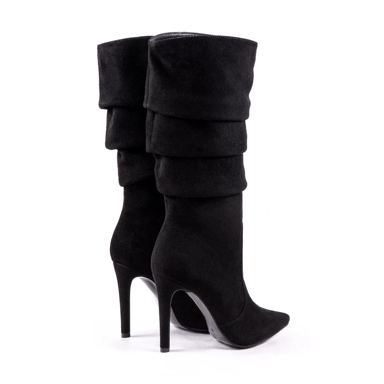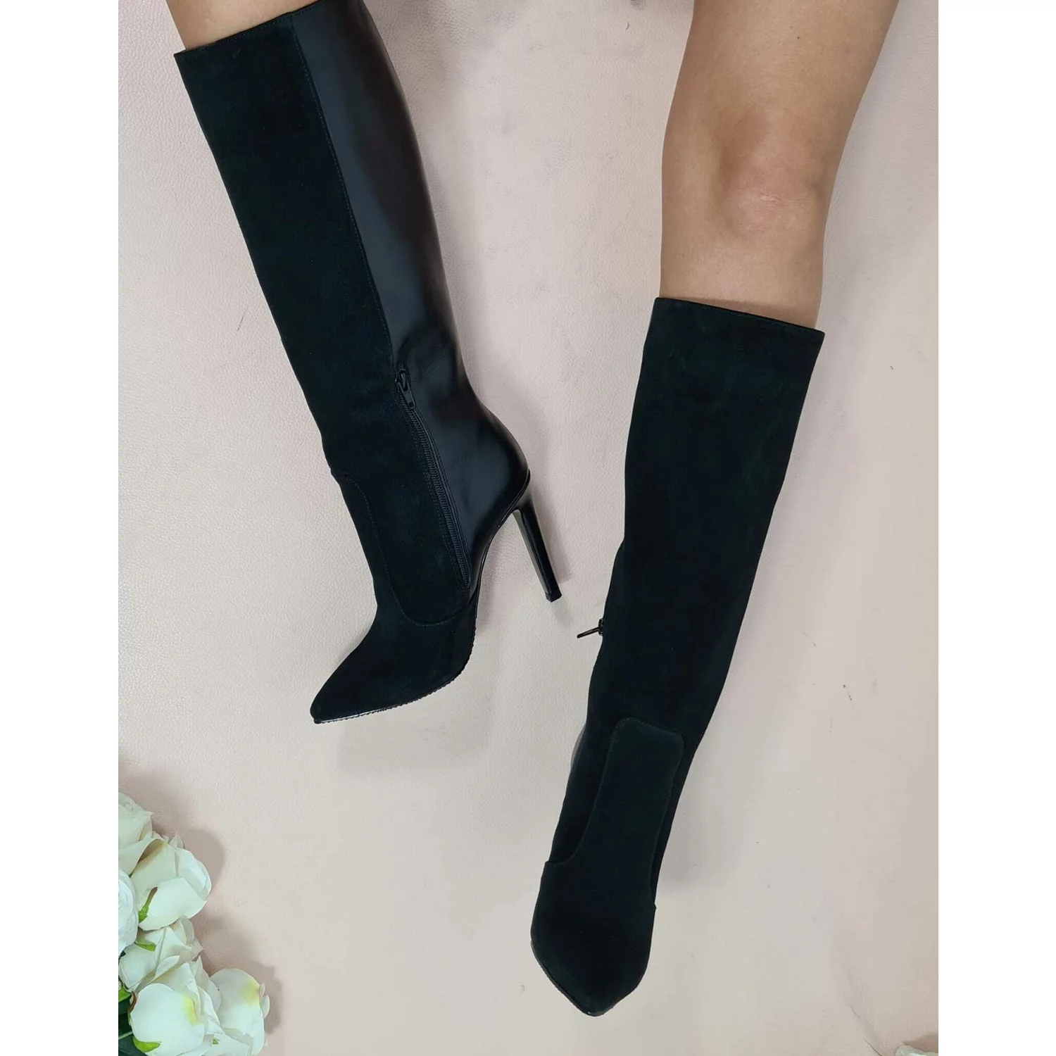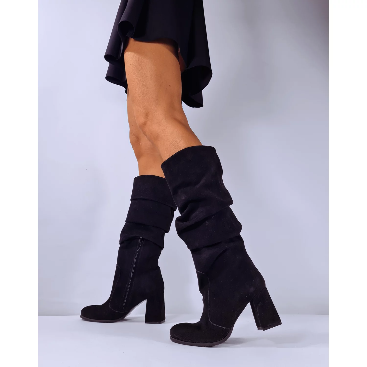 Cizme dama Piele Naturala Negre camoscio Elastice Anubis