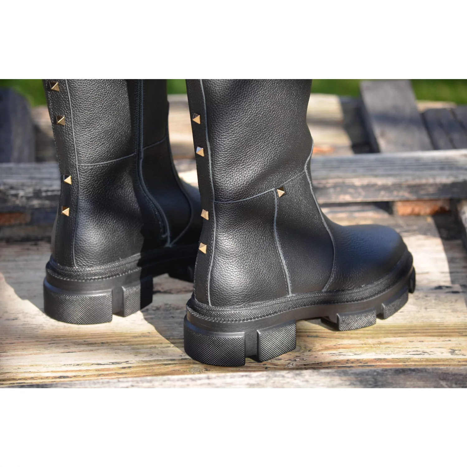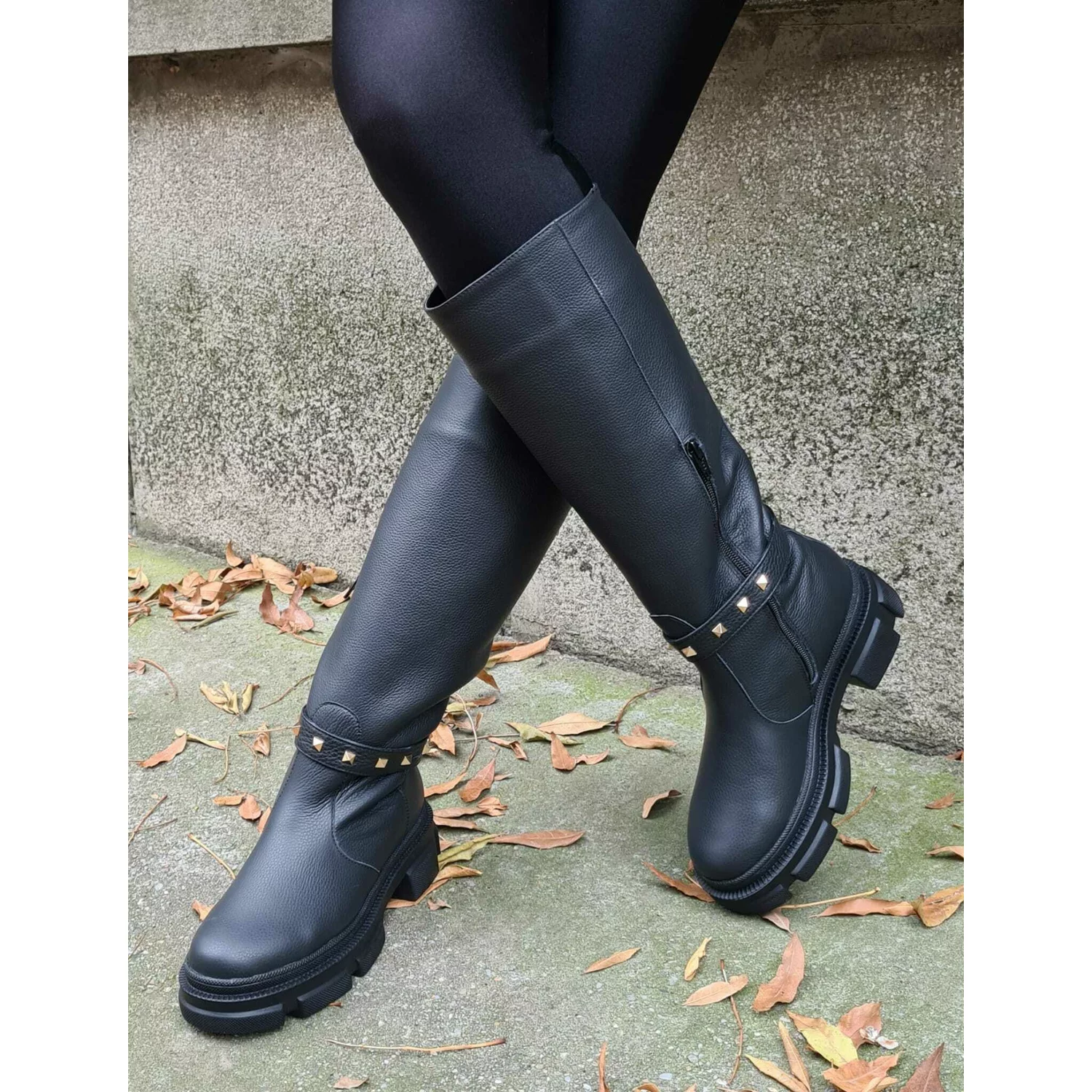 Cizme cu carambi detasabili Piele Naturala Negre Jinx
