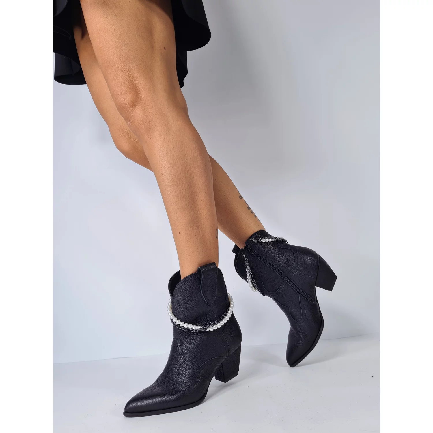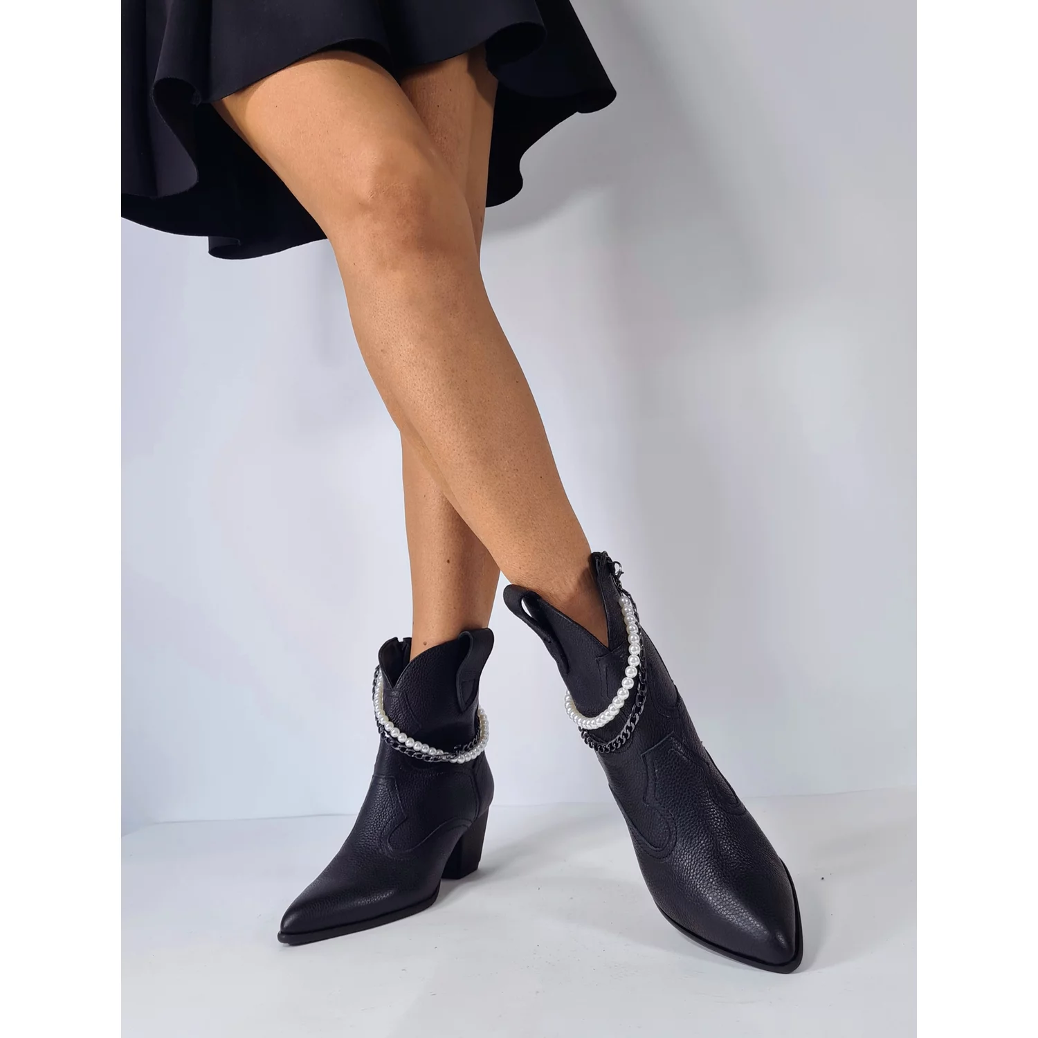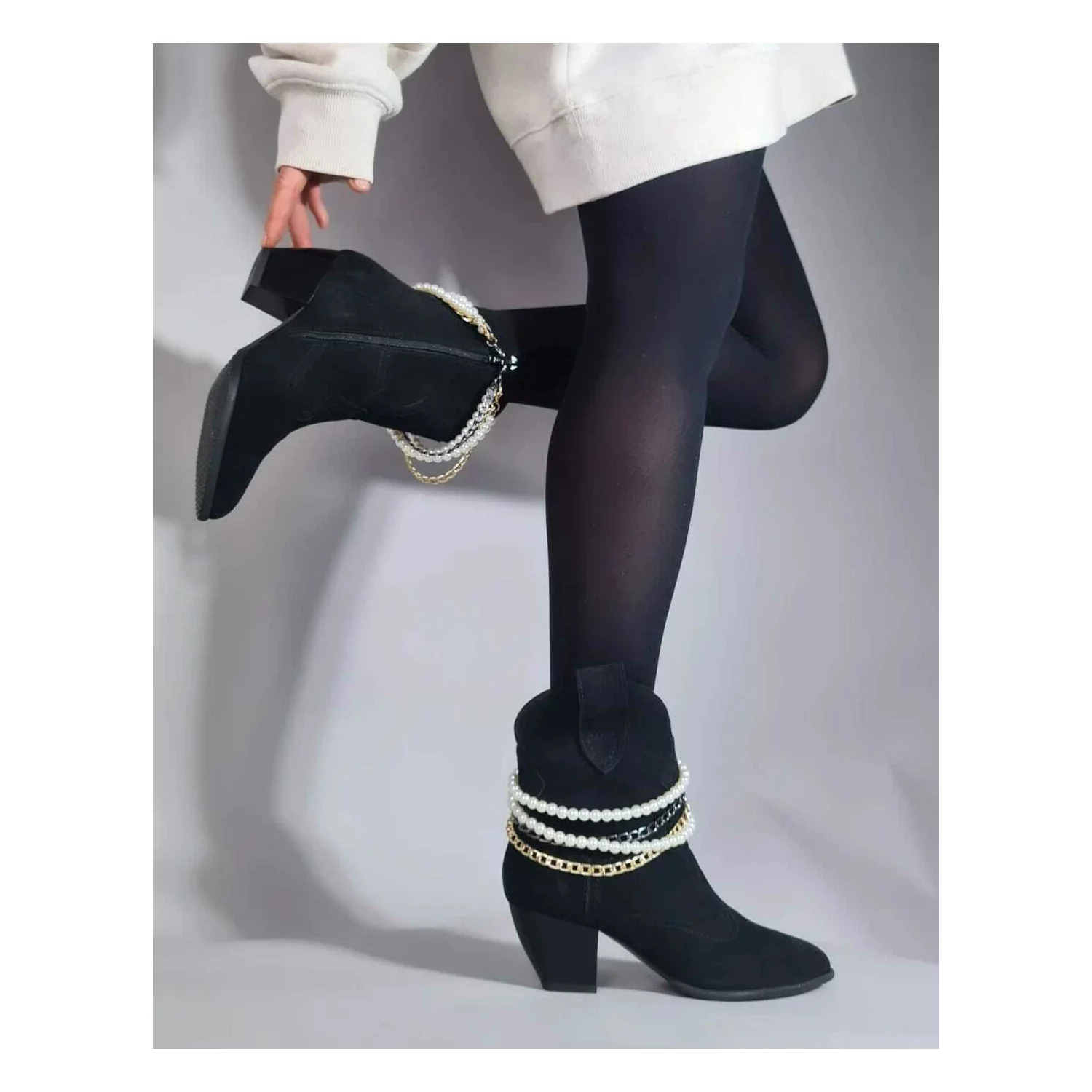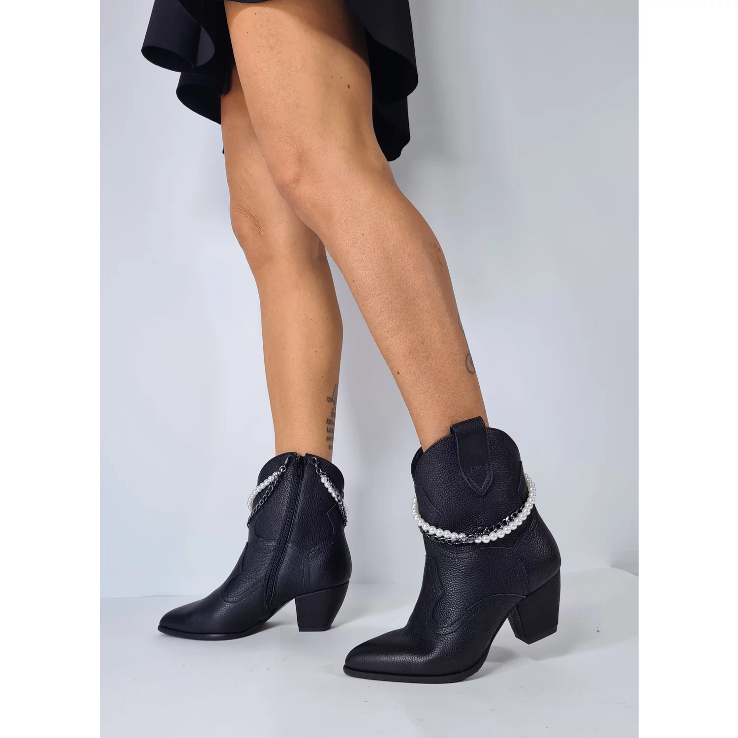 Ciocate dama Piele Naturala Negre accesorizate cu lant perle Sisa