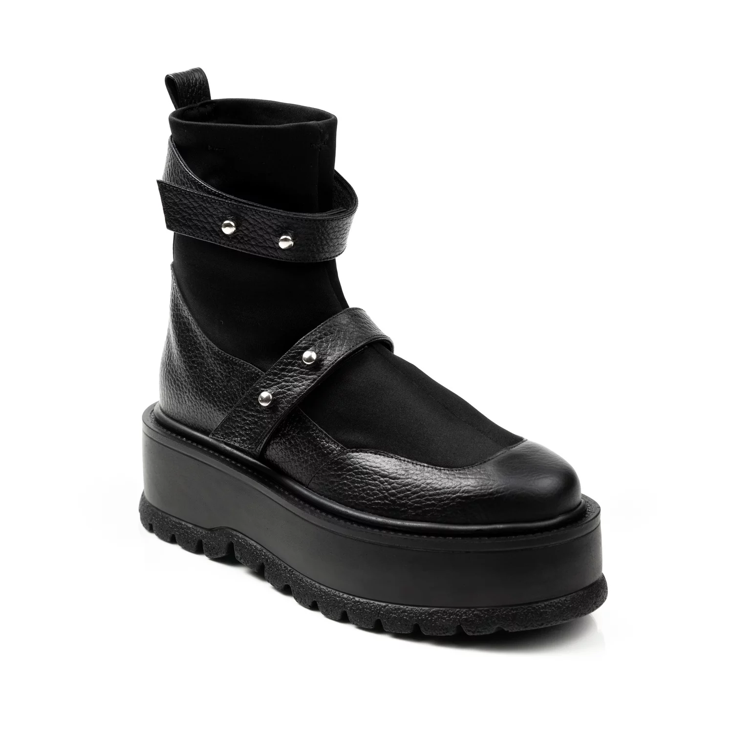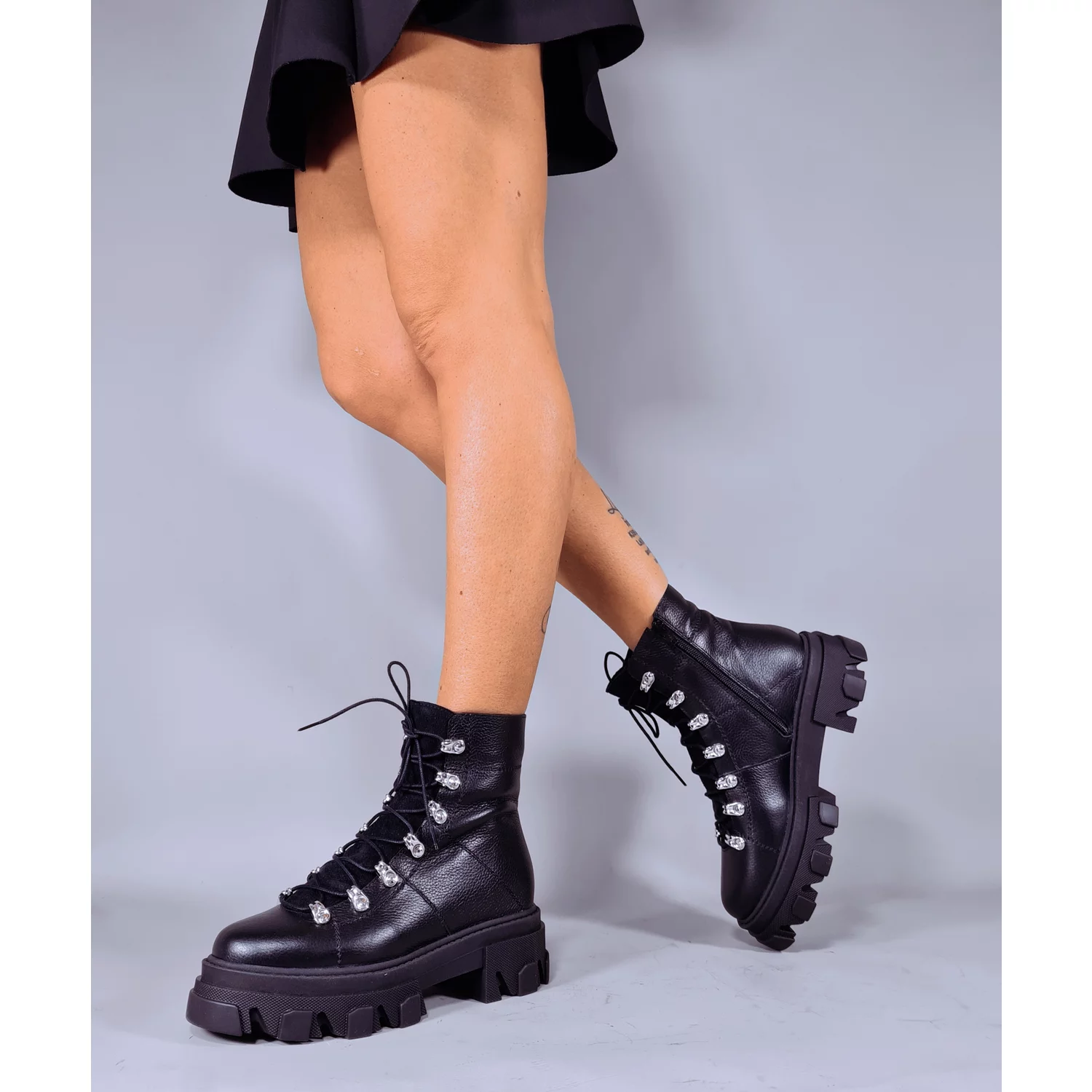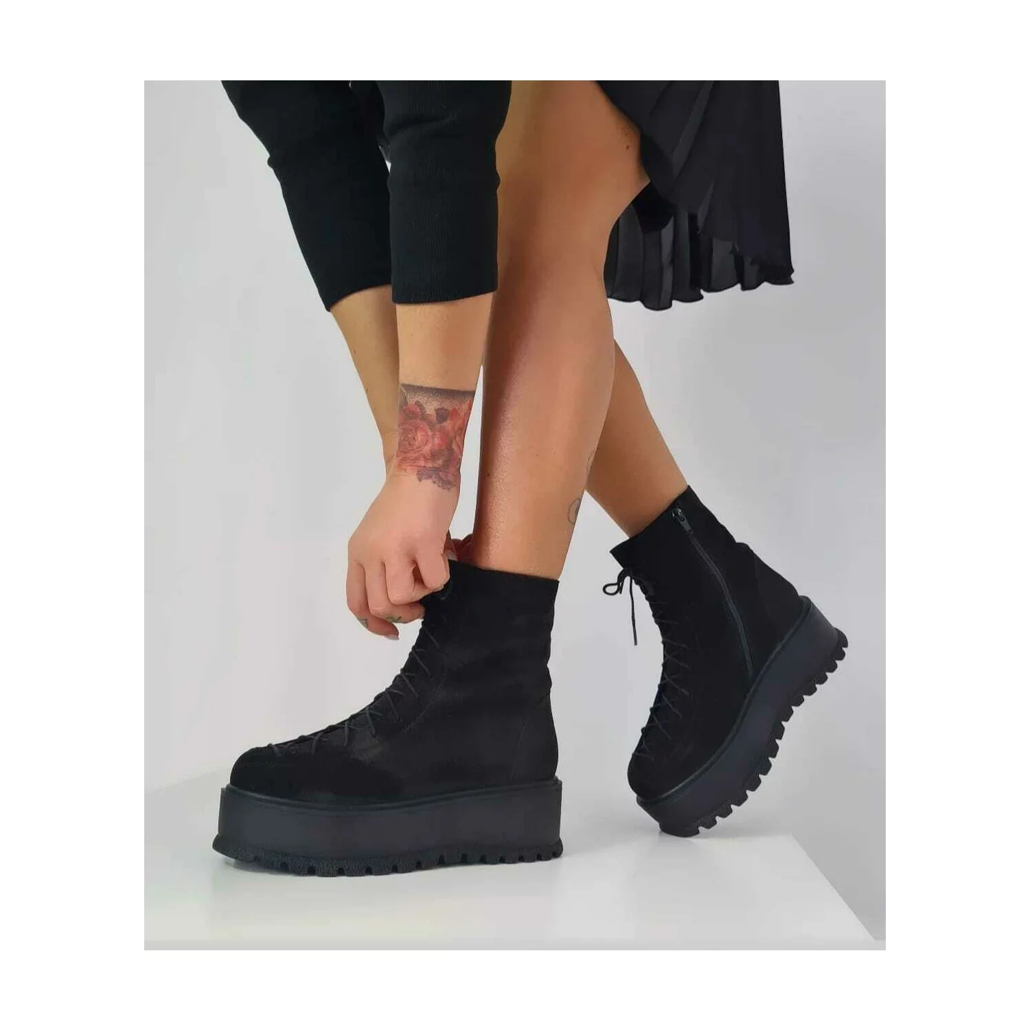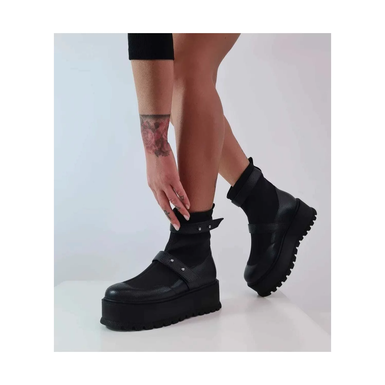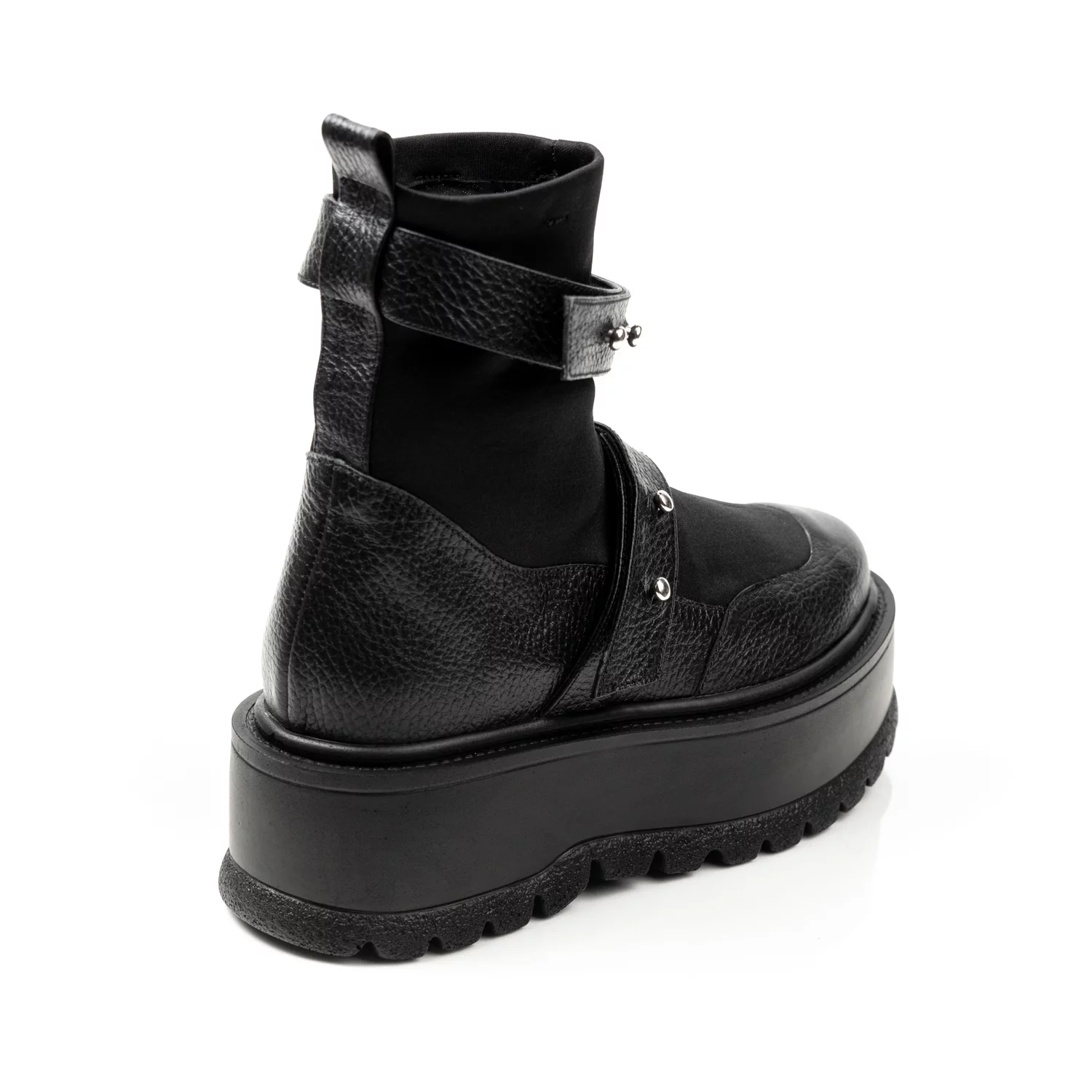 Ghete din Piele Naturala Negre cu platforma Garkony Urban Queen