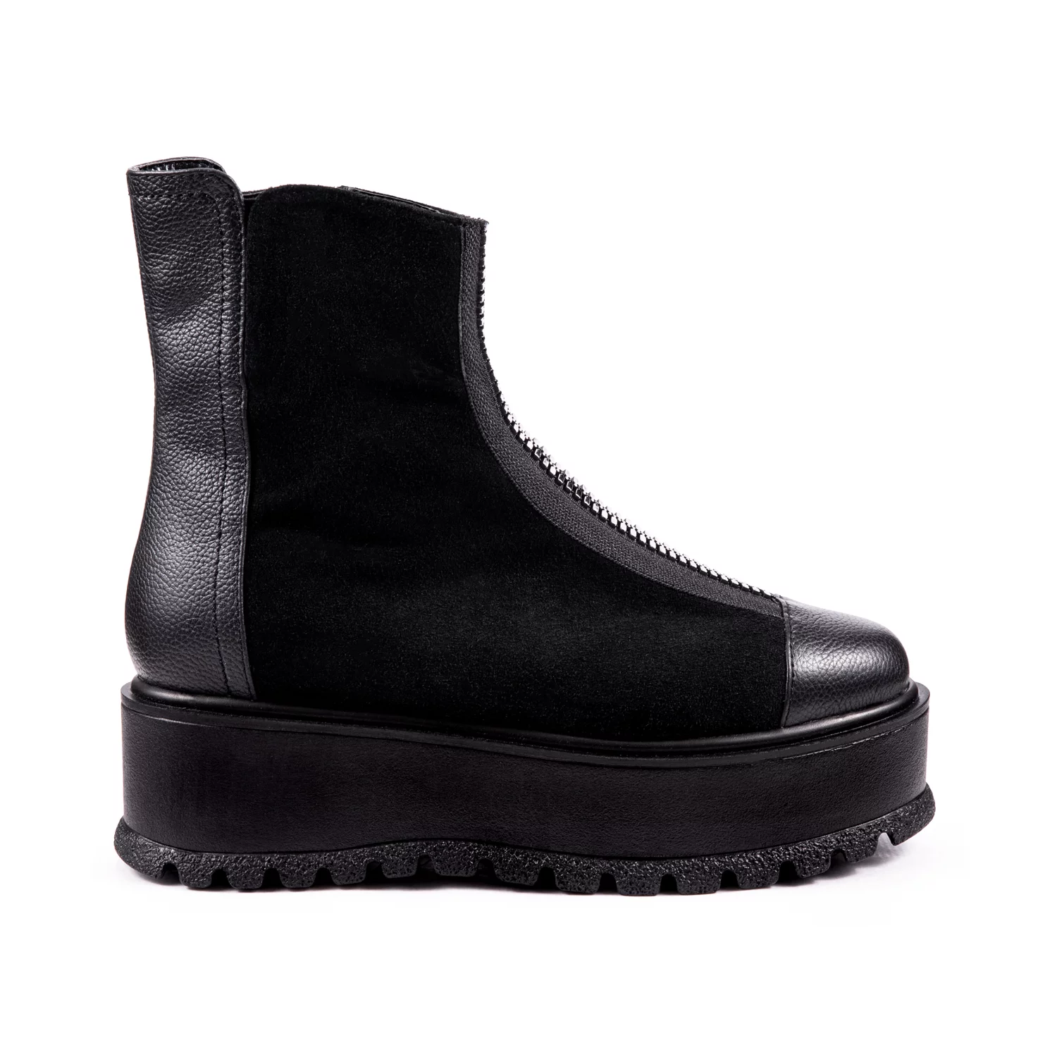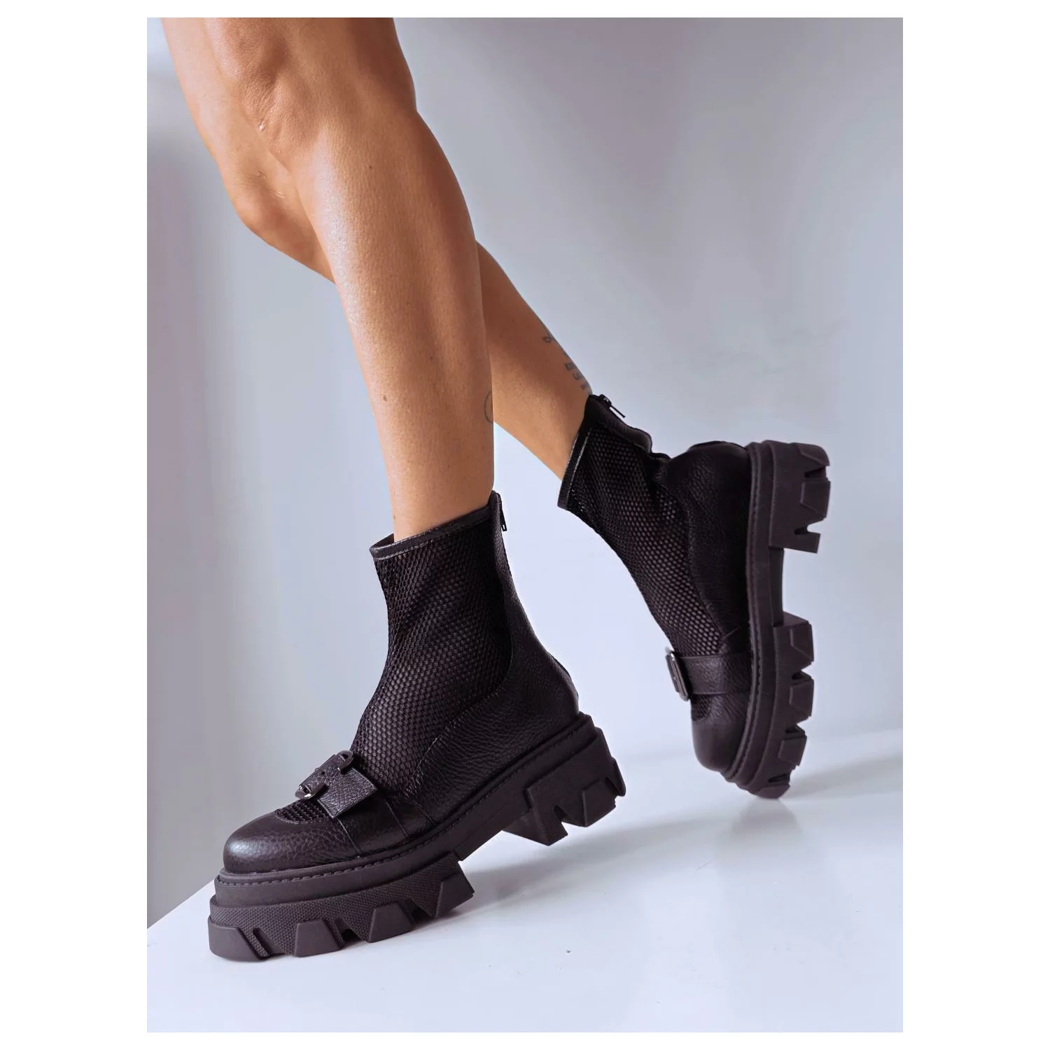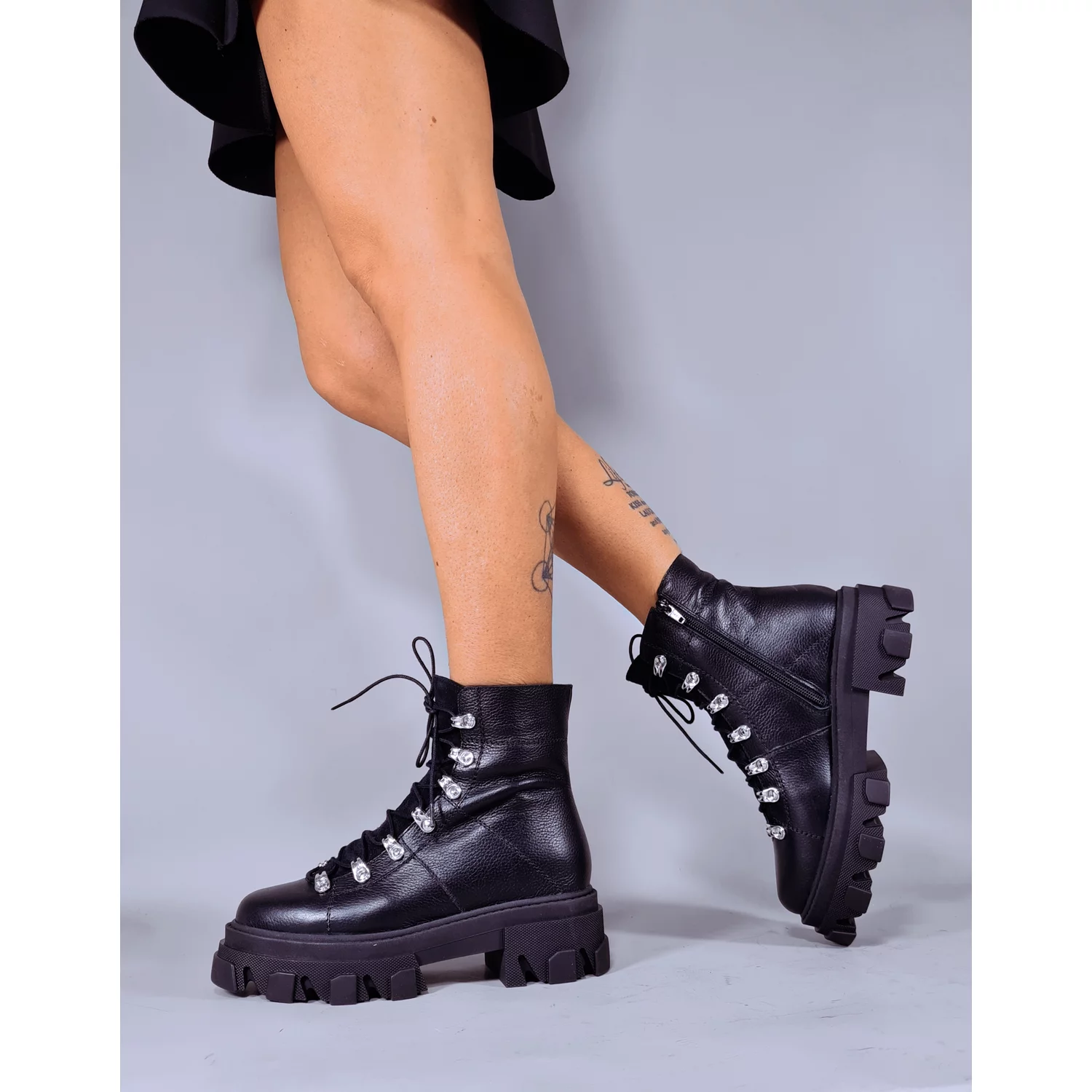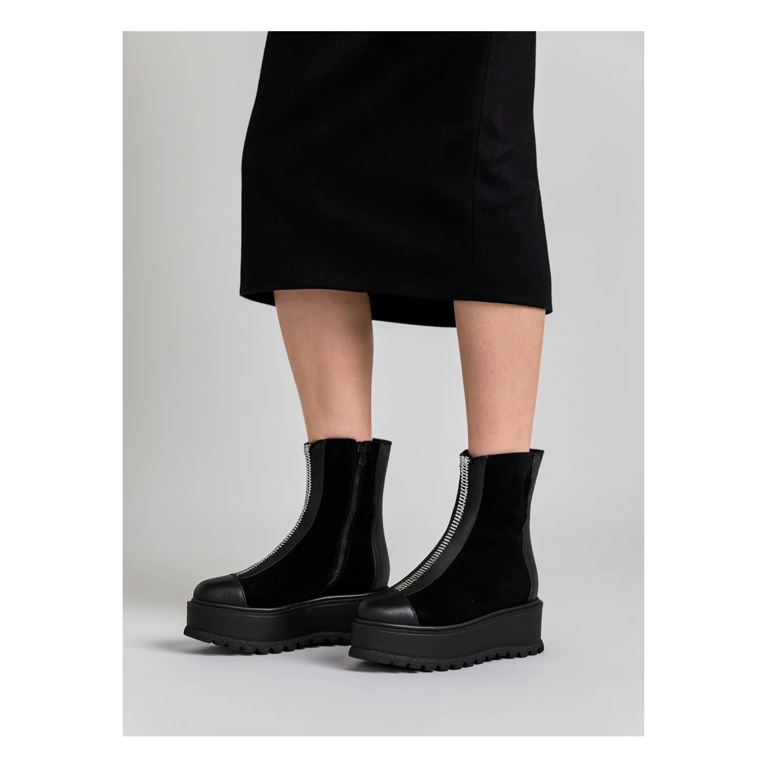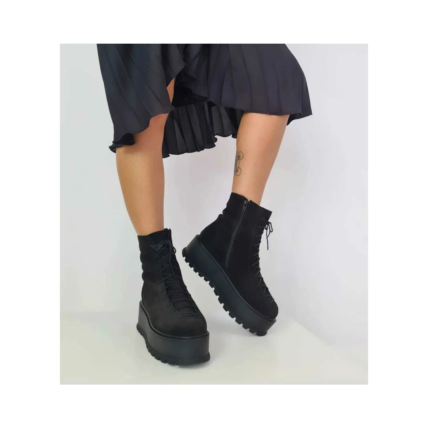 Ghete din Piele Naturala Negre cu platforma Garkony Urban Queen