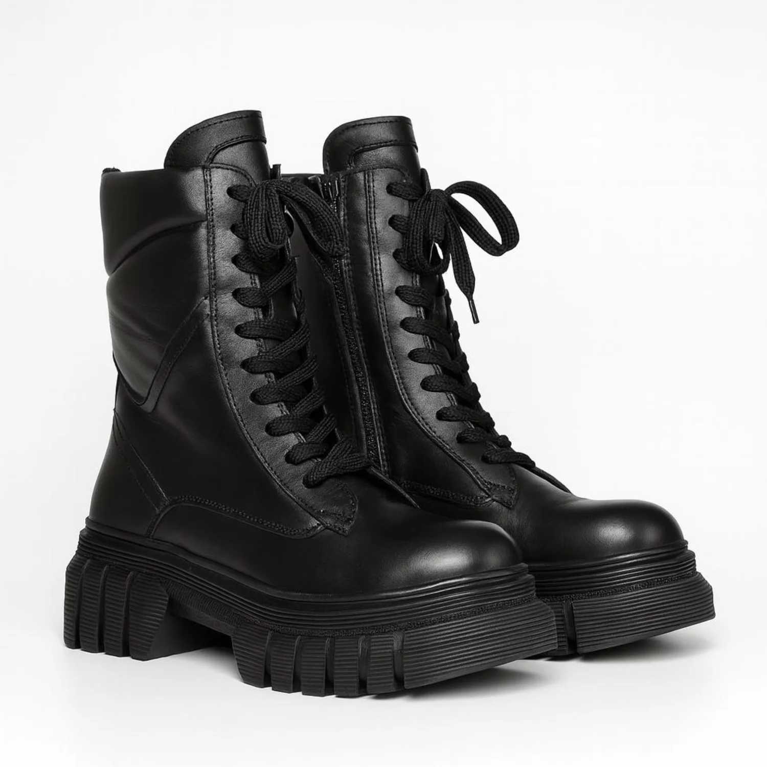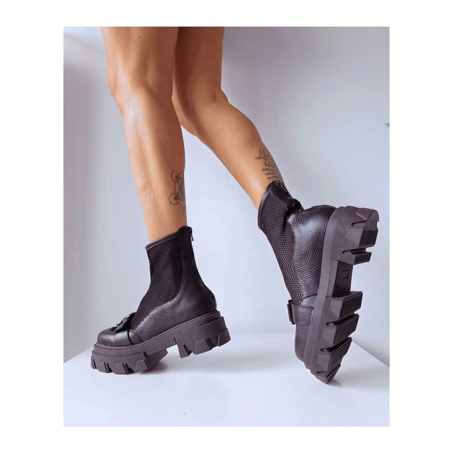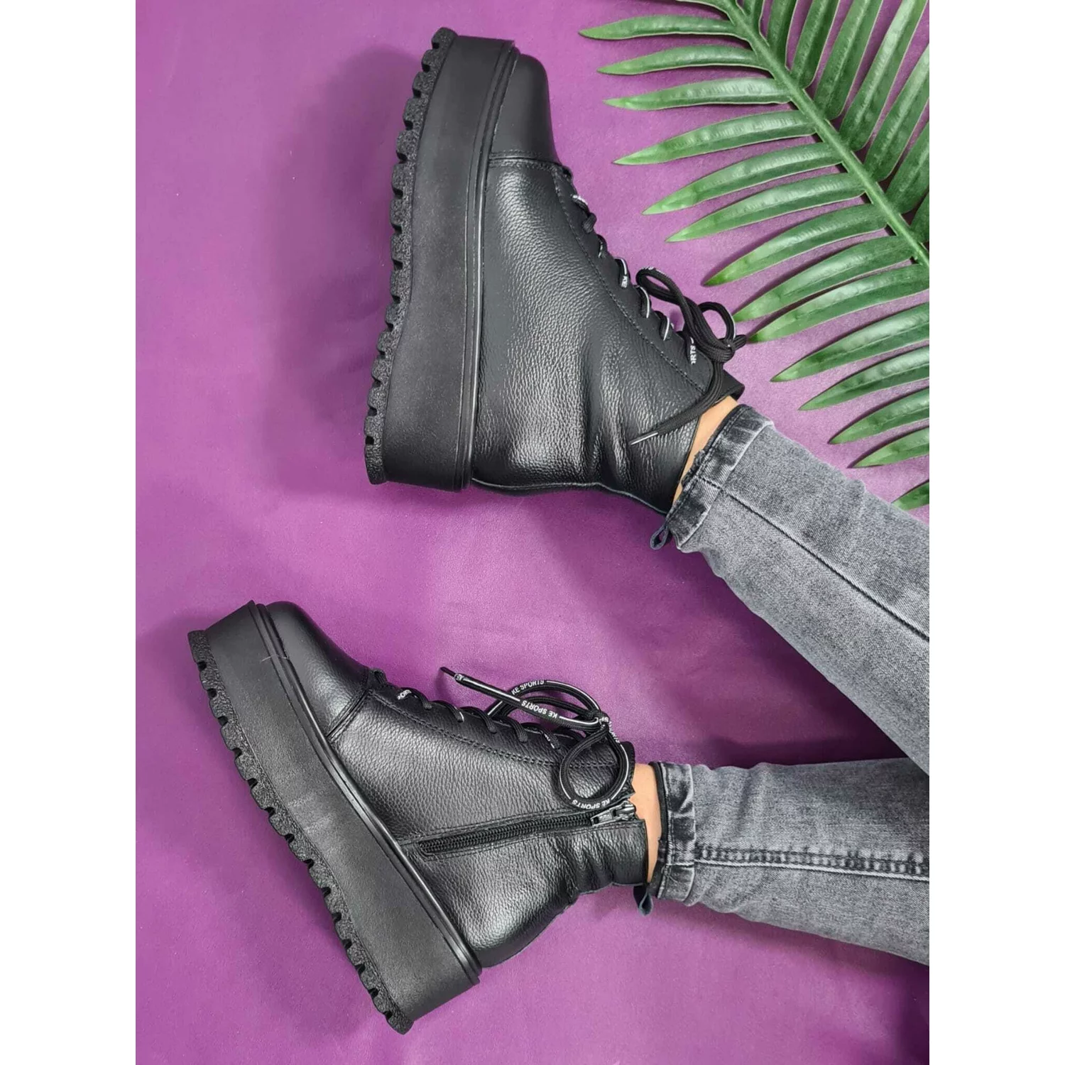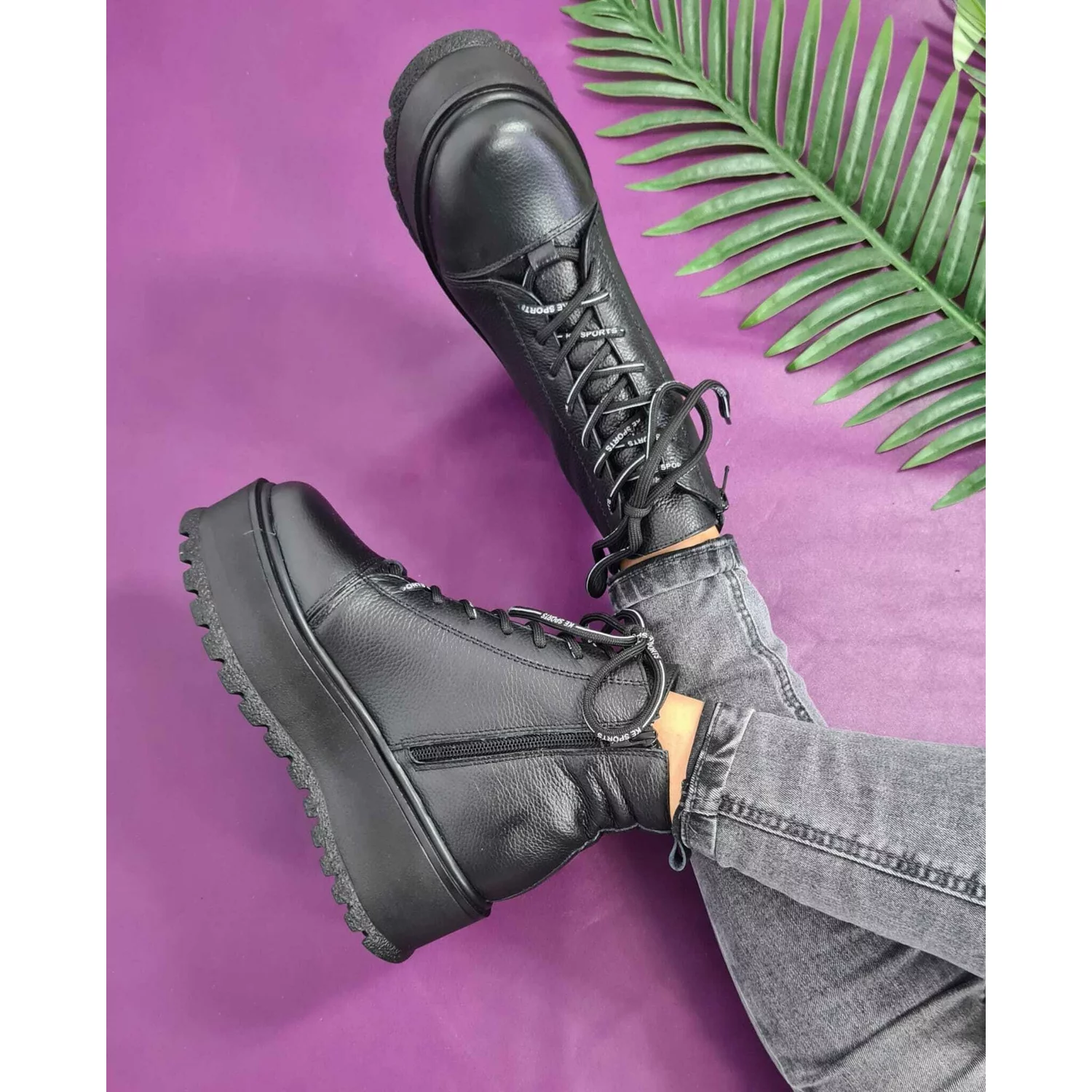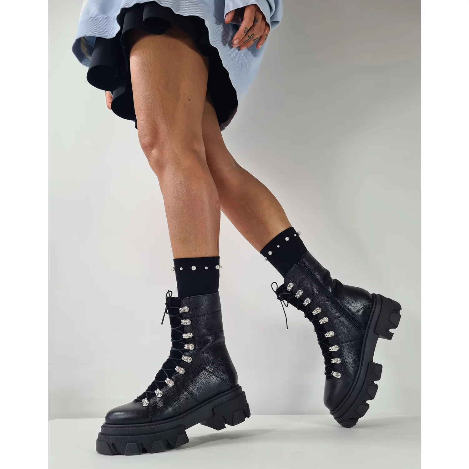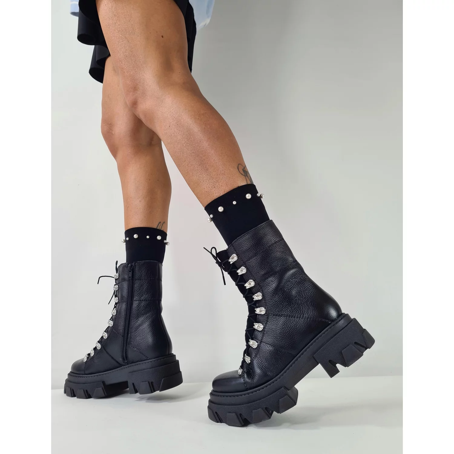 Ghete din Piele Naturala Negre cu platforma Garkony Urban Queen