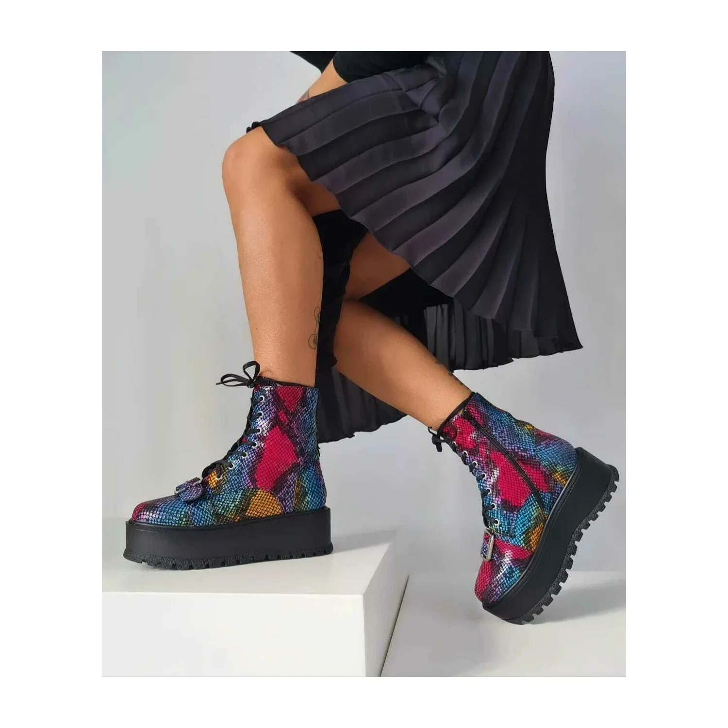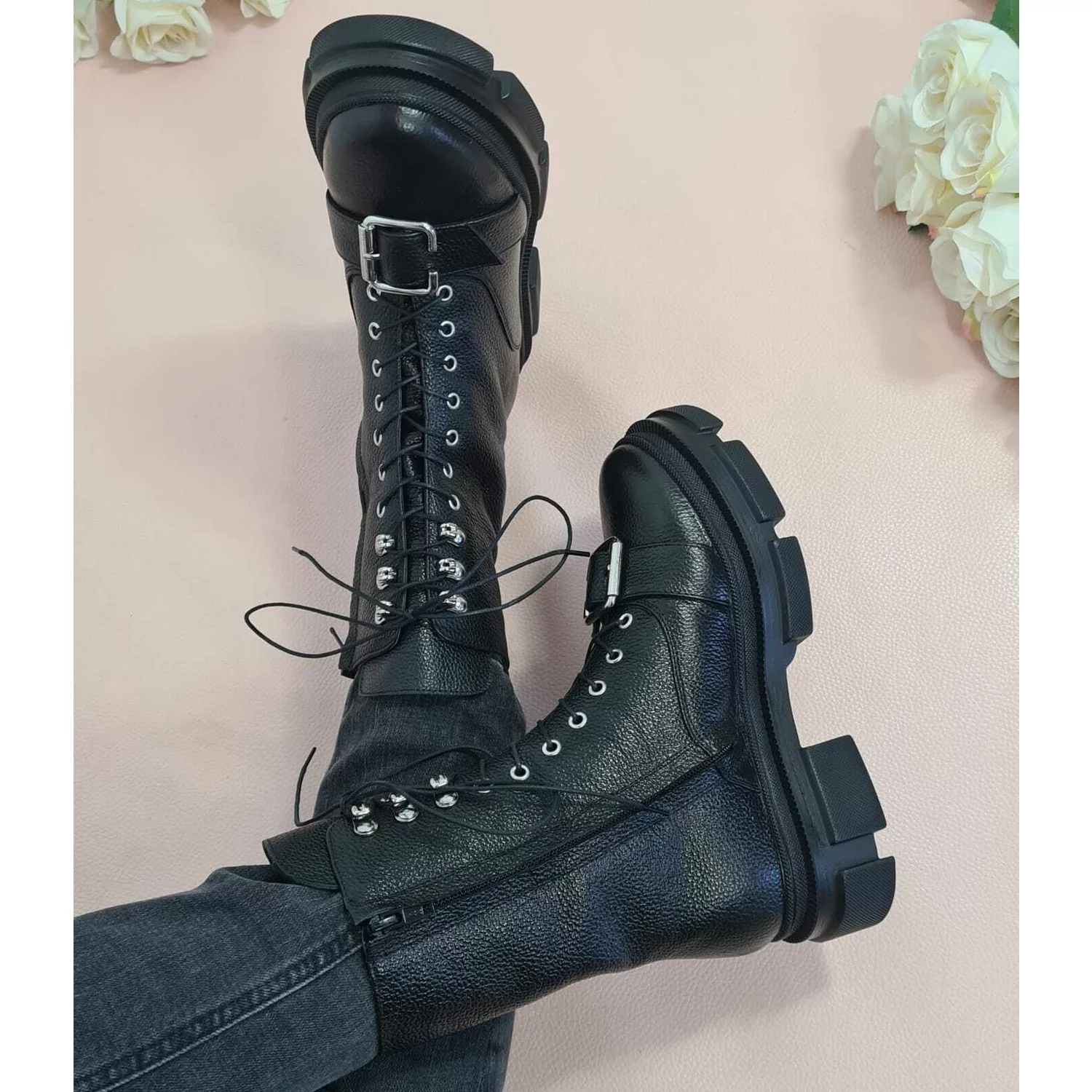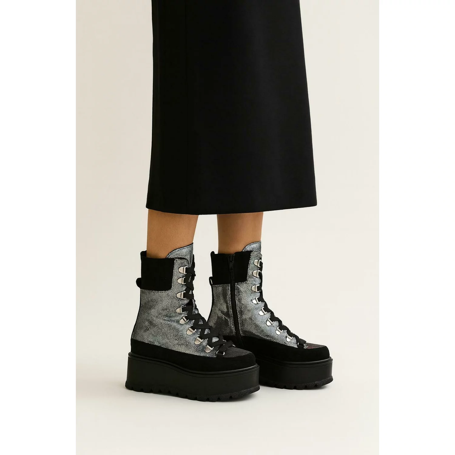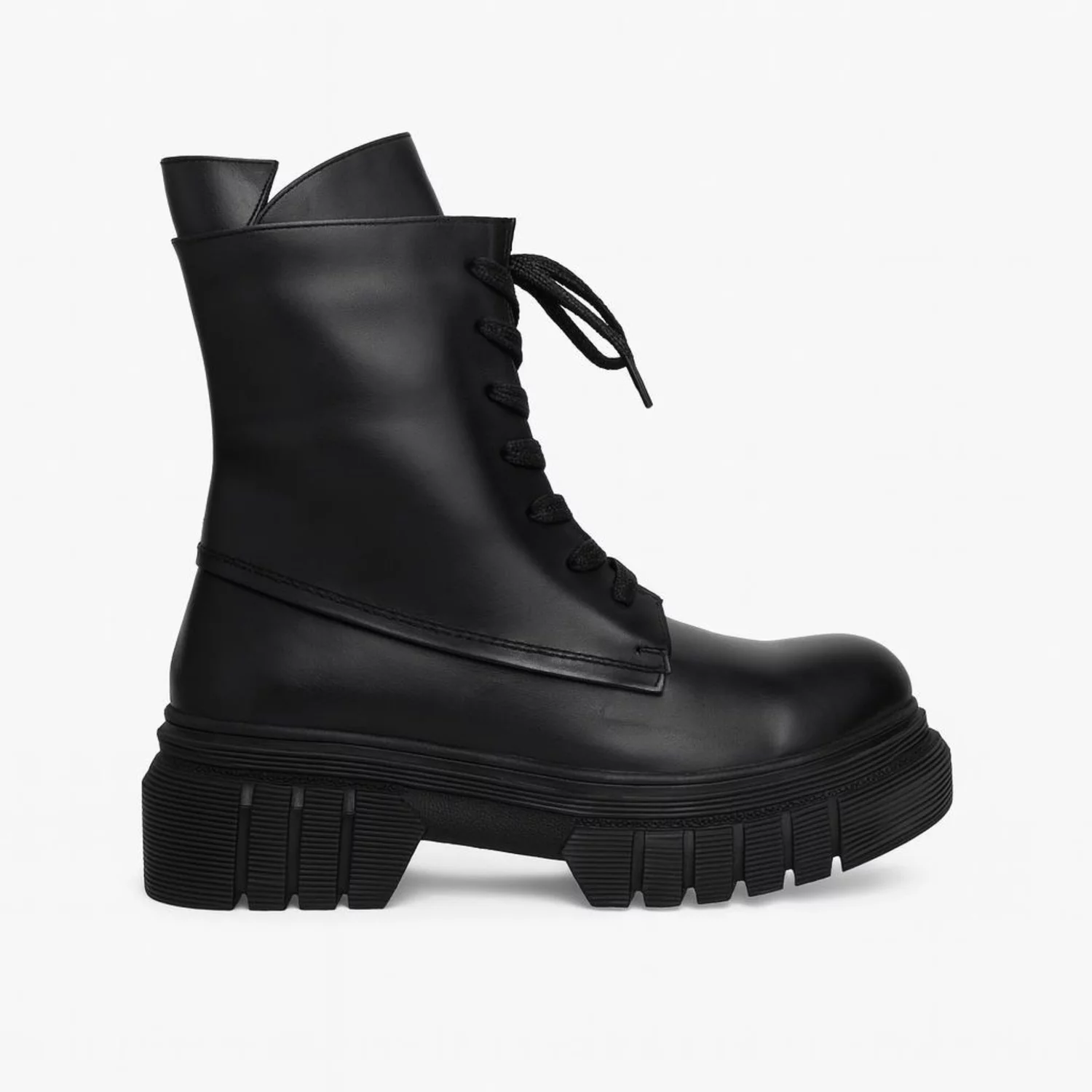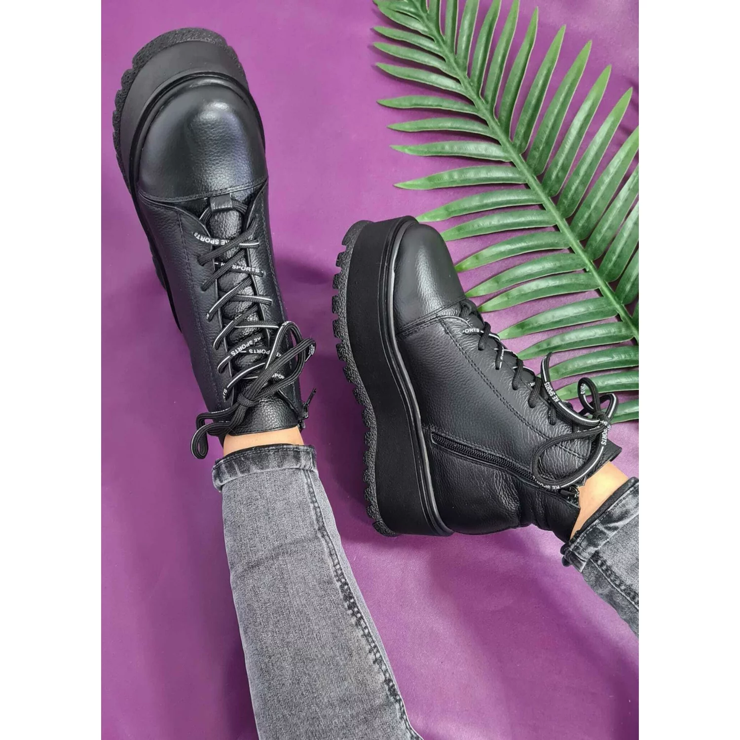 Ghete din Piele Naturala Negre cu platforma Garkony Urban Queen