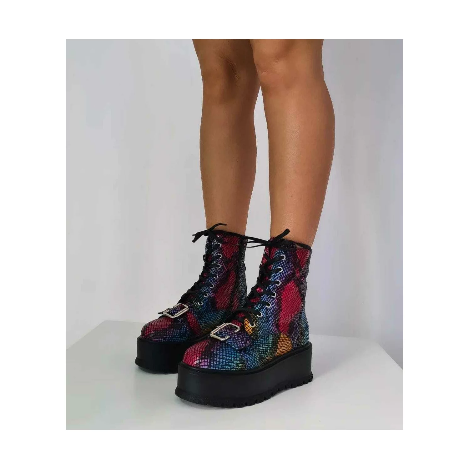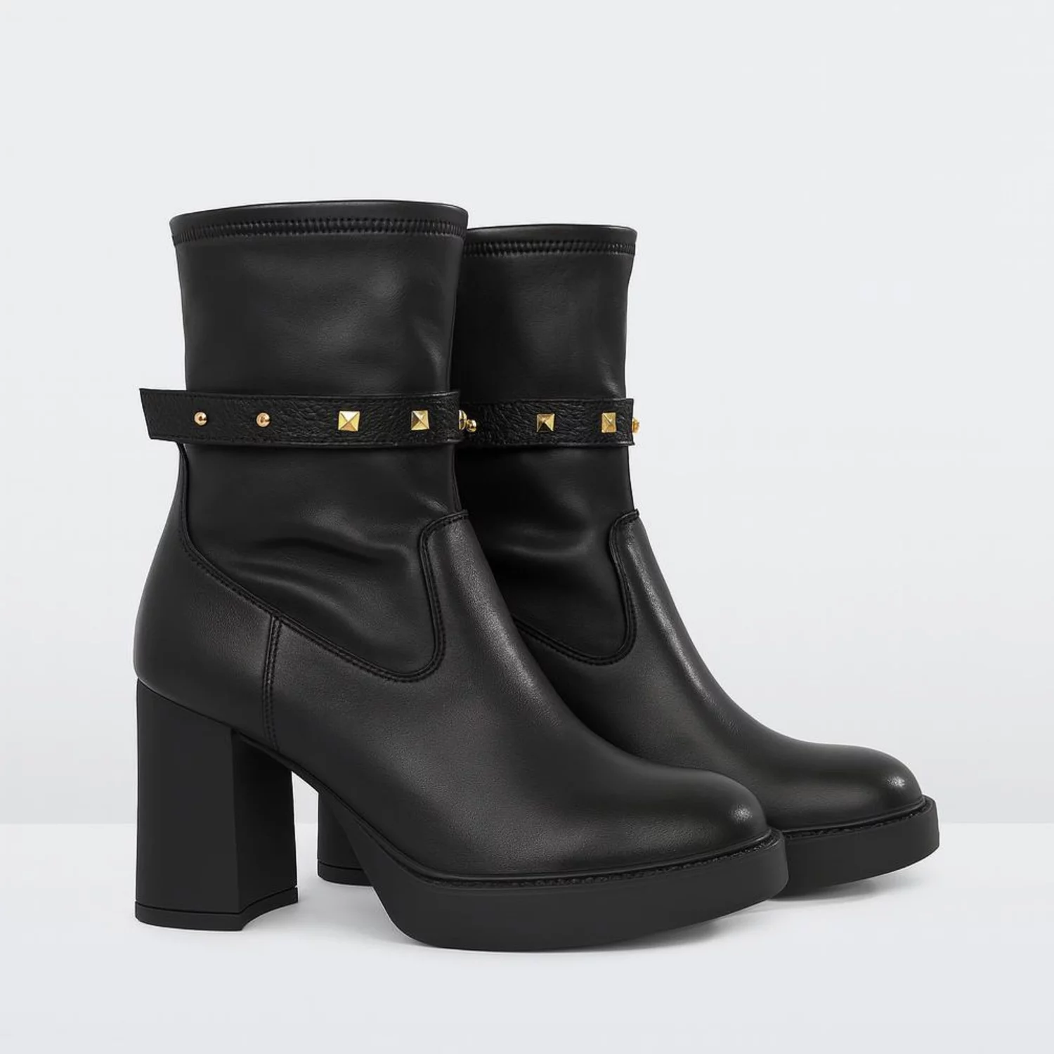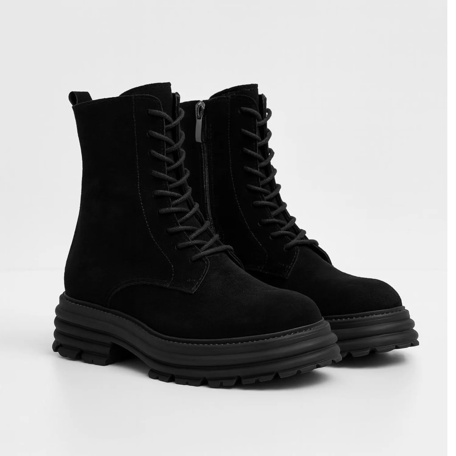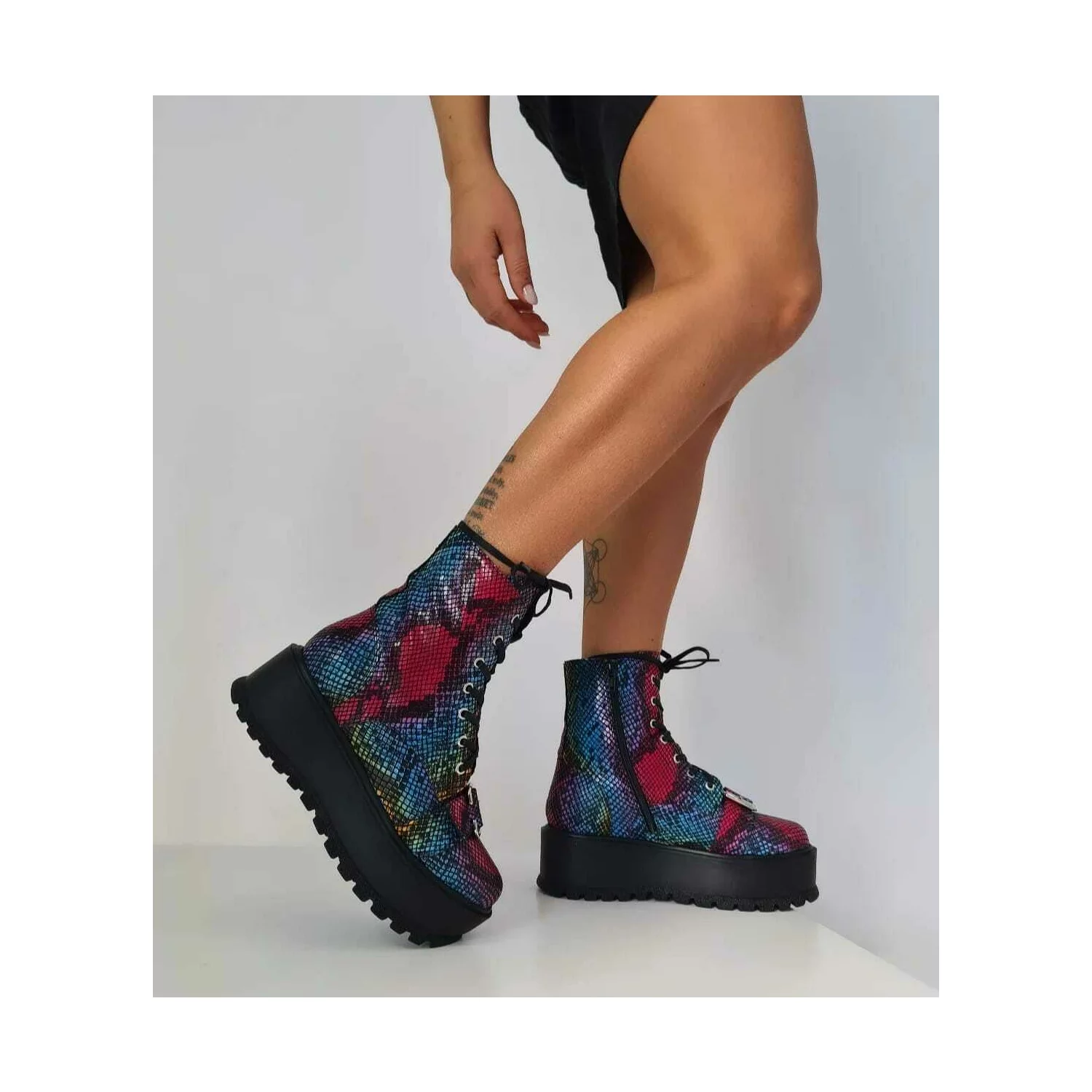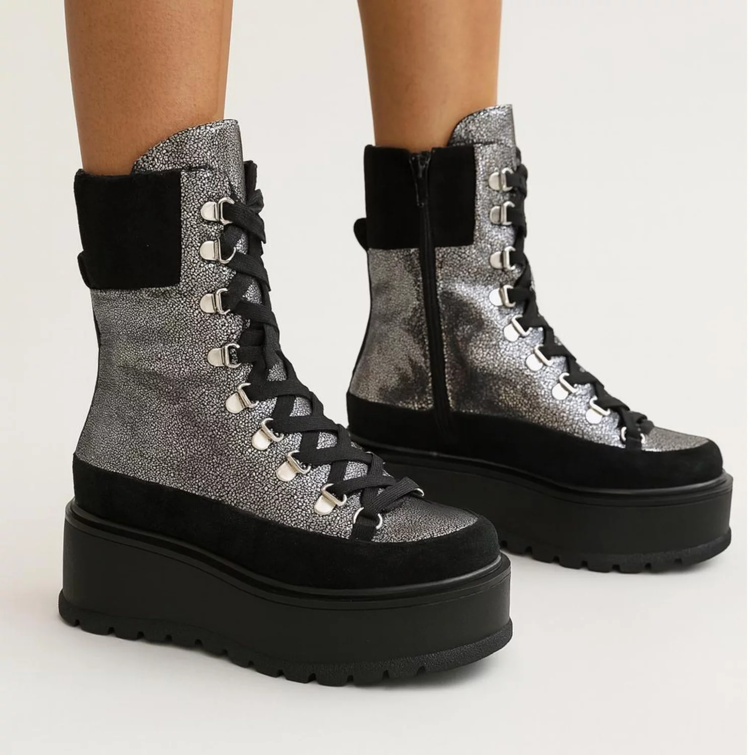 Ghete din Piele Naturala Negre cu platforma Garkony Urban Queen