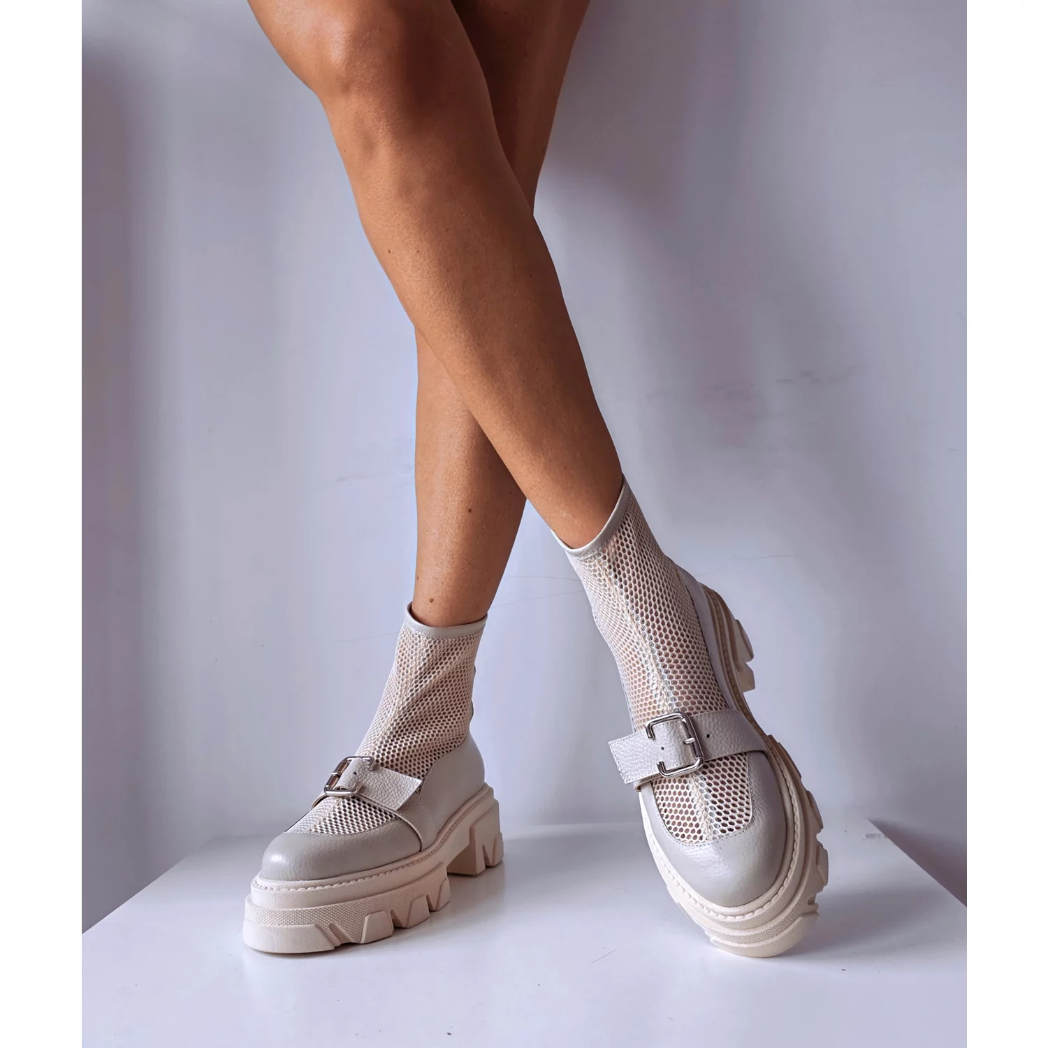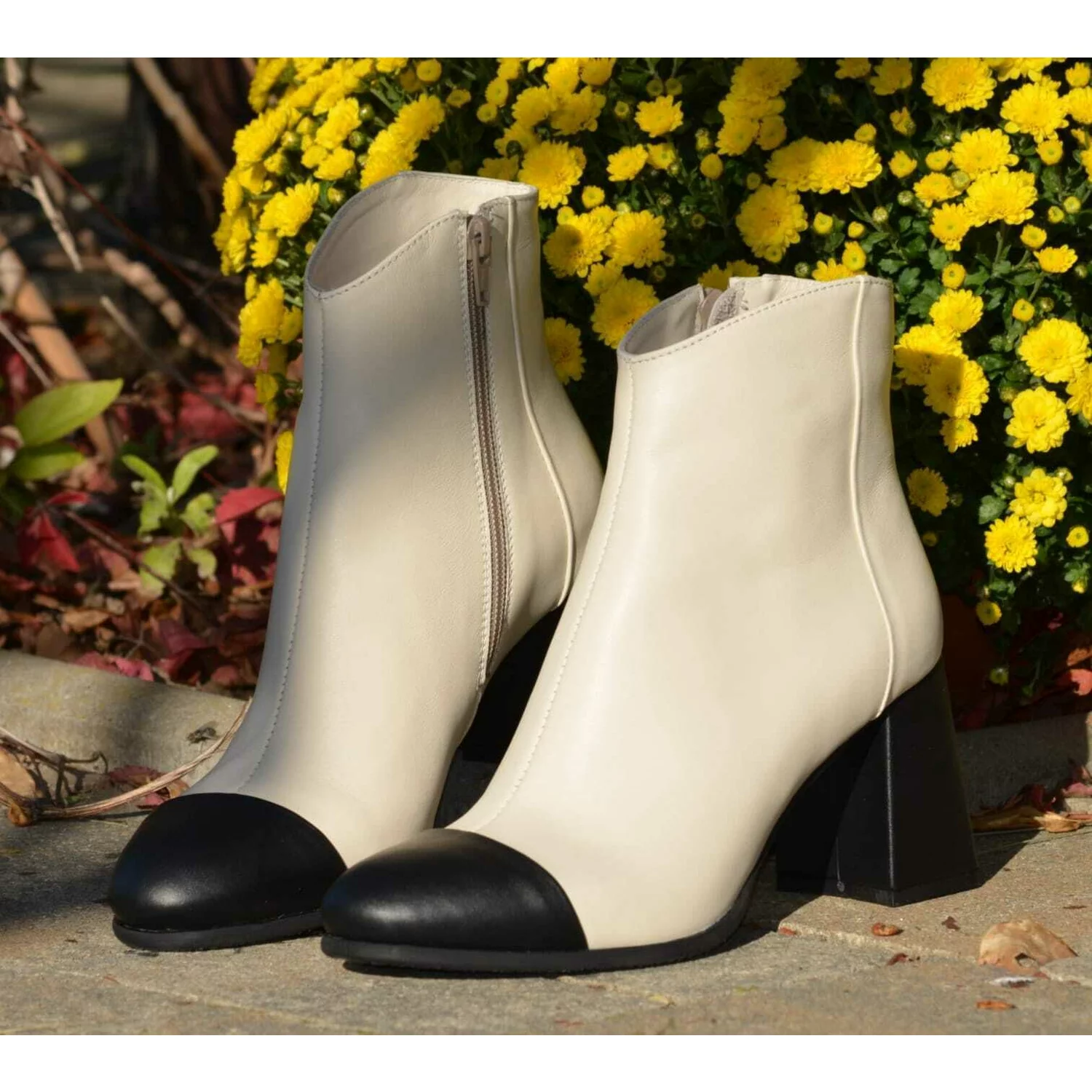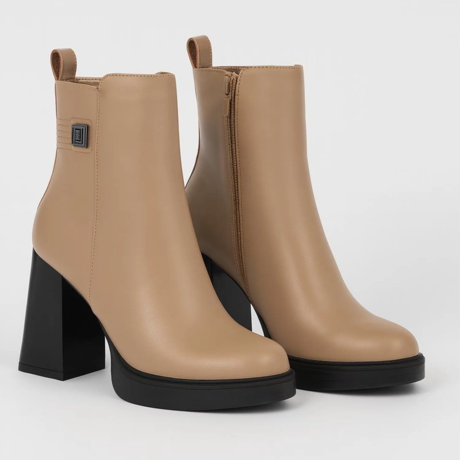 Botine dama Bej din Piele Naturala cu toc gros si platforma Mara