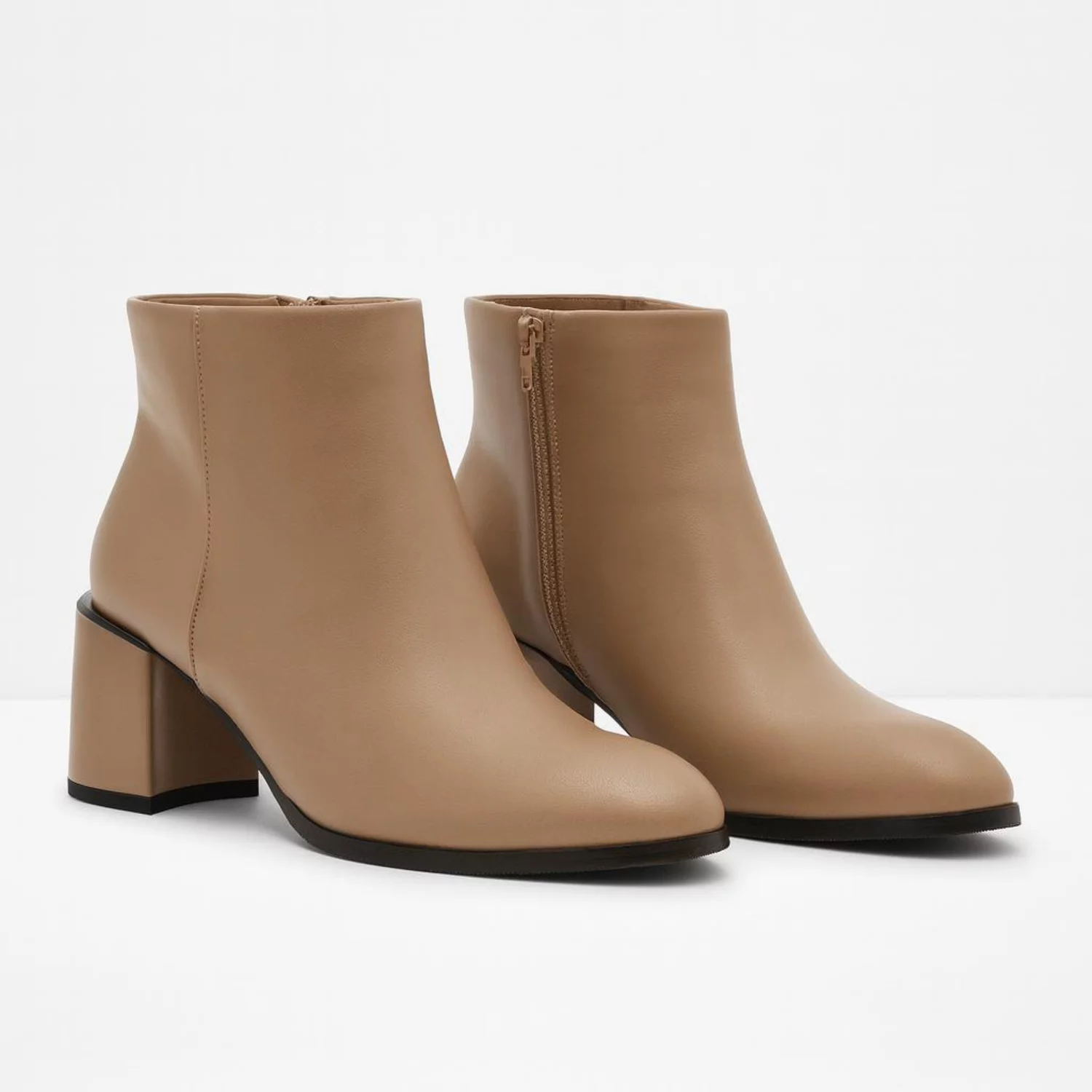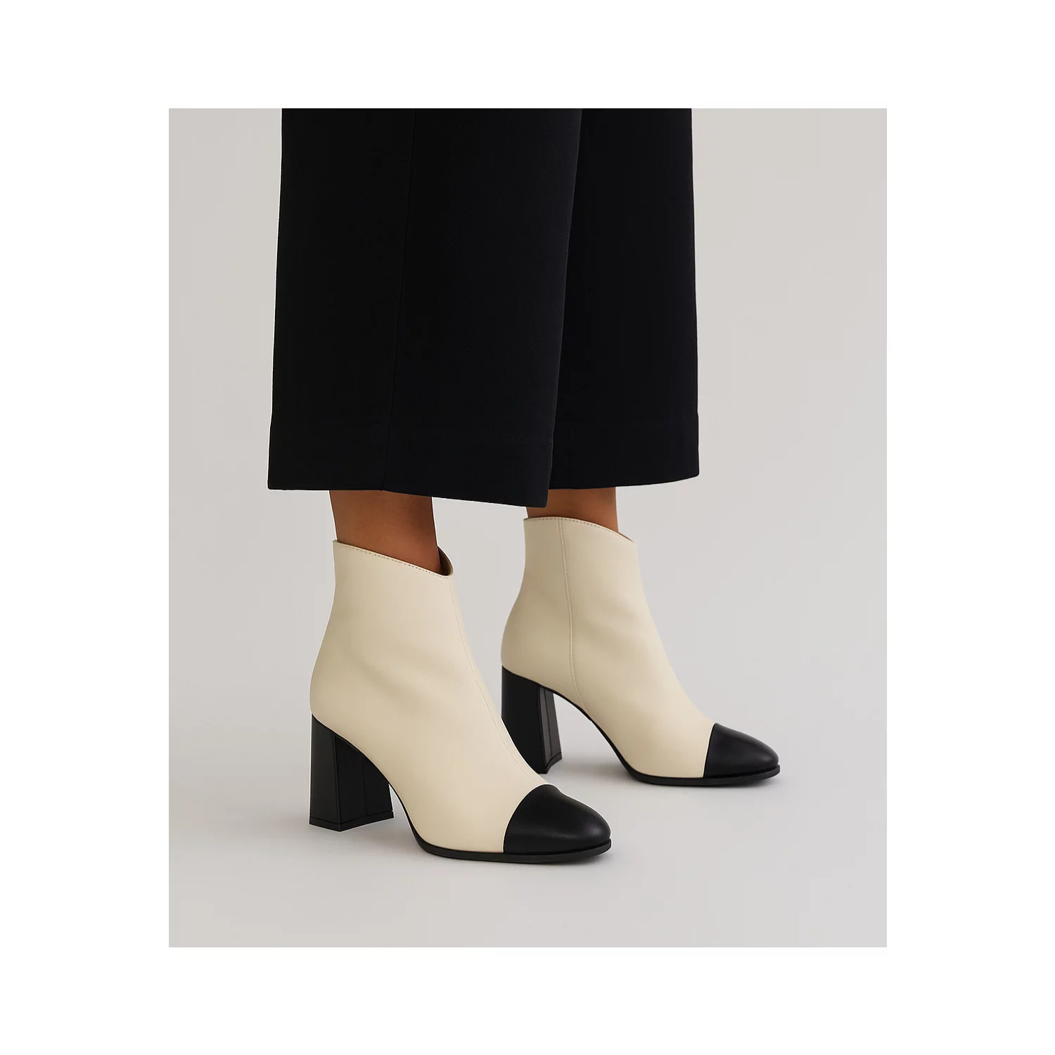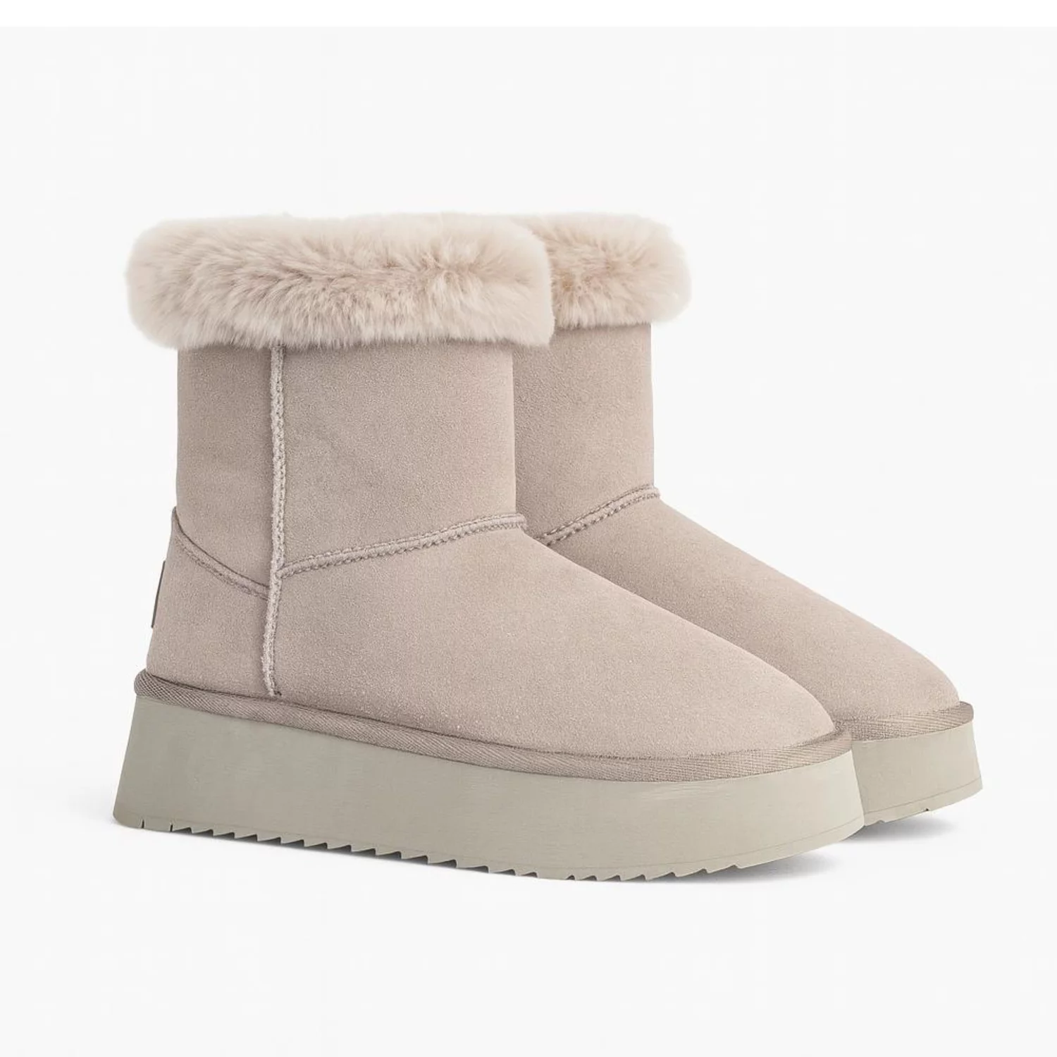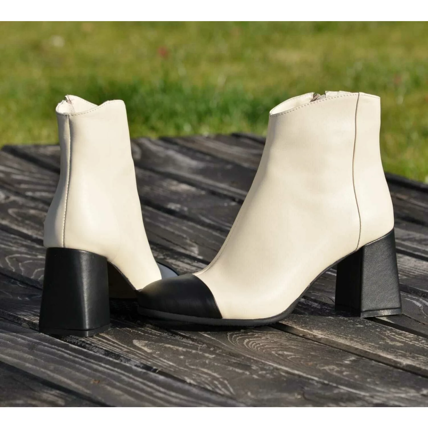 Botine dama Bej din Piele Naturala cu toc gros si platforma Mara