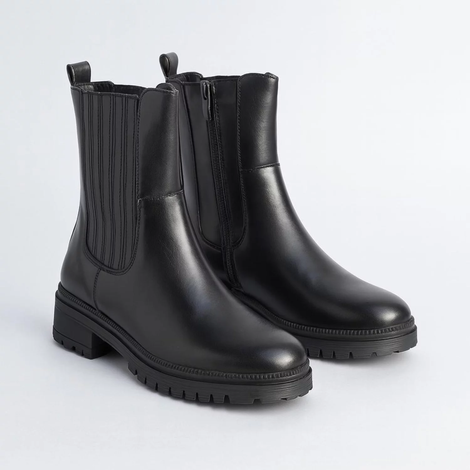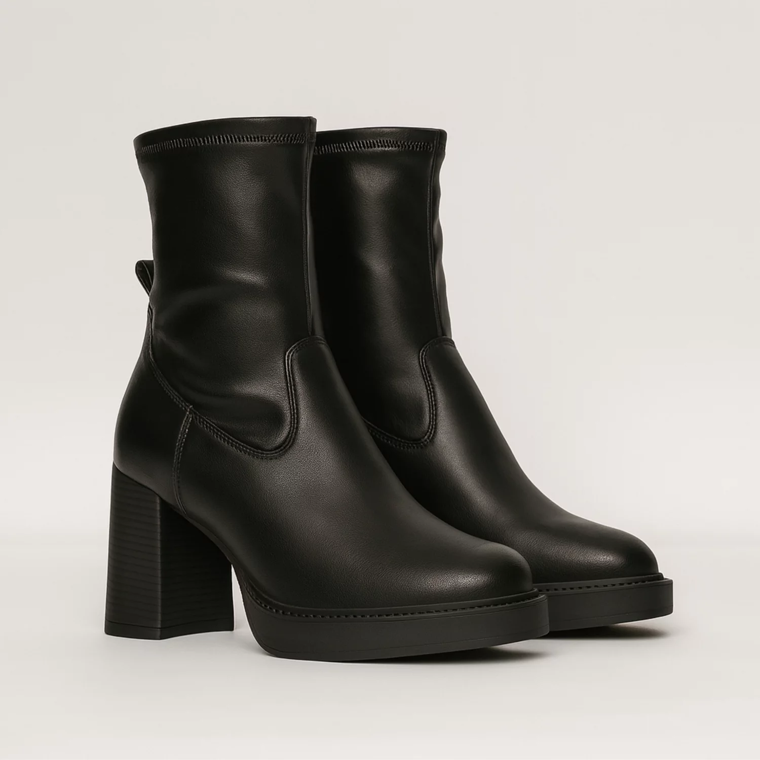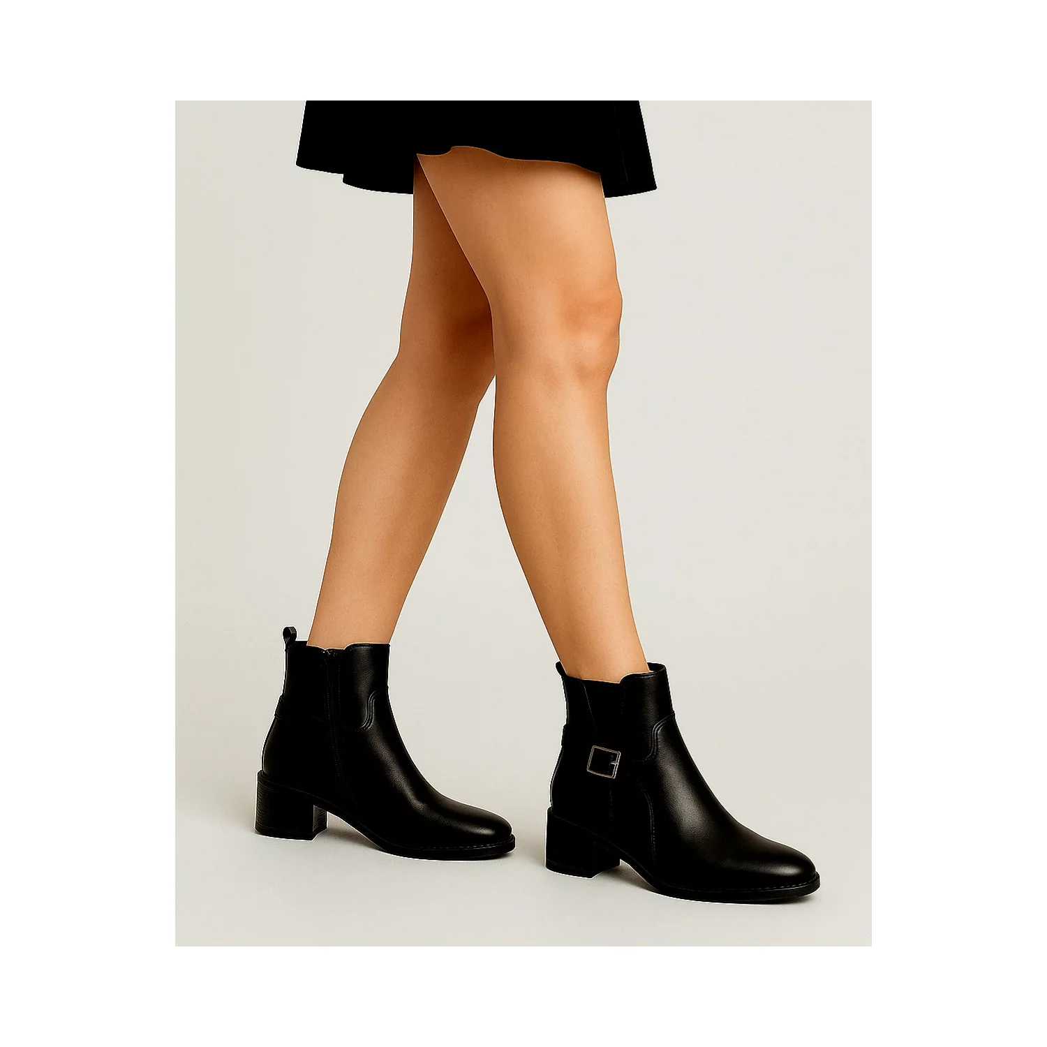 Botine dama Negre din Piele Naturala cu toc gros si platforma Mara