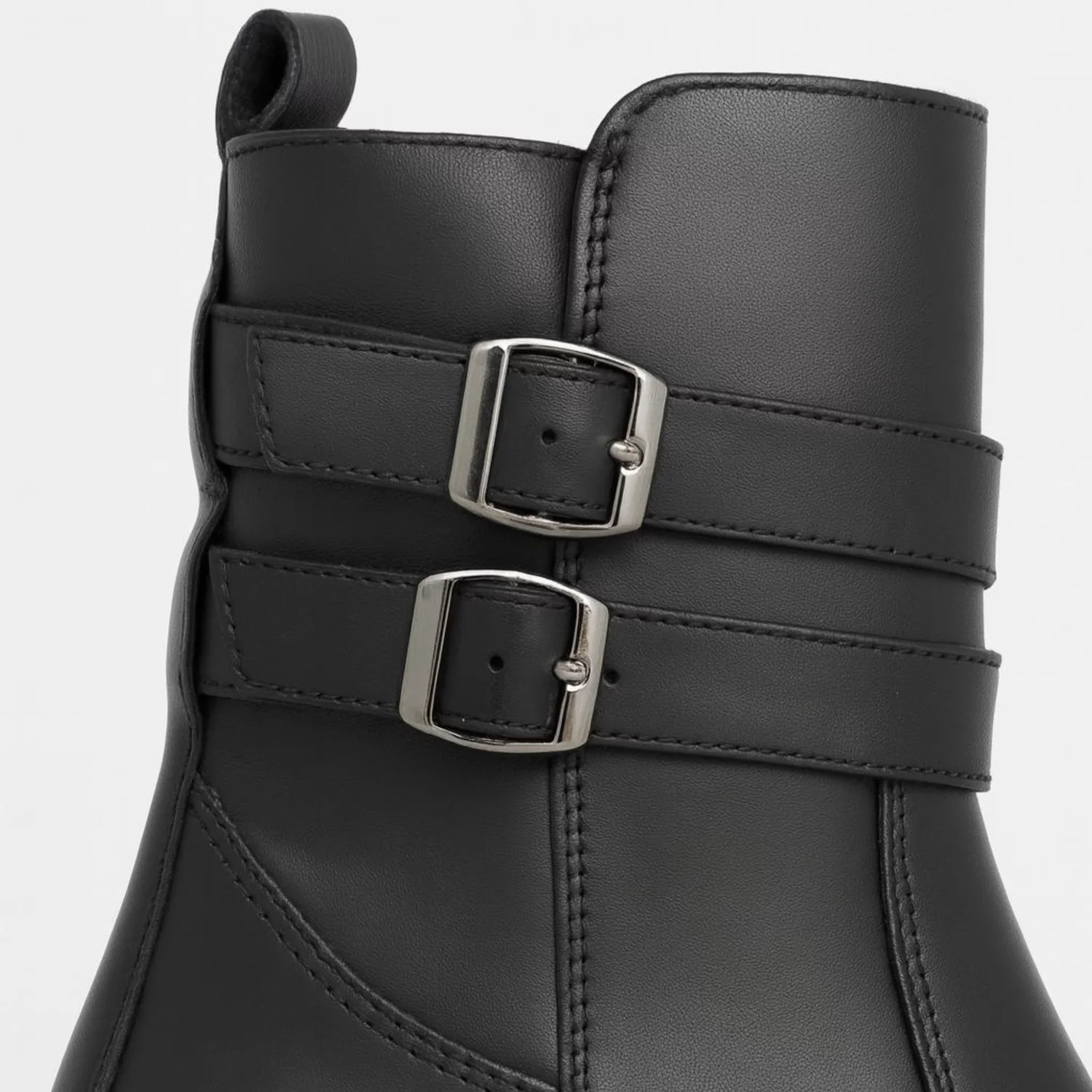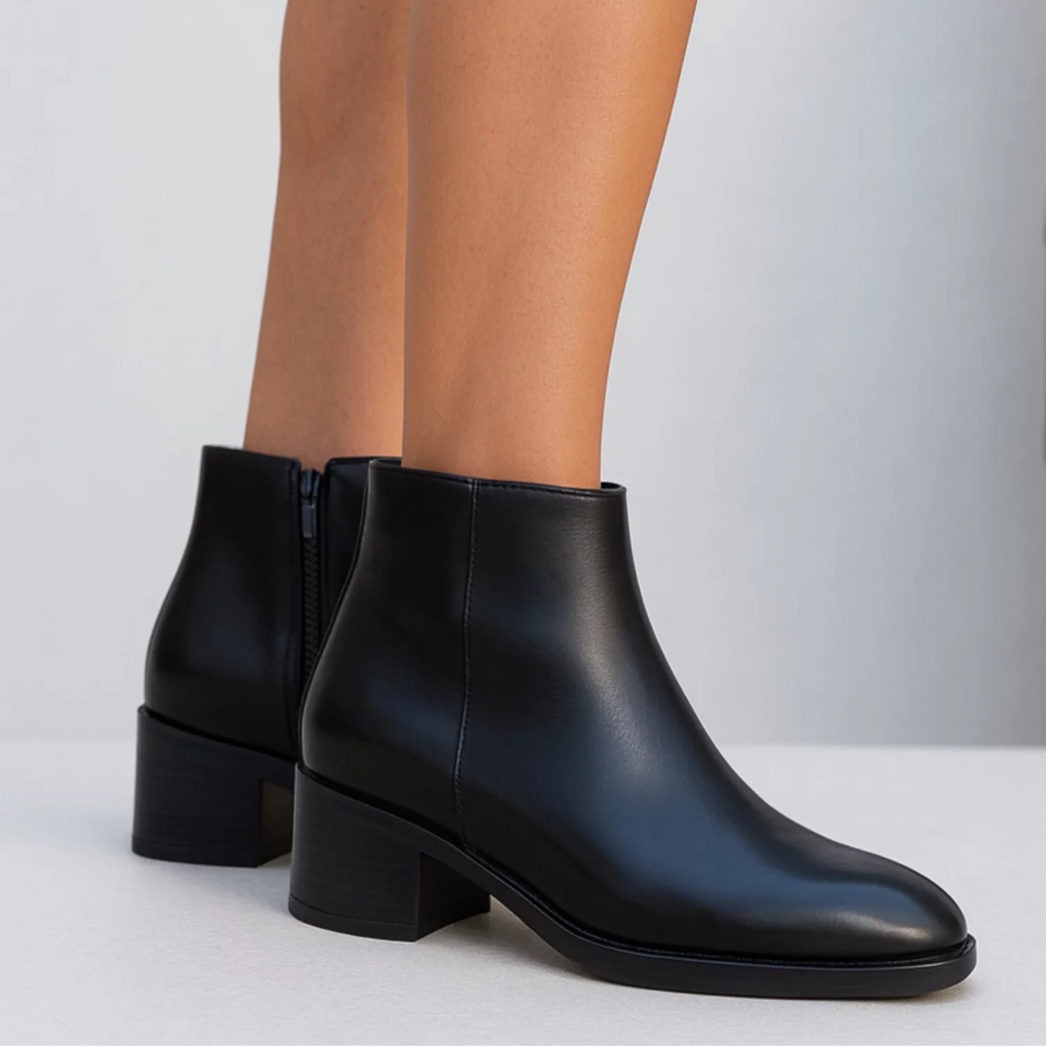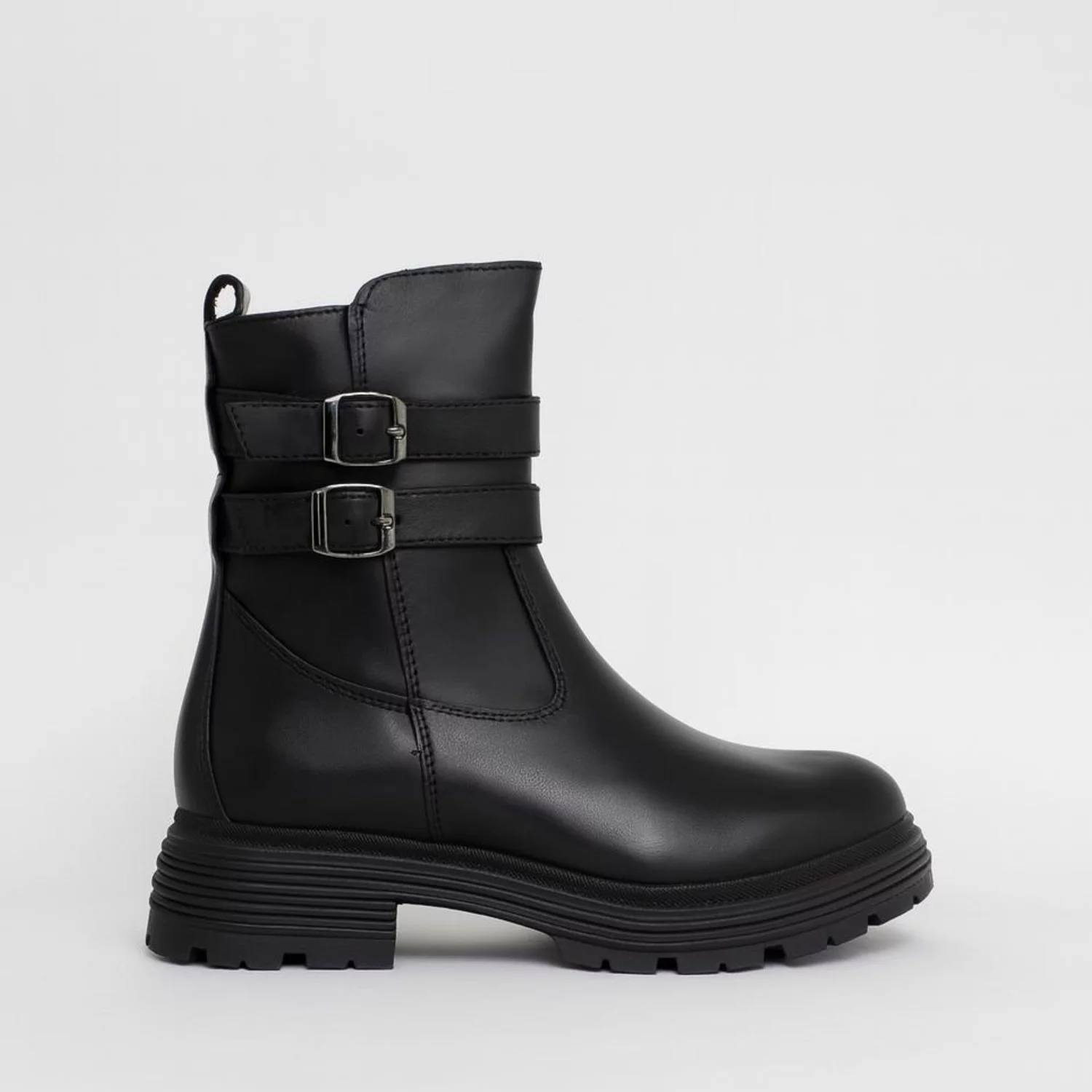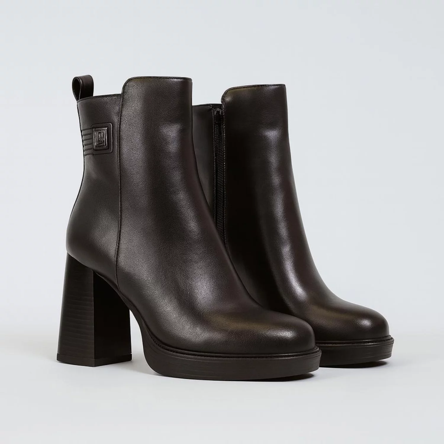 Botine dama Negre din Piele Naturala cu toc gros si platforma Mara