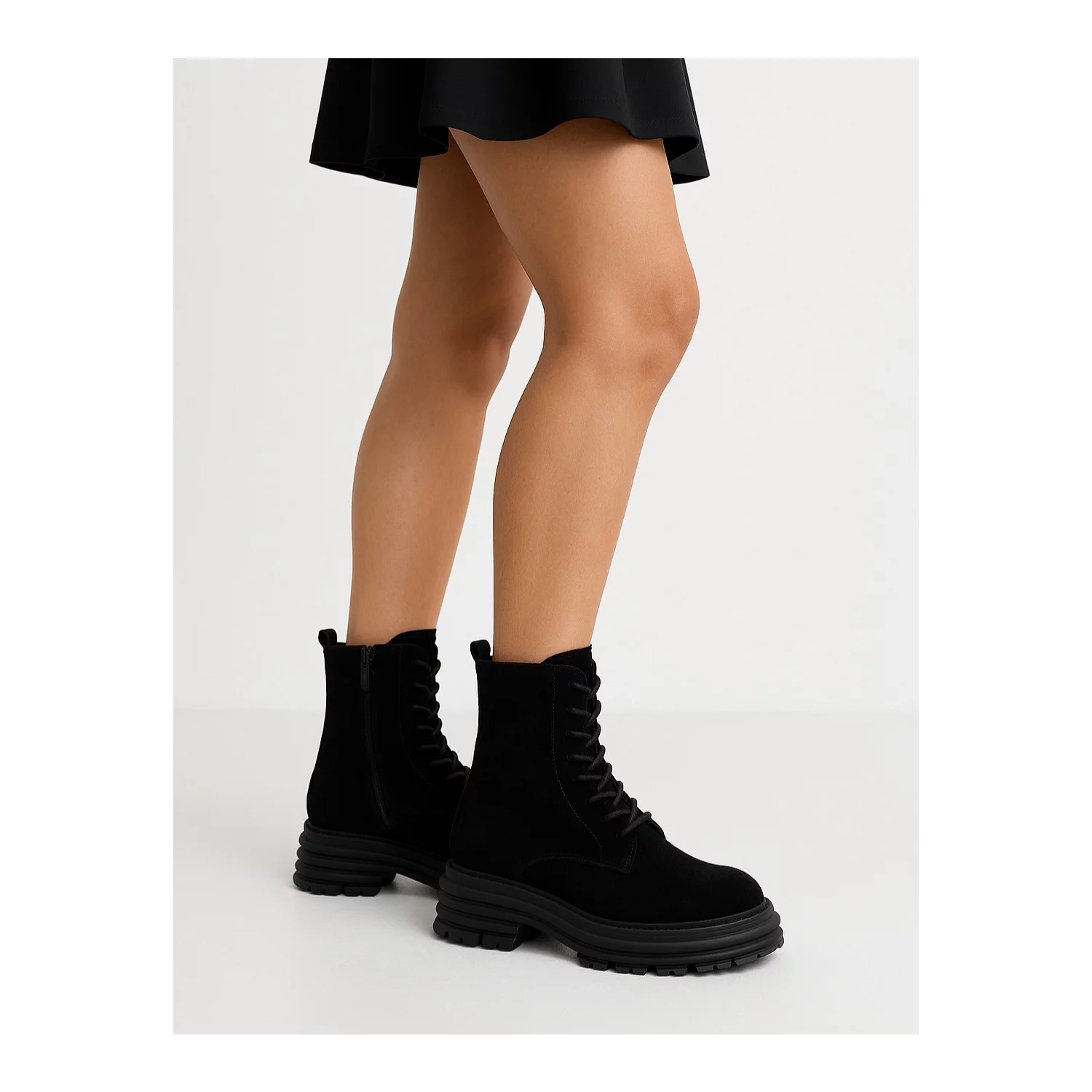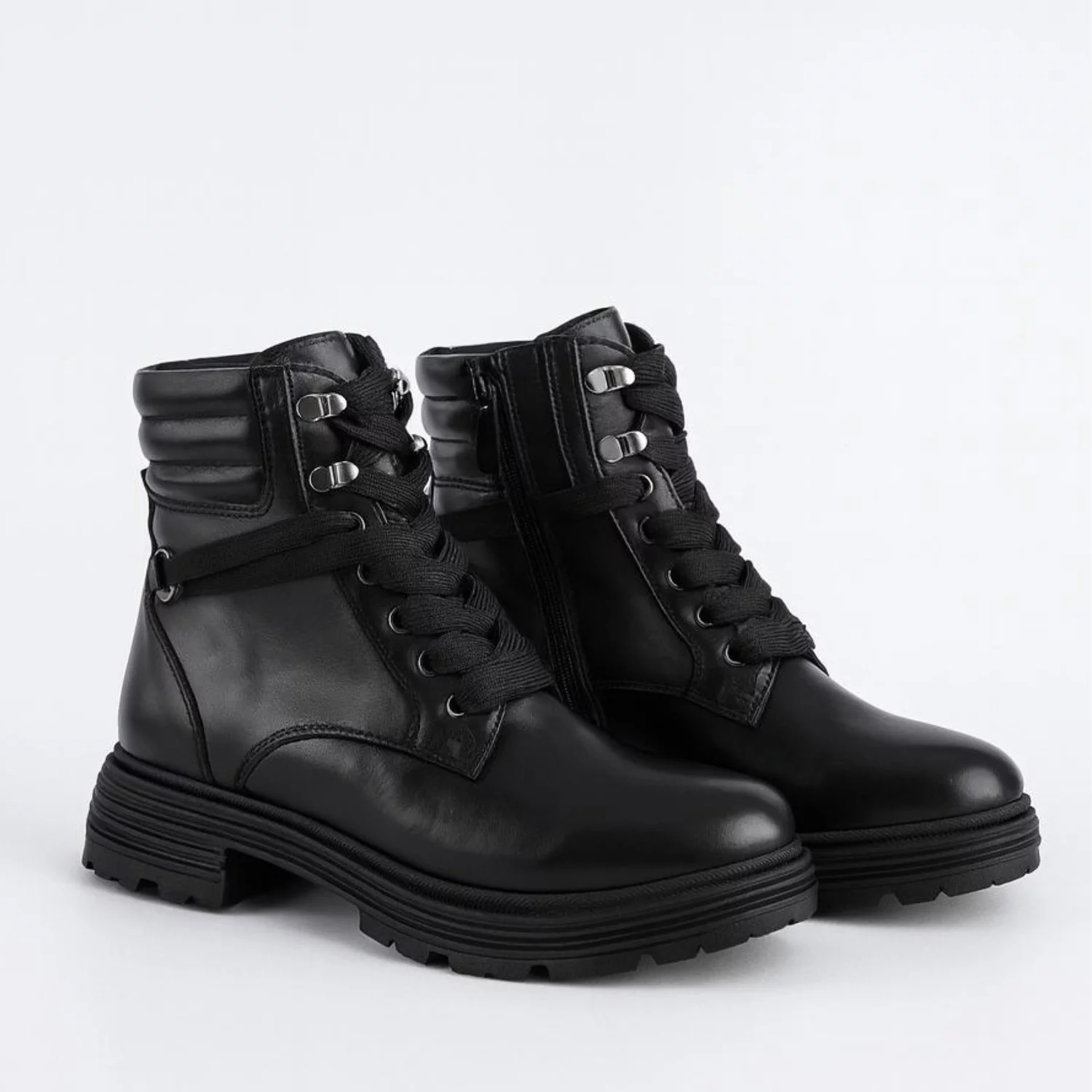 Ghete de dama din Piele Naturala Negre cu siret Marta