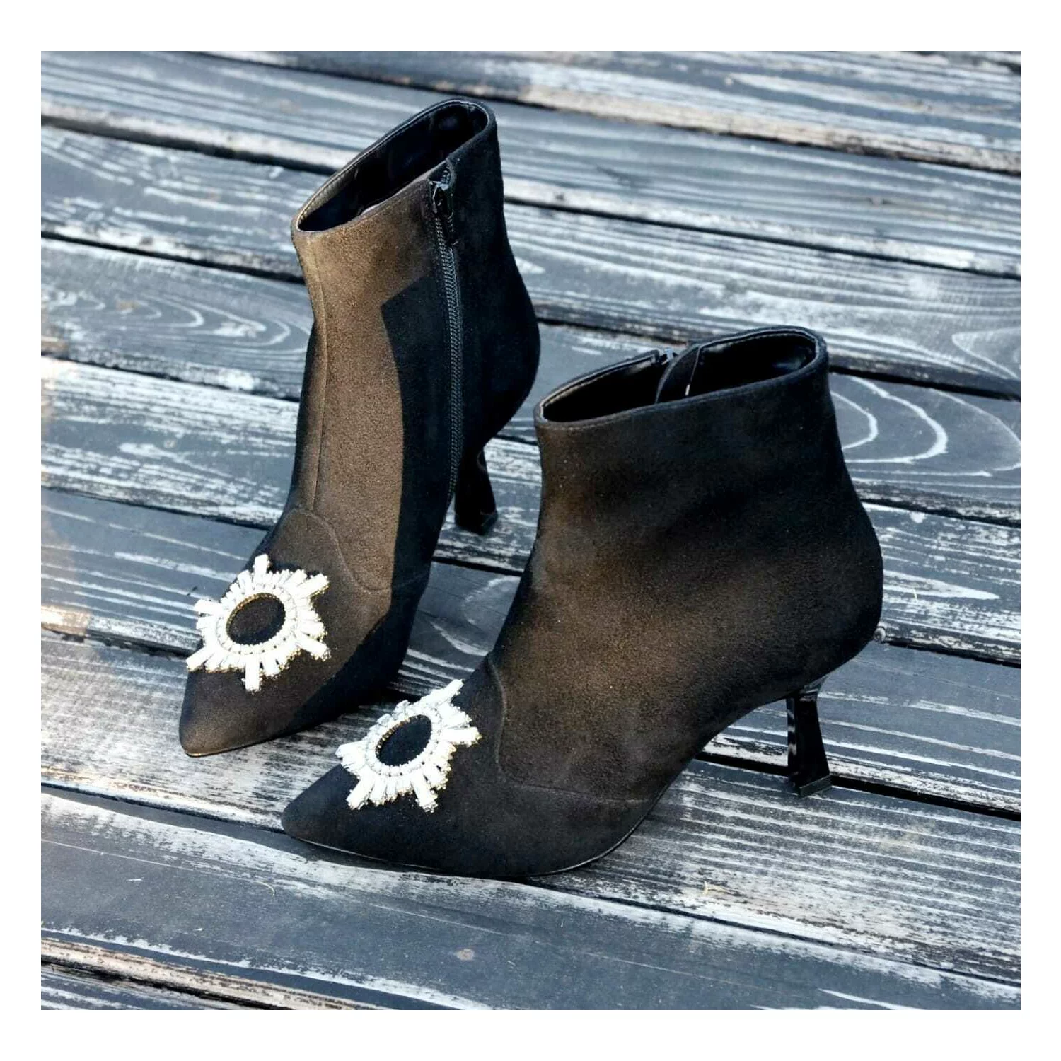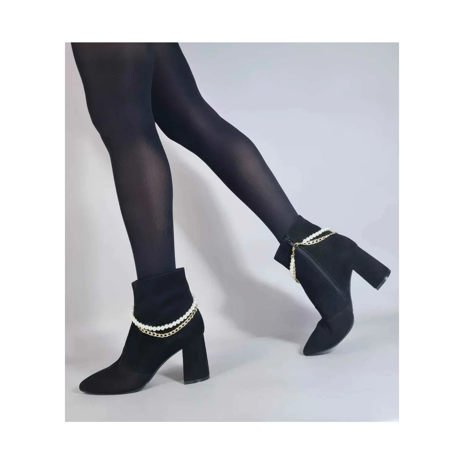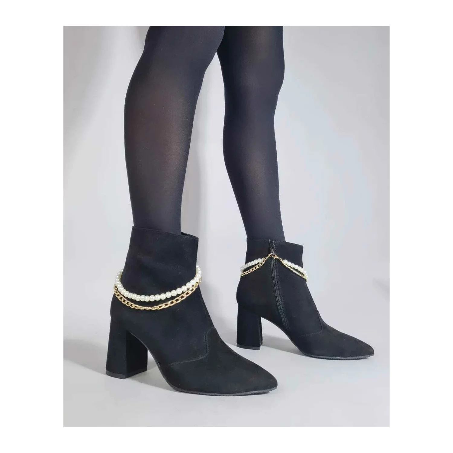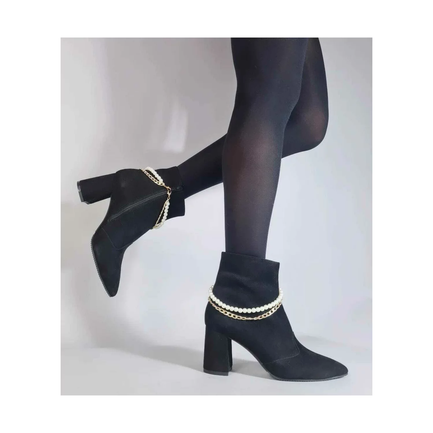 Botine Piele Naturala Negre accesorizate cu lant perle detasabil Odette