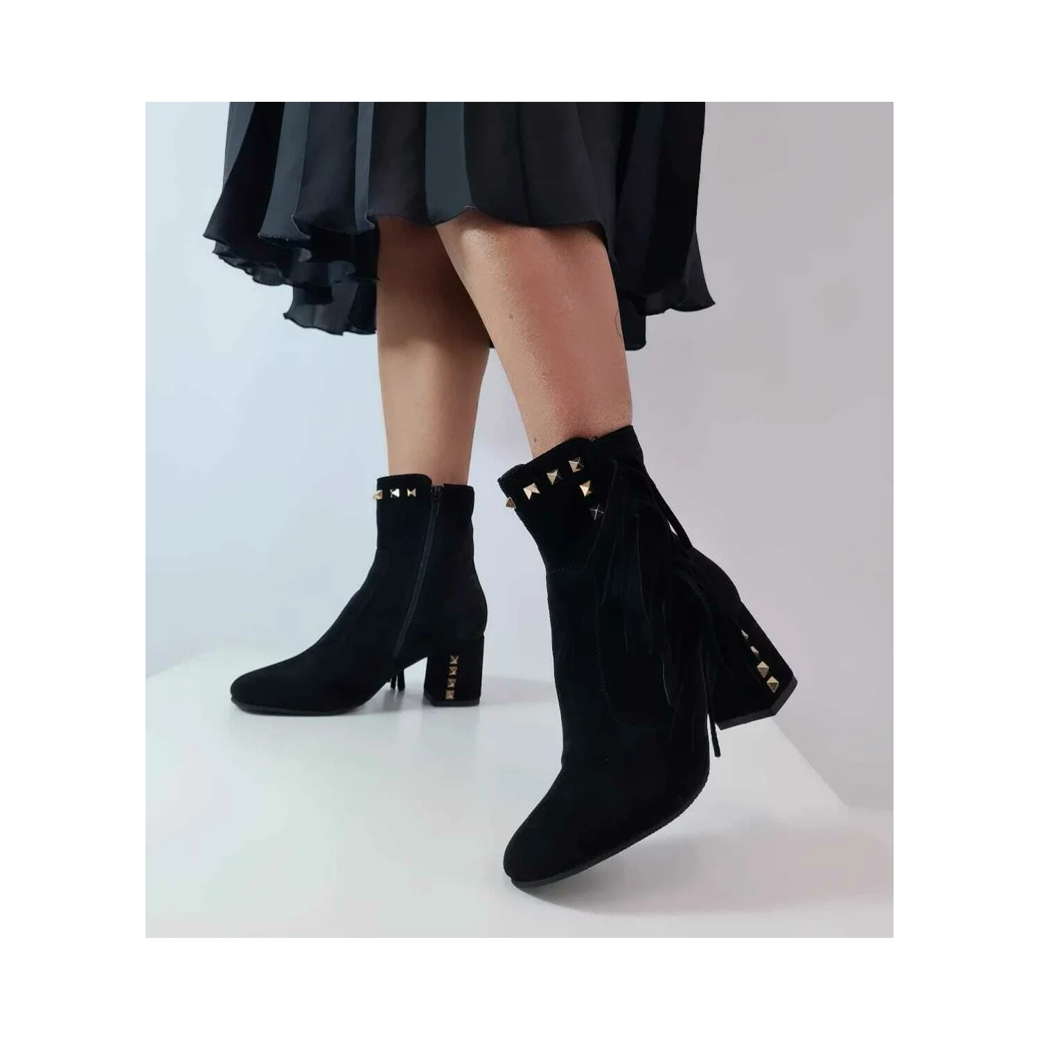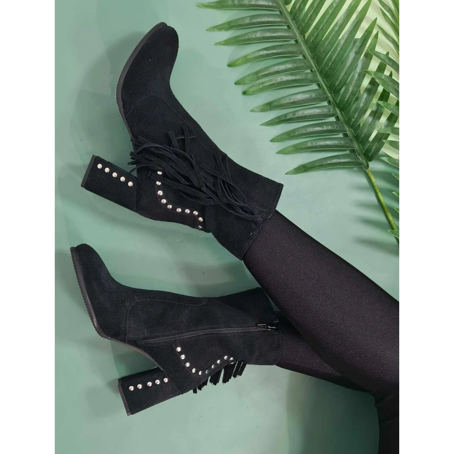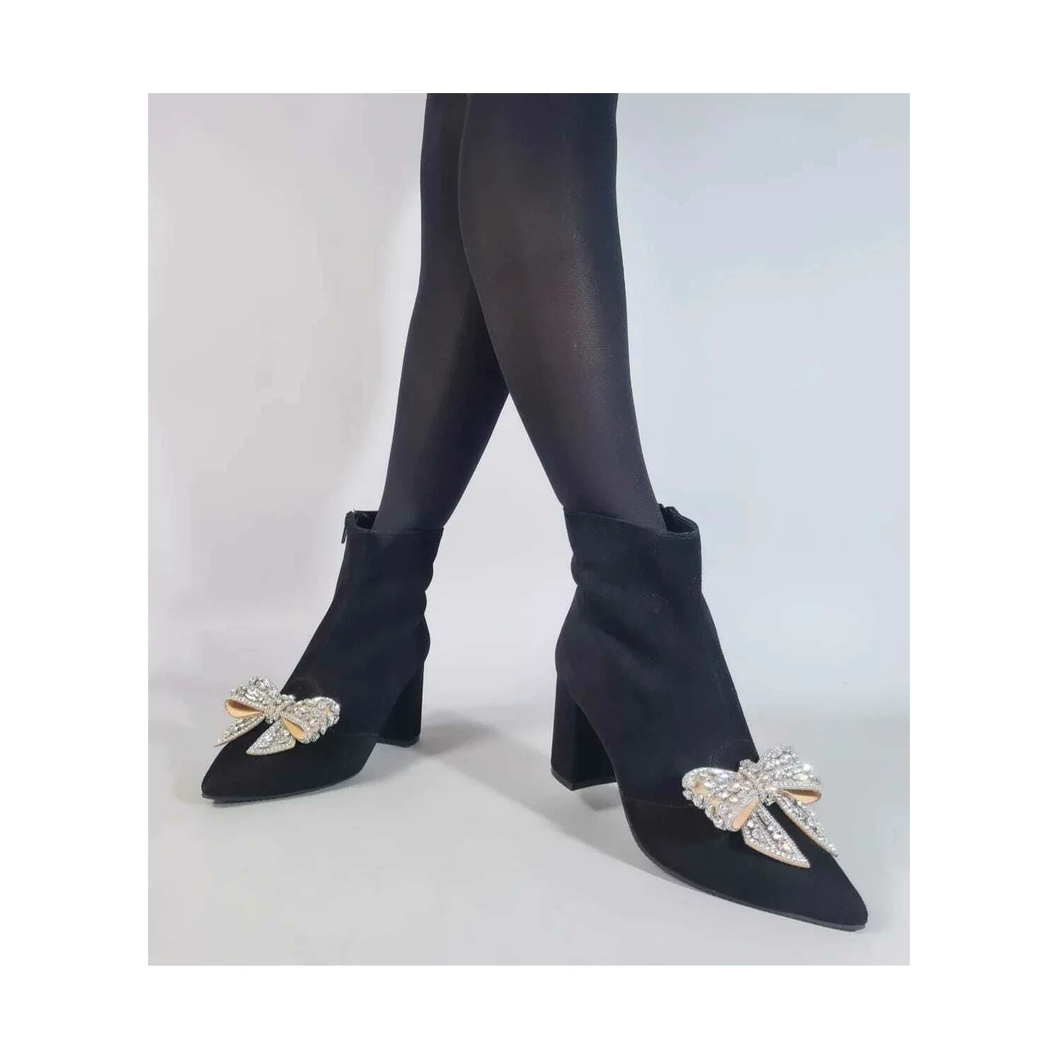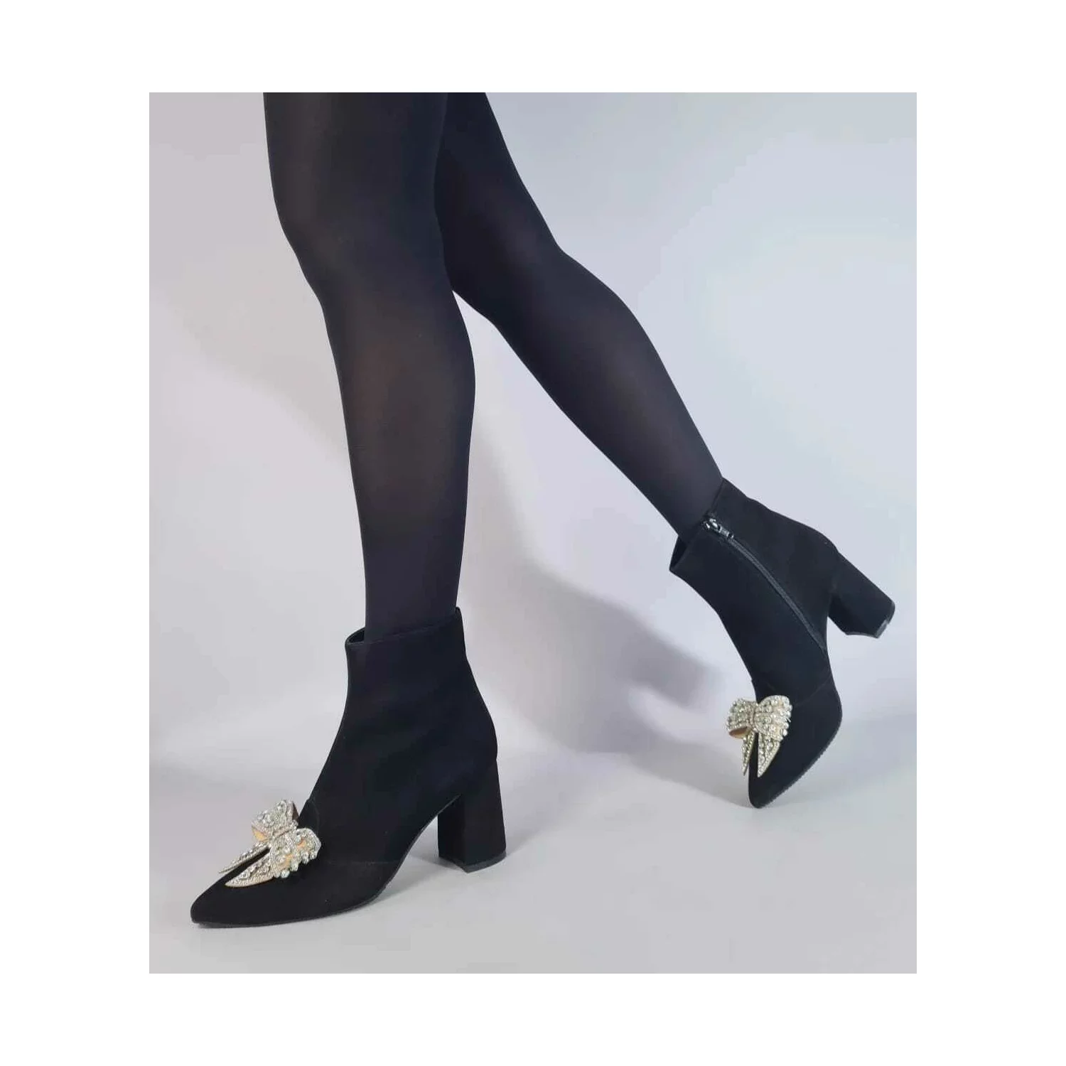 Botine dama Piele Naturala Negre camoscio cu funda Bow