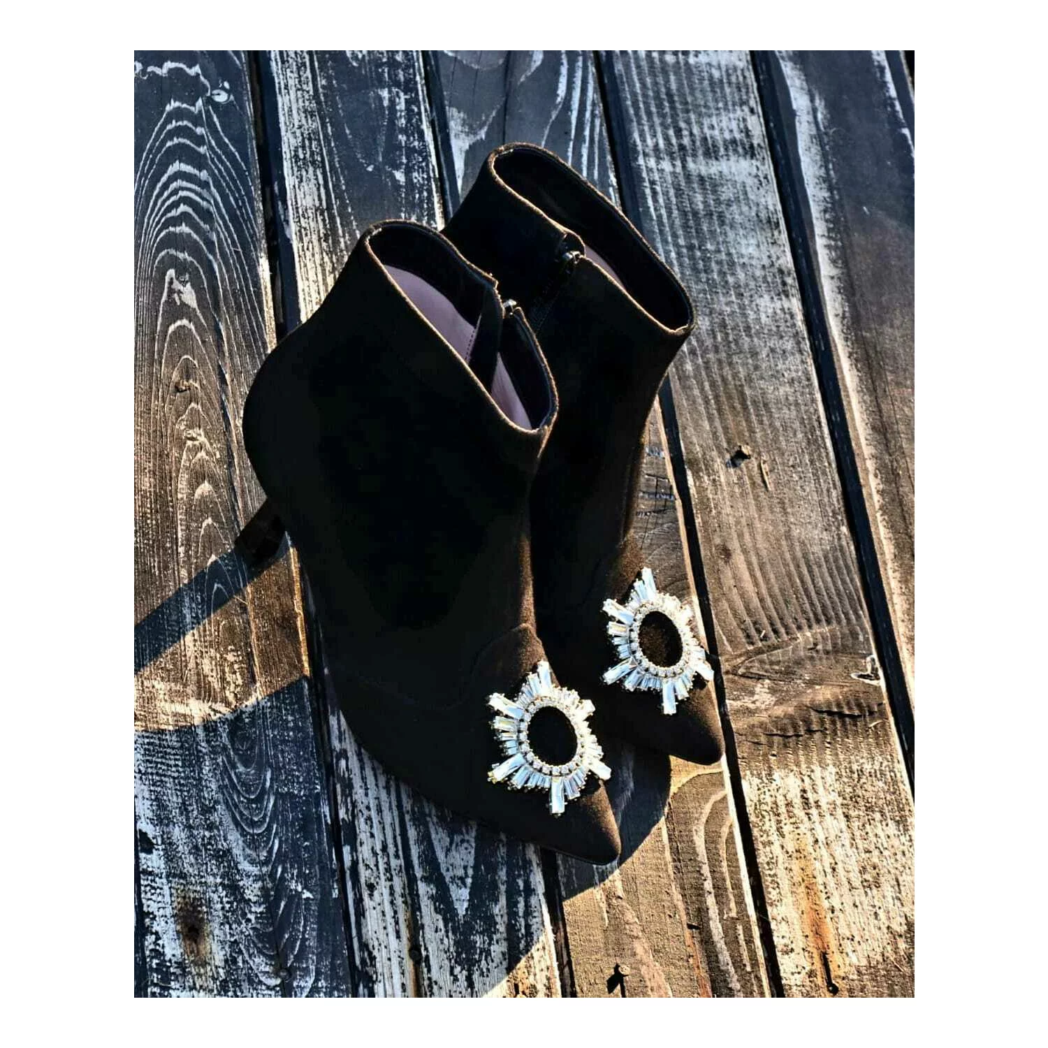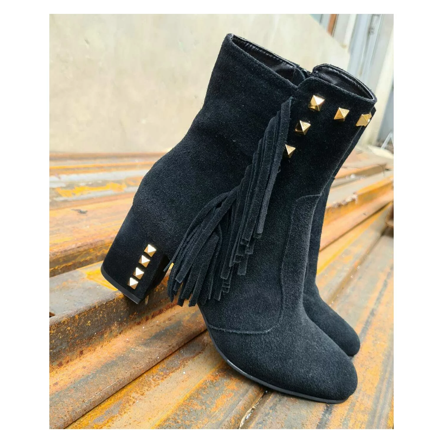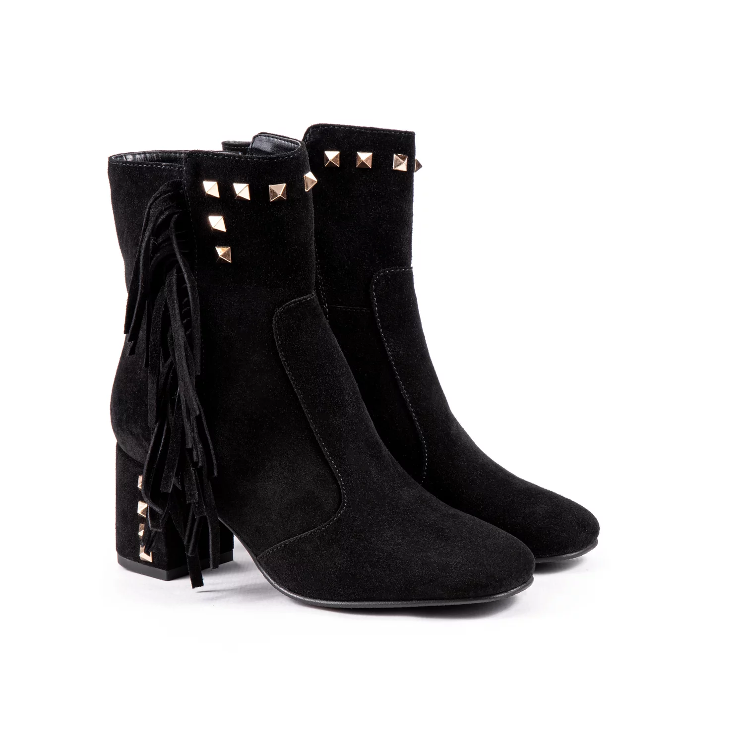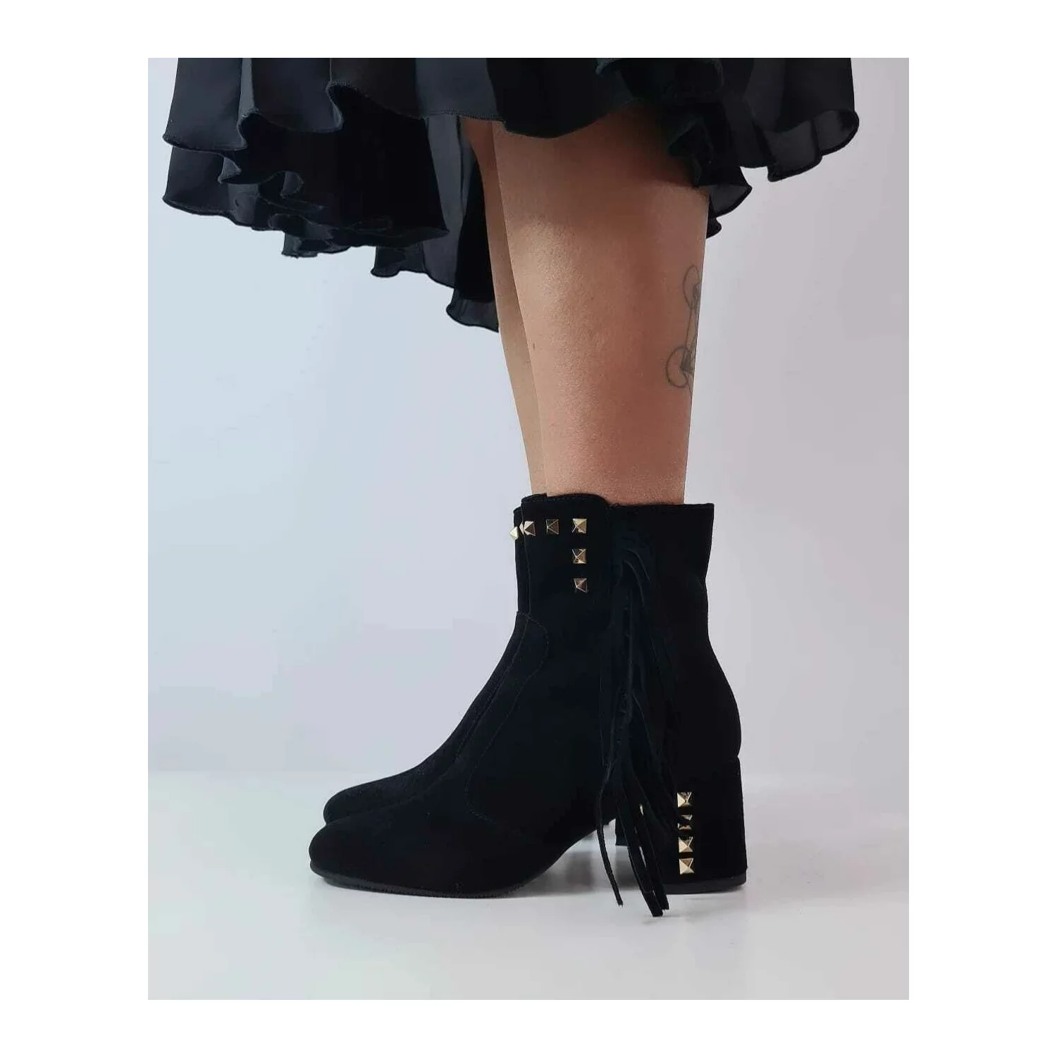 Botine dama Piele Naturala Negre camoscio cu funda Bow