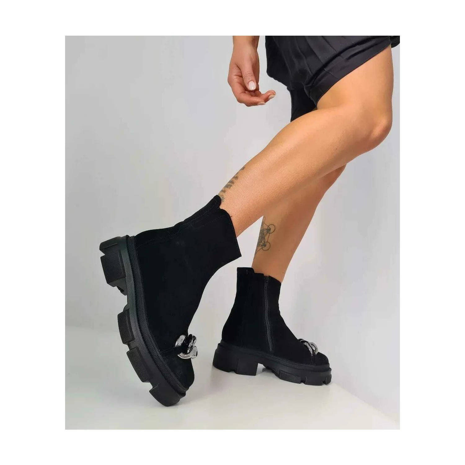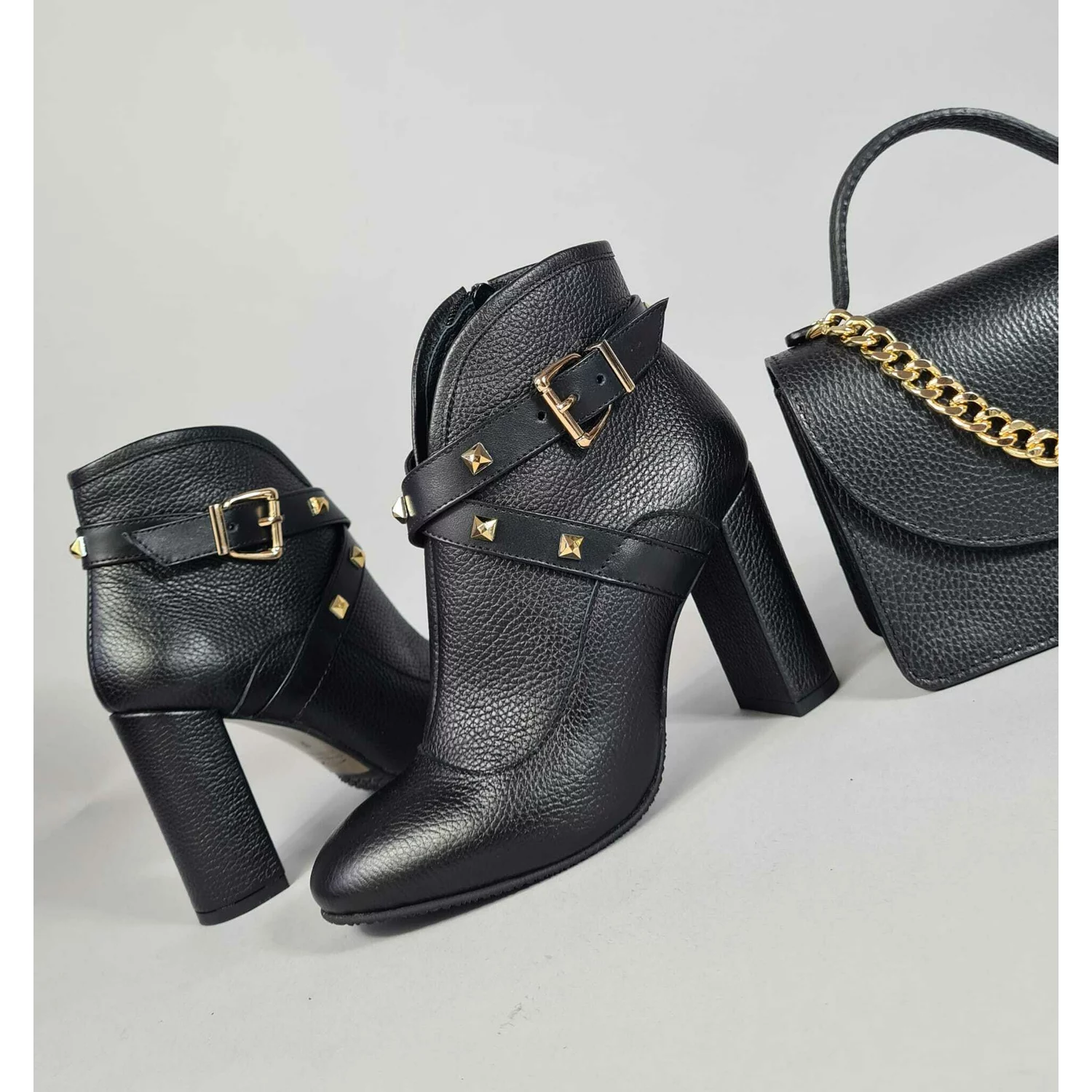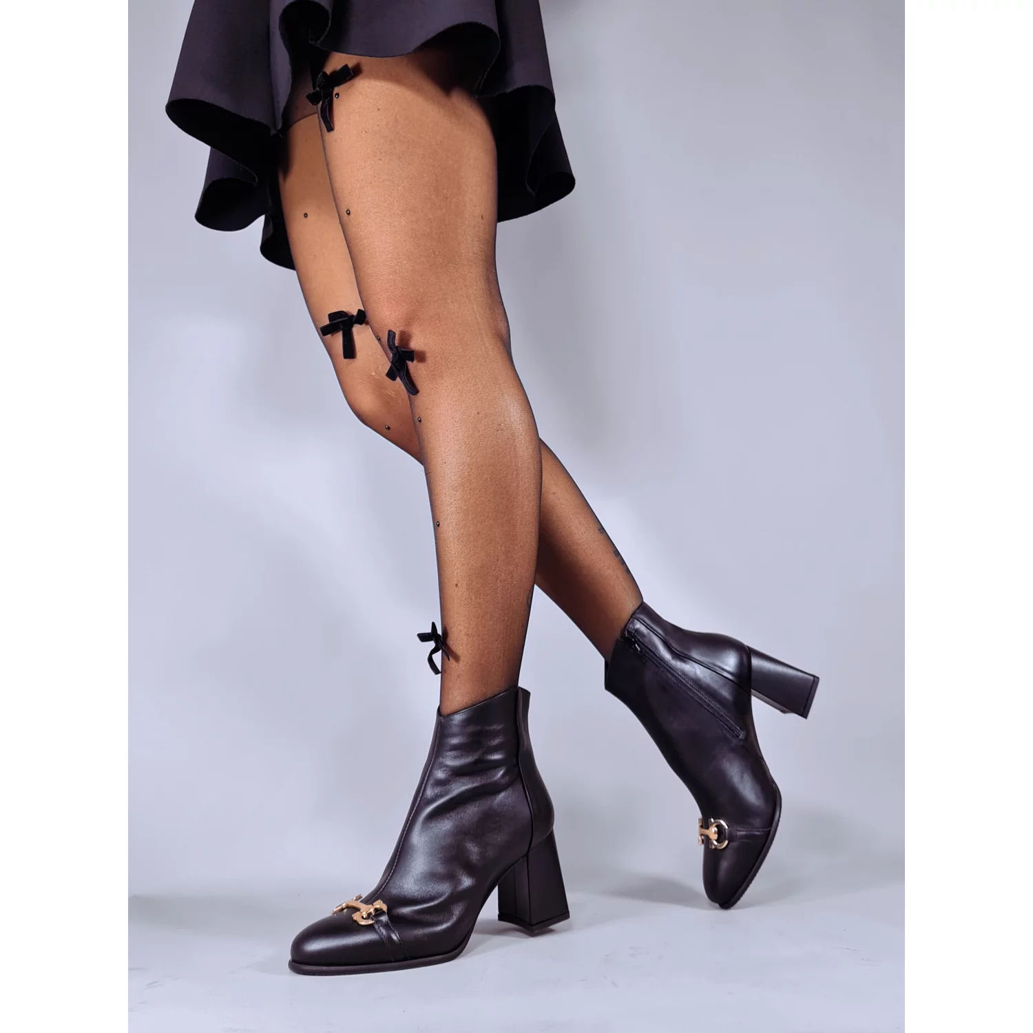 Botine dama Piele Naturala Negre cu accesoriu auriu Elaisa
