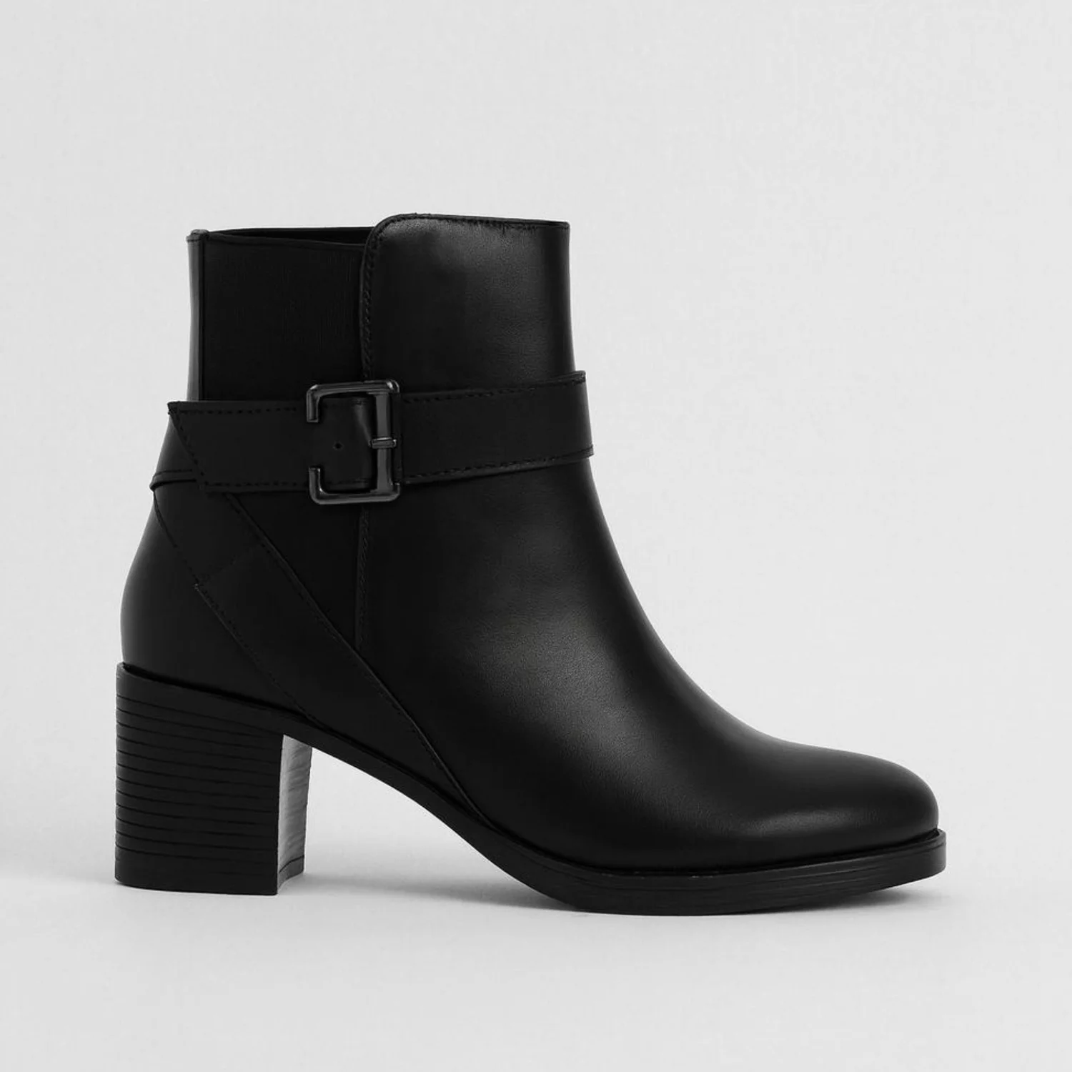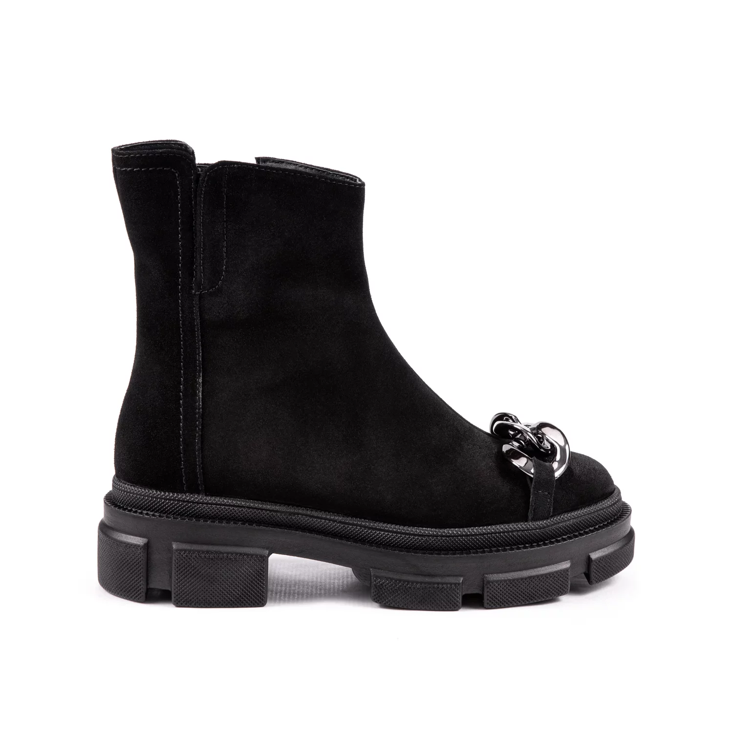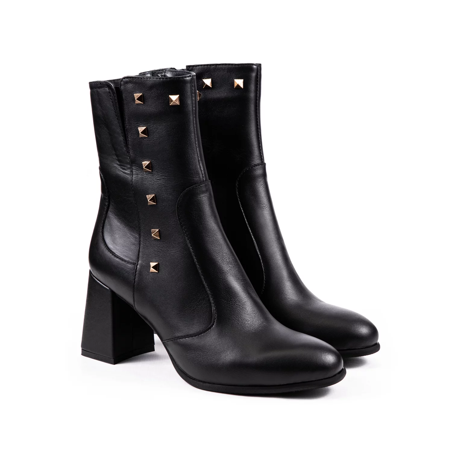 Botine dama Piele Naturala Negre cu accesoriu auriu Elaisa