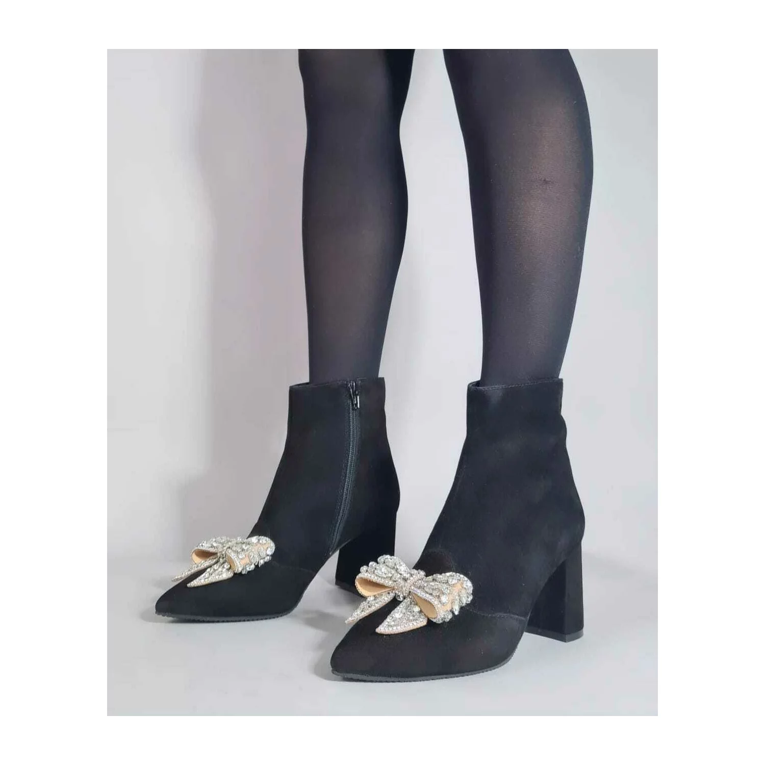 Botine Piele Naturala Negre cu funda strasuri Anabelle