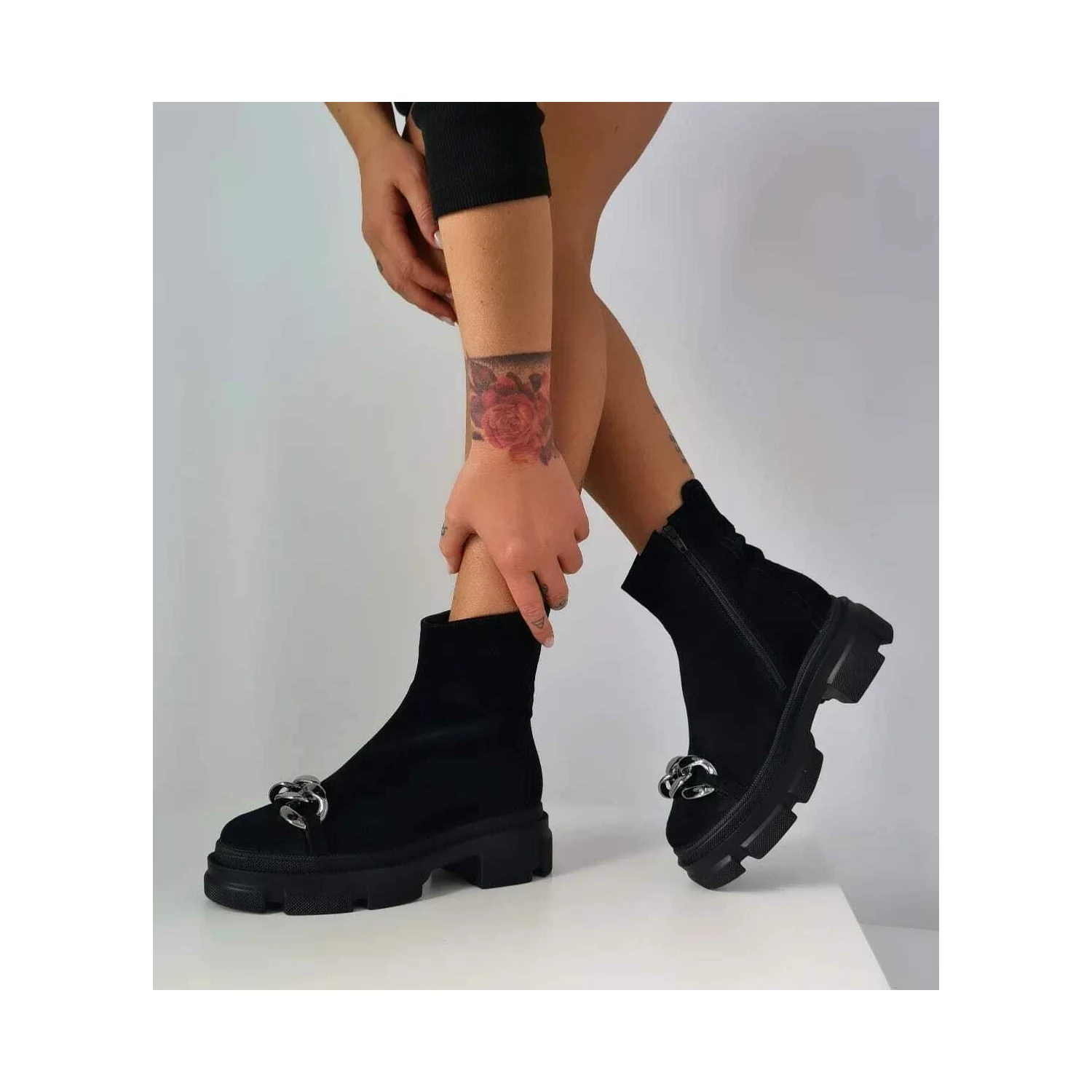 Ghete dama Piele Naturala Negre box cu lant detasabil Joeli