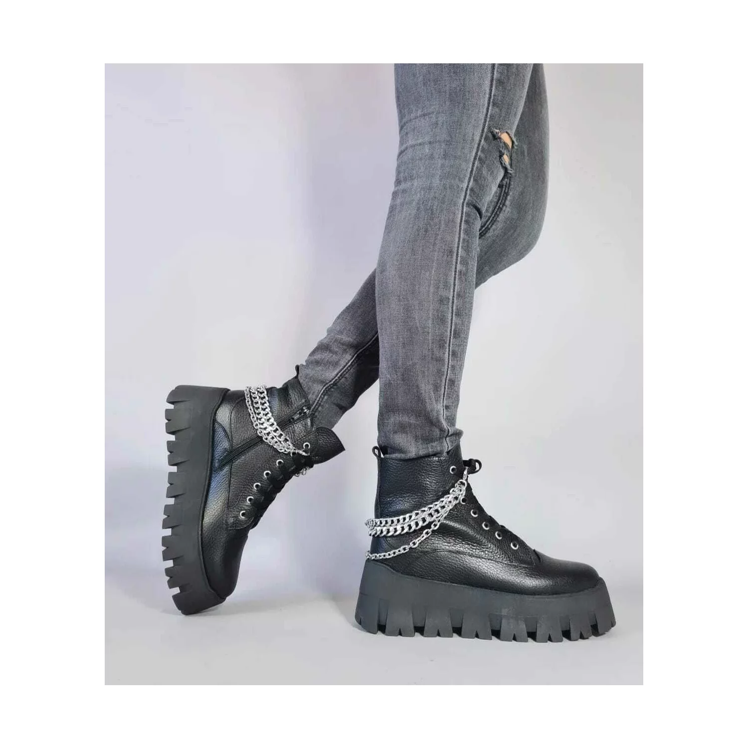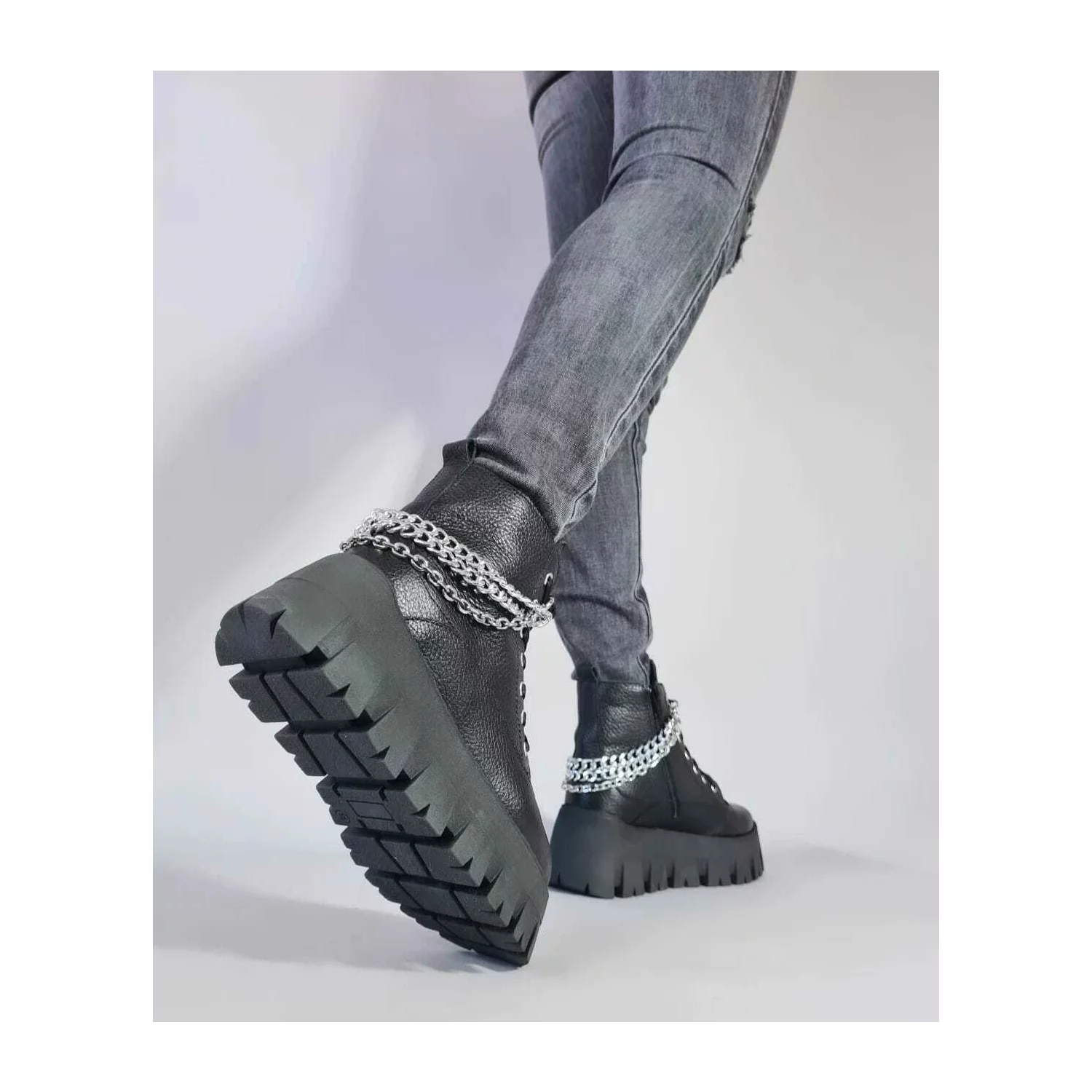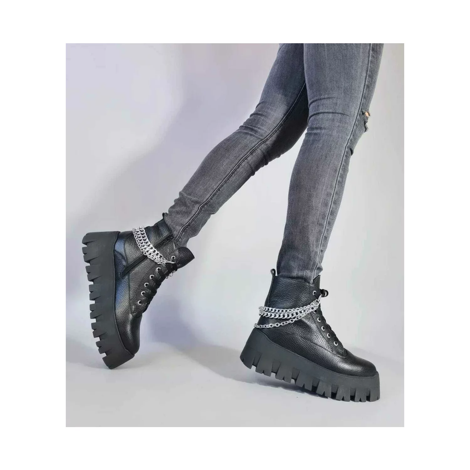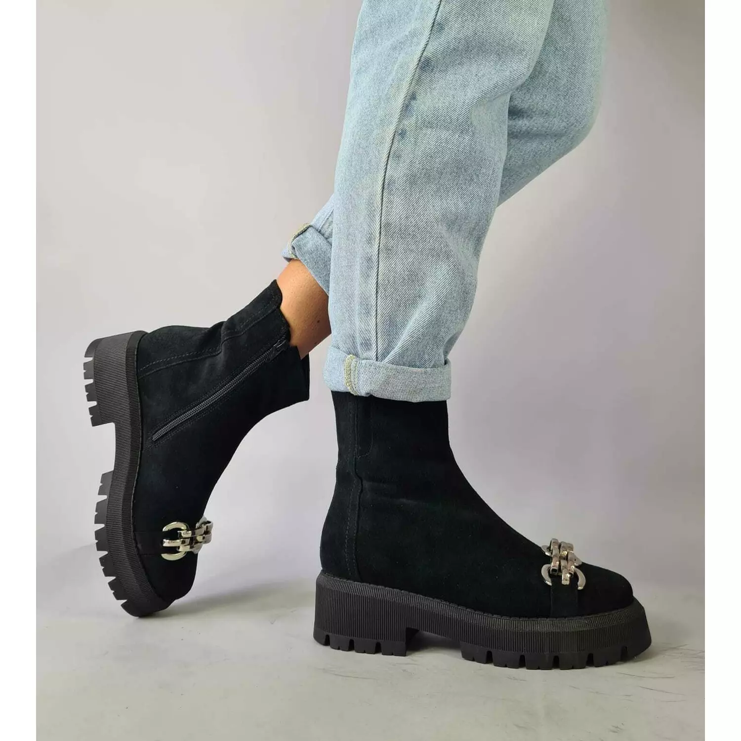 Ghete dama Piele Naturala Negre cu lanturi Relly