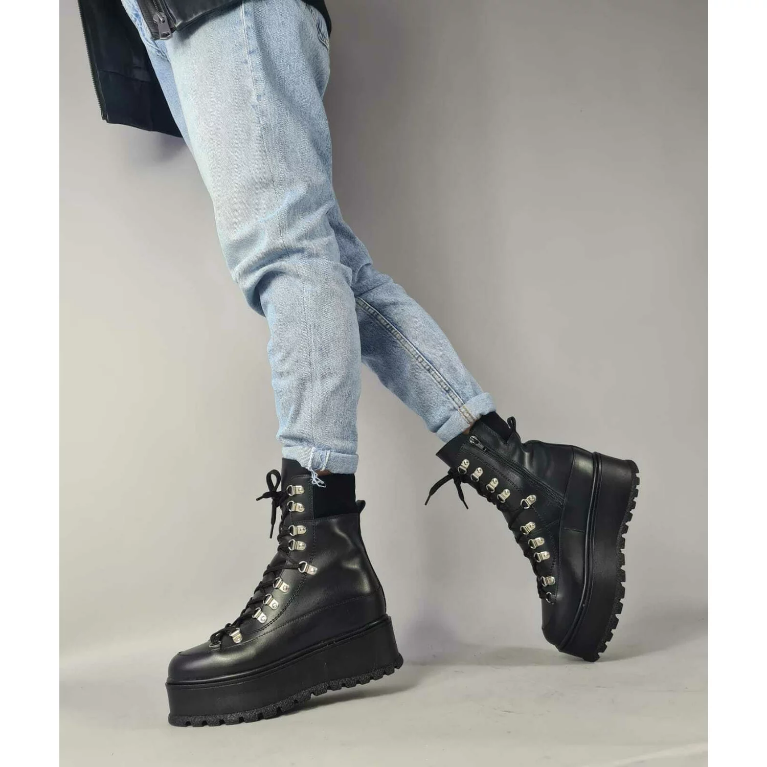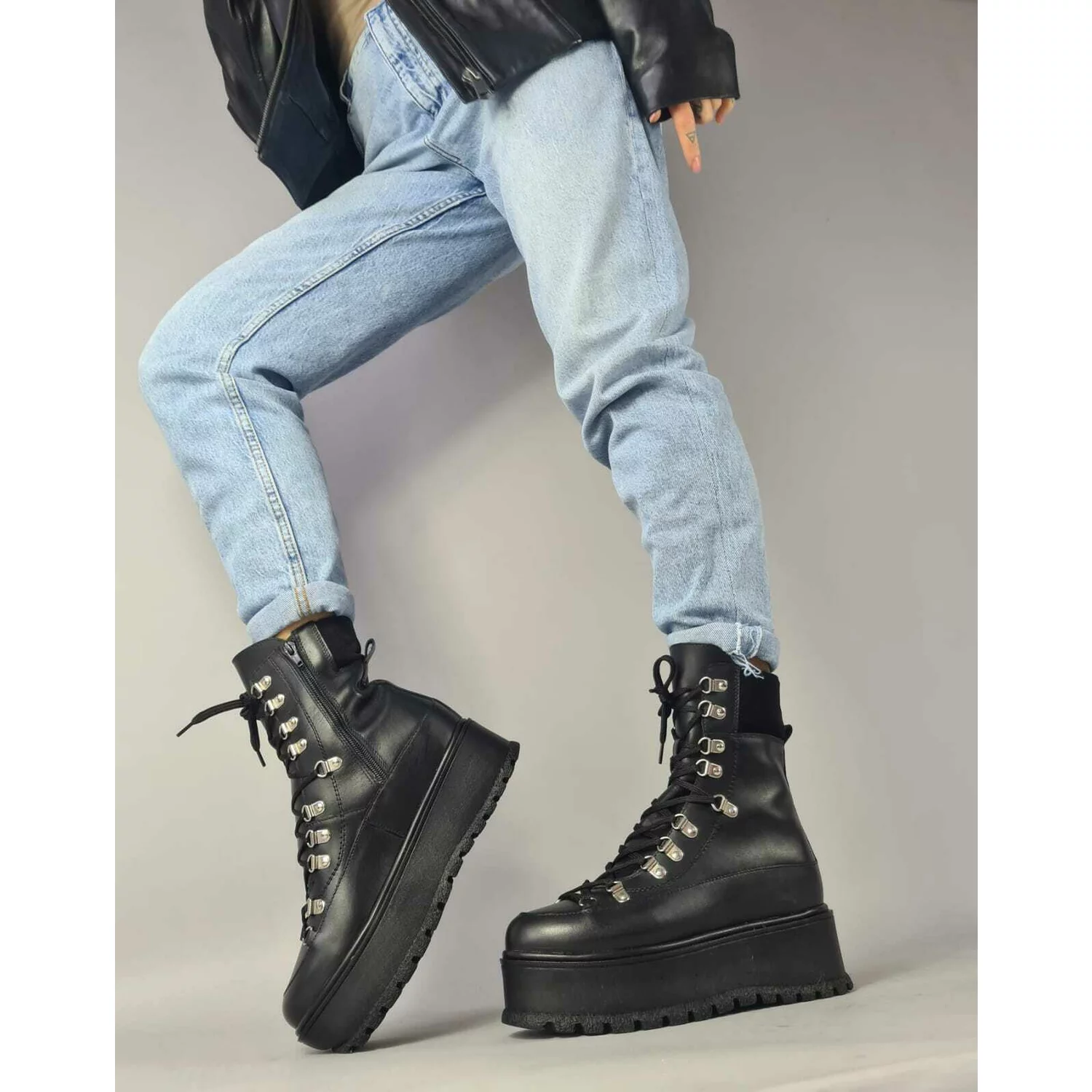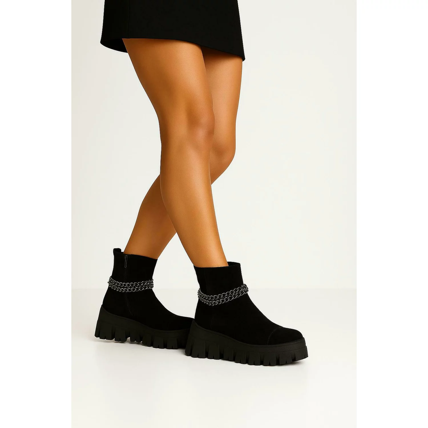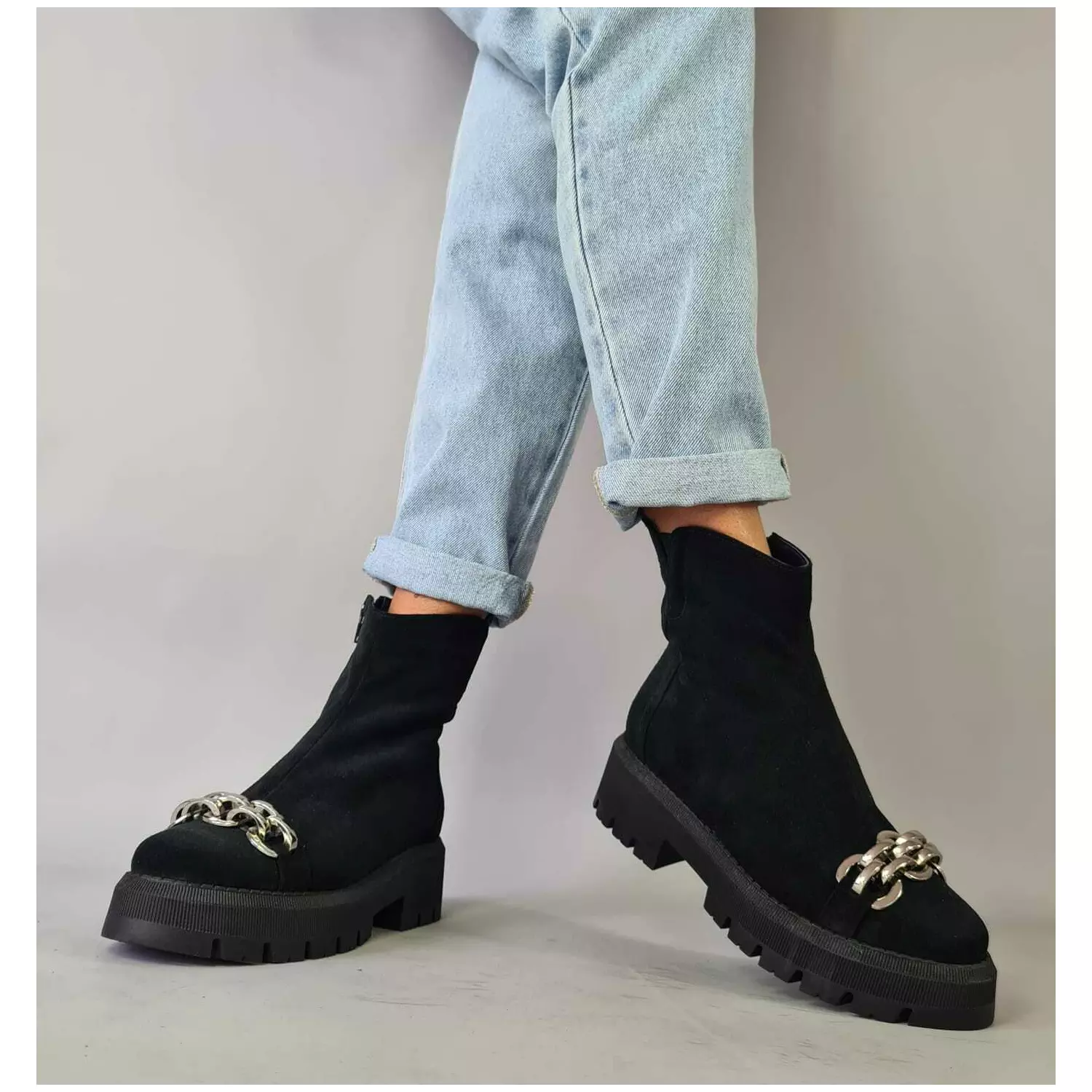 Ghete dama Piele Naturala Negre cu lanturi Relly