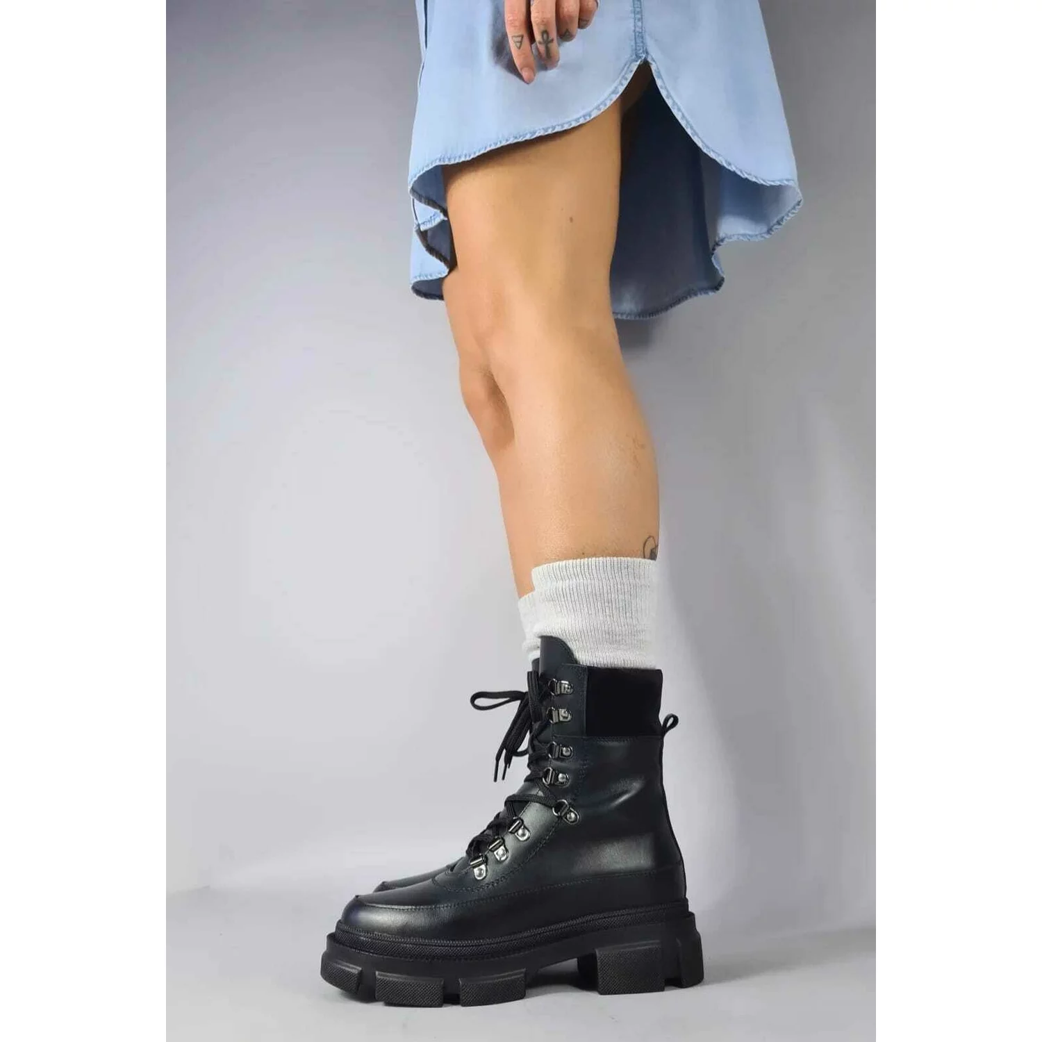 Ghete Piele Naturala Negre Aiko