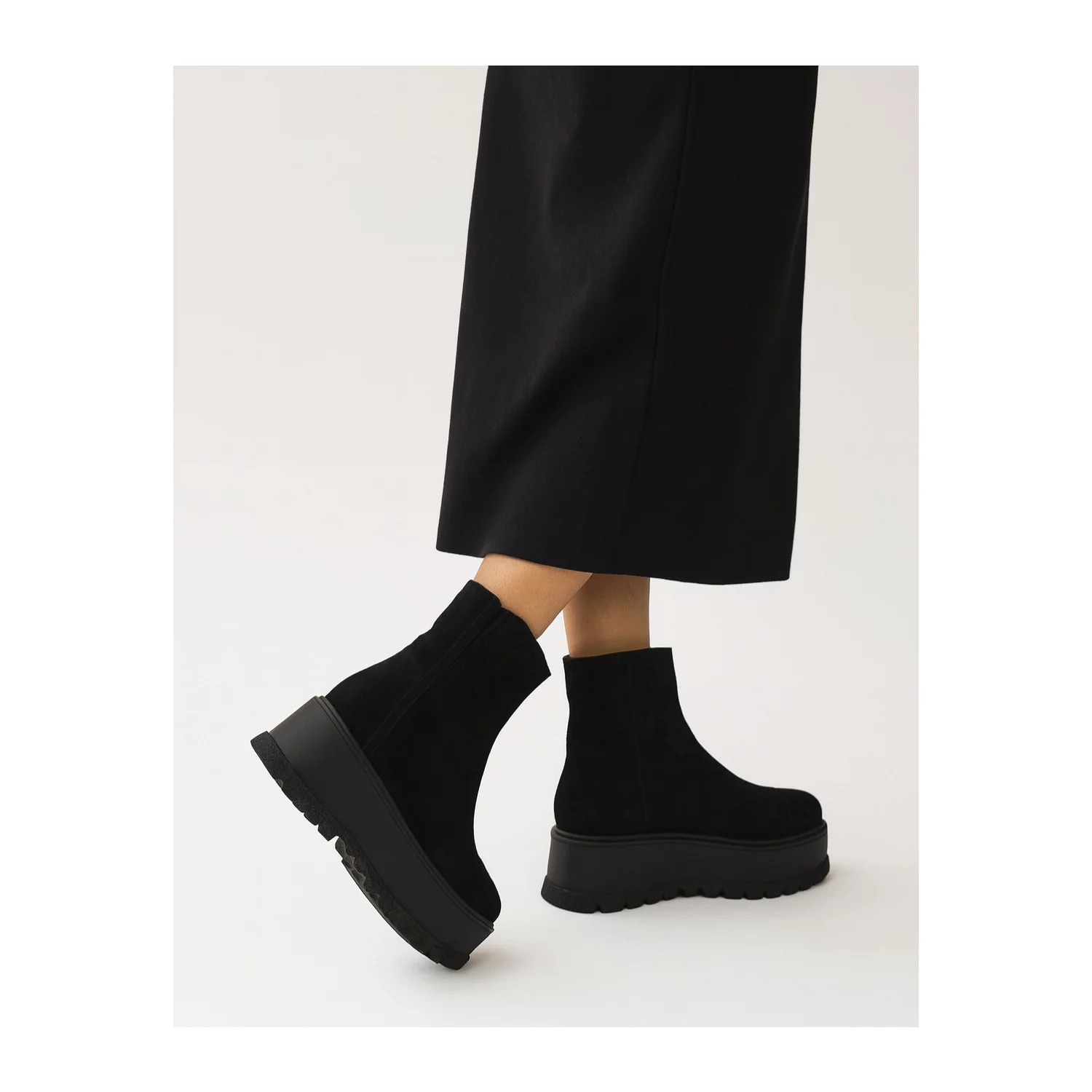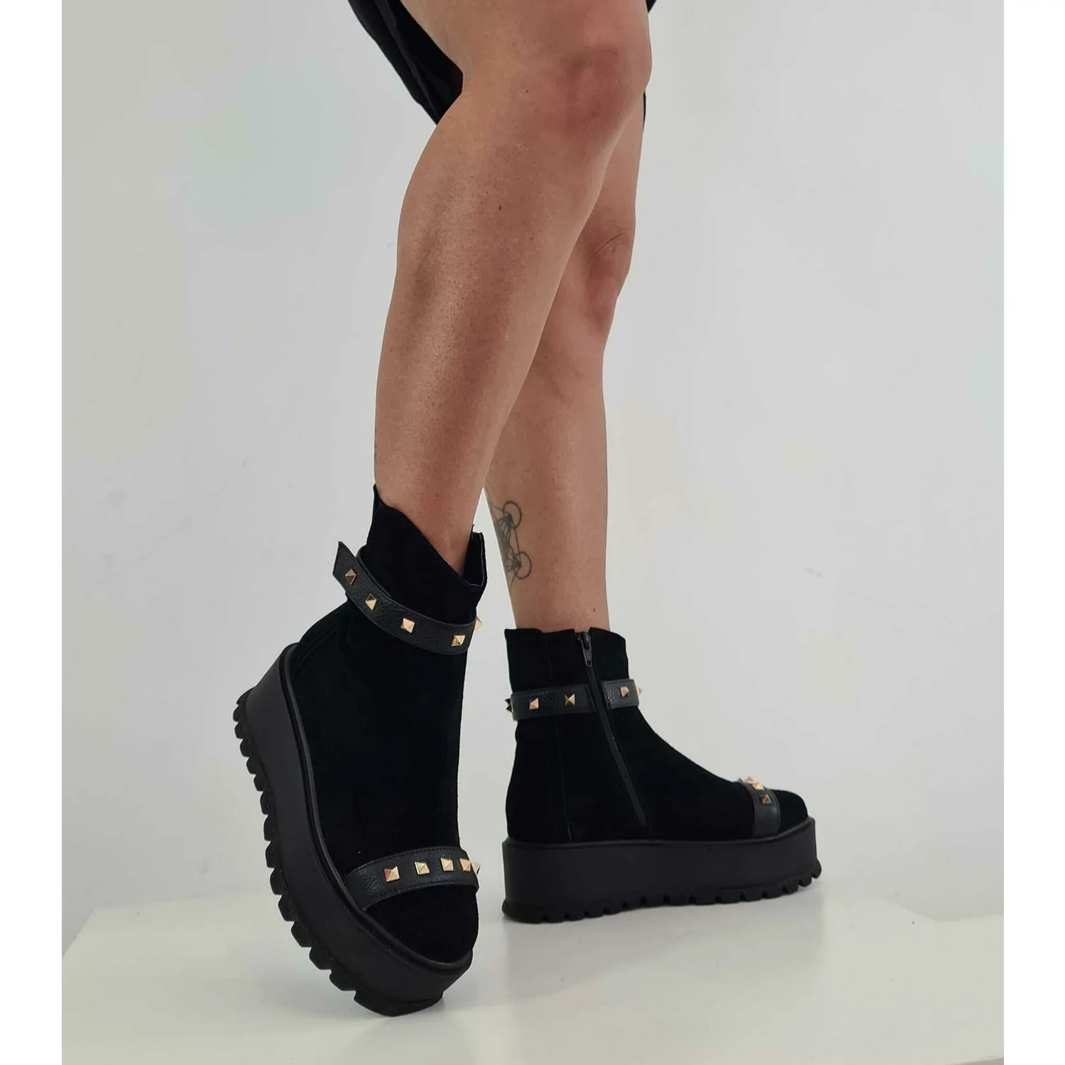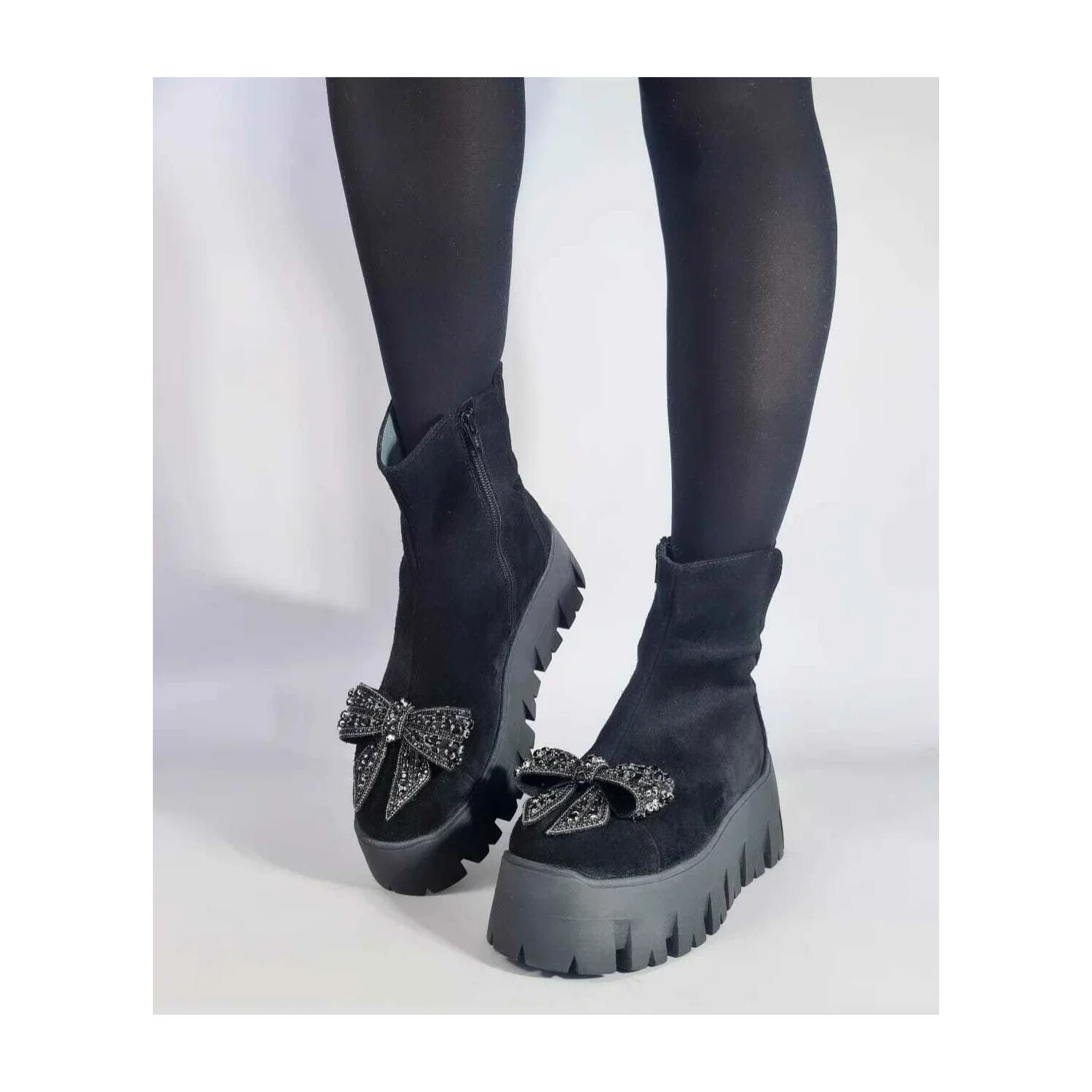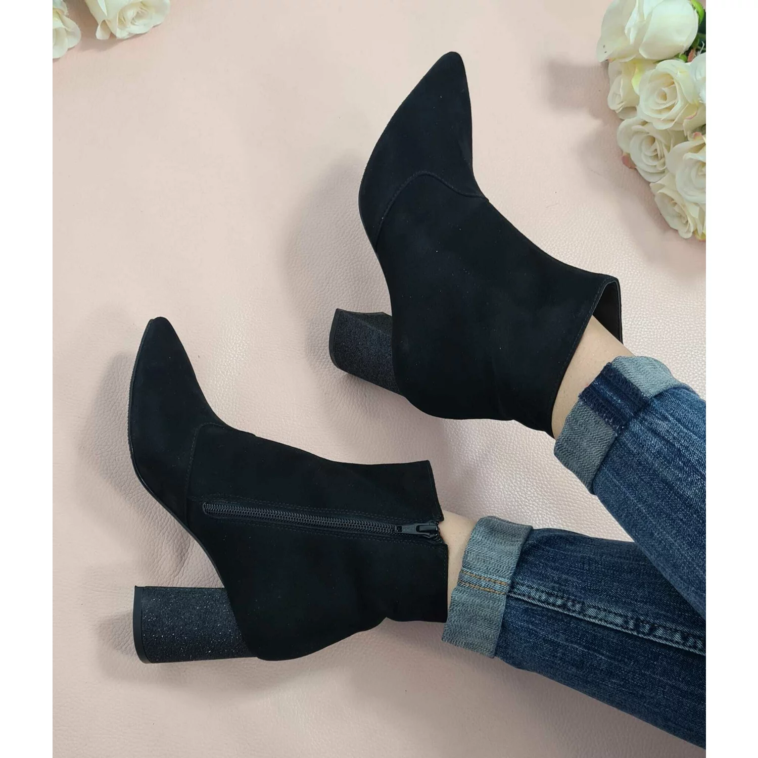 Botine piele intoarsa neagra Lena