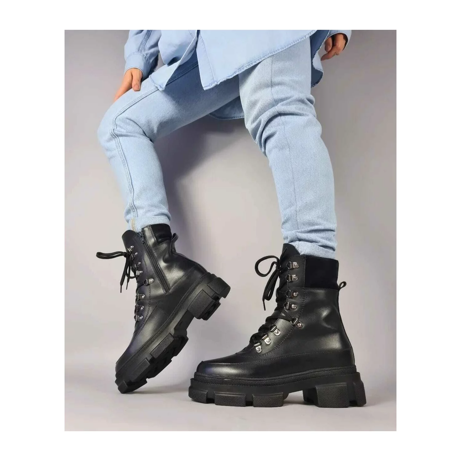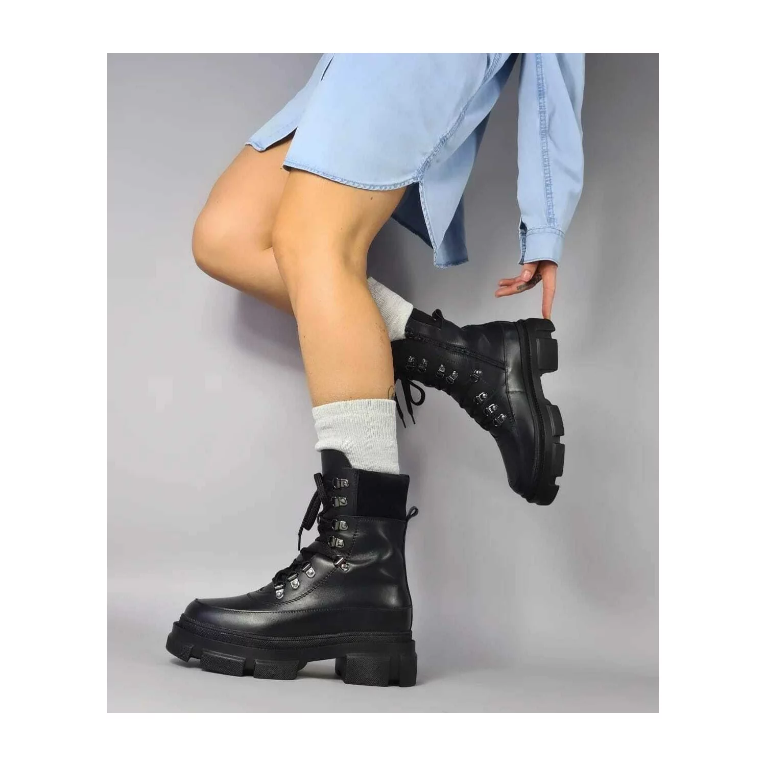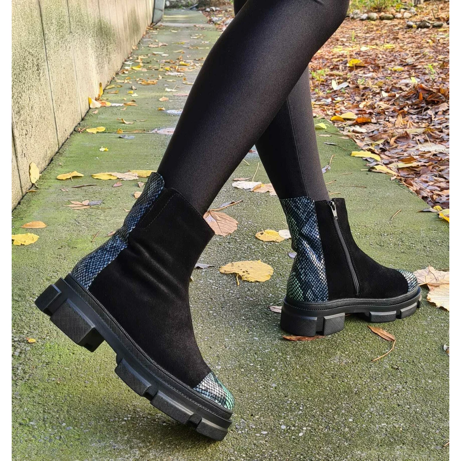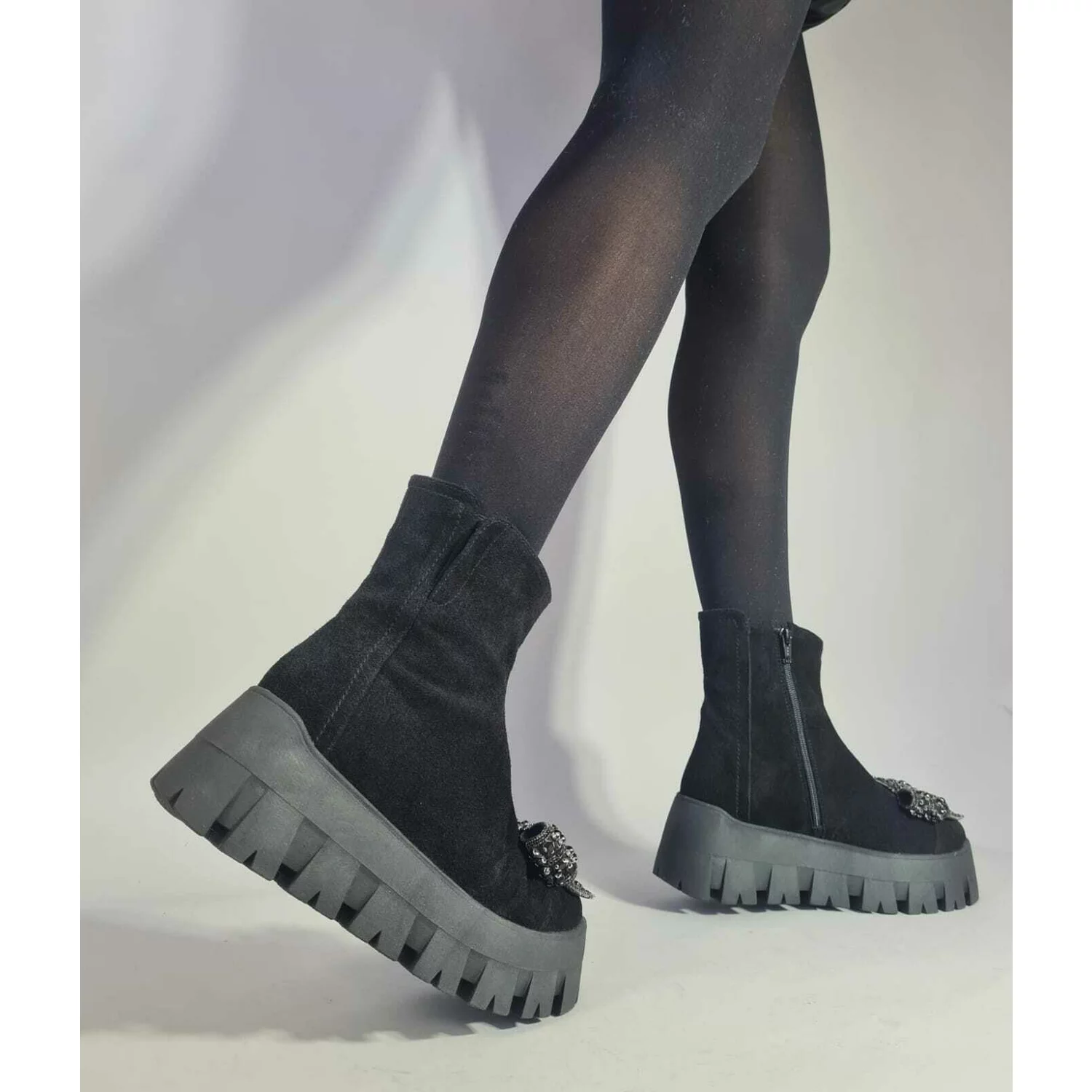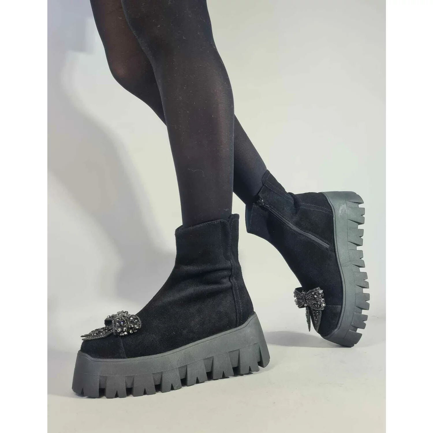 Botine piele intoarsa neagra Lena