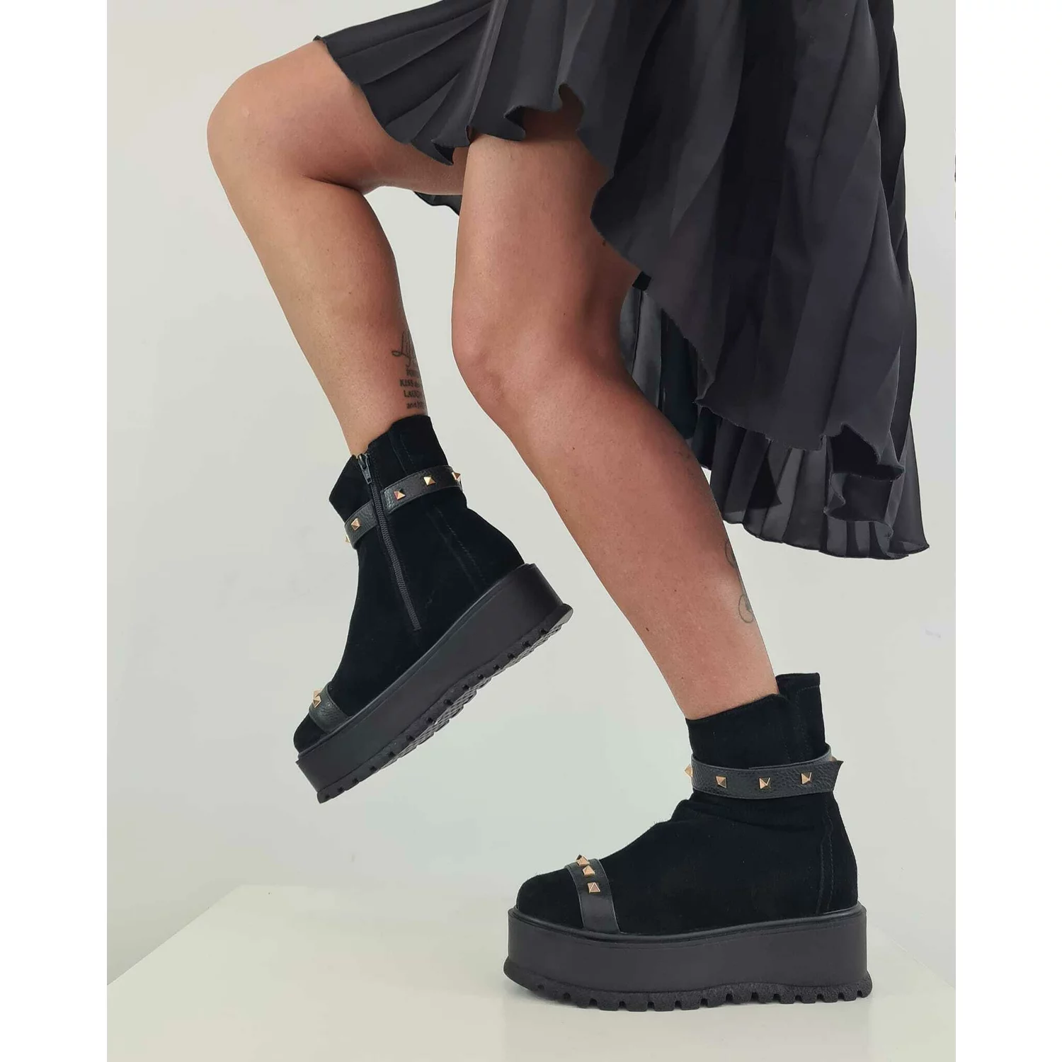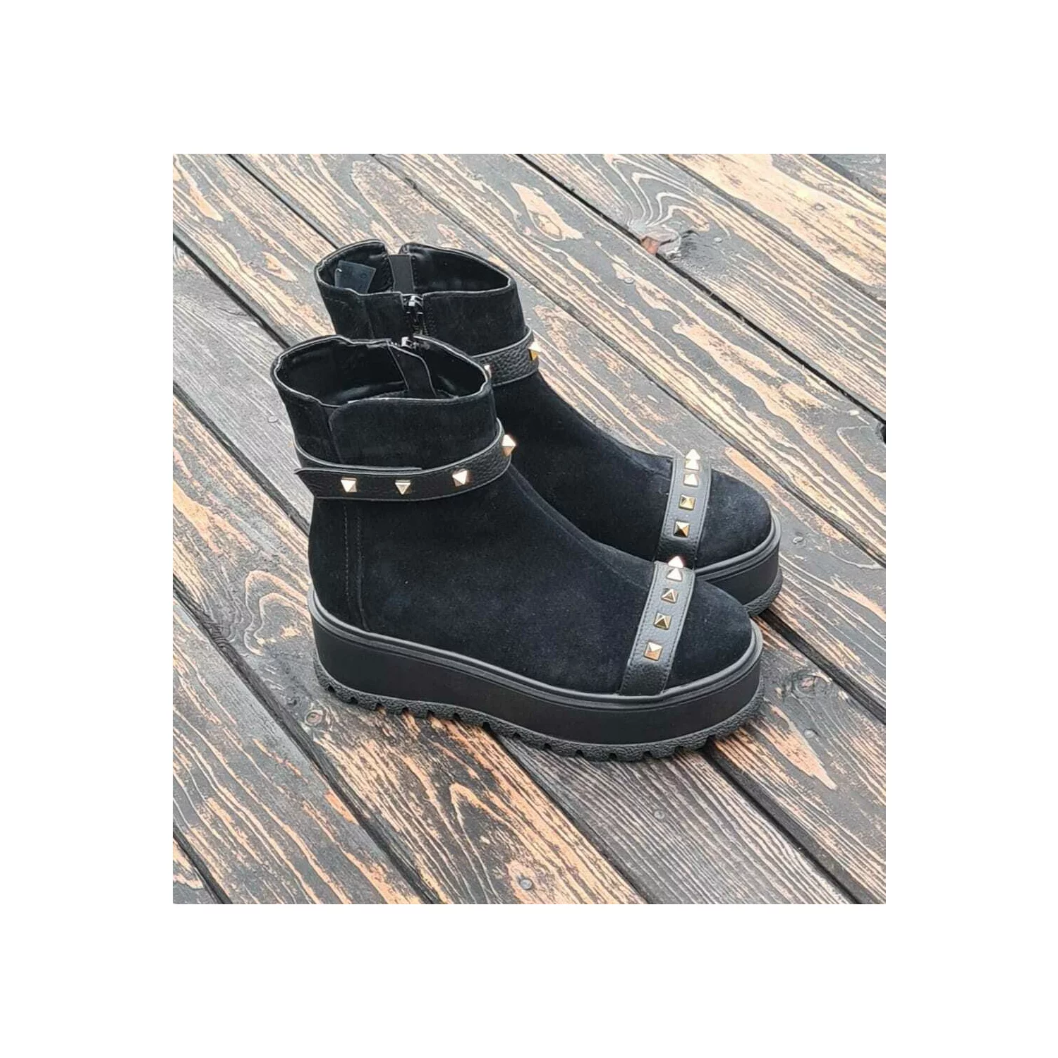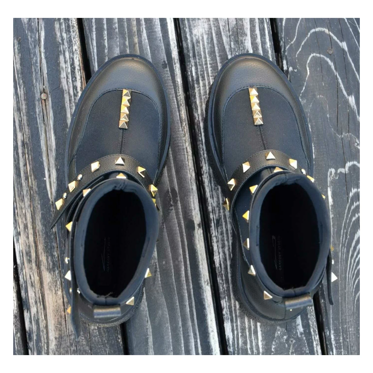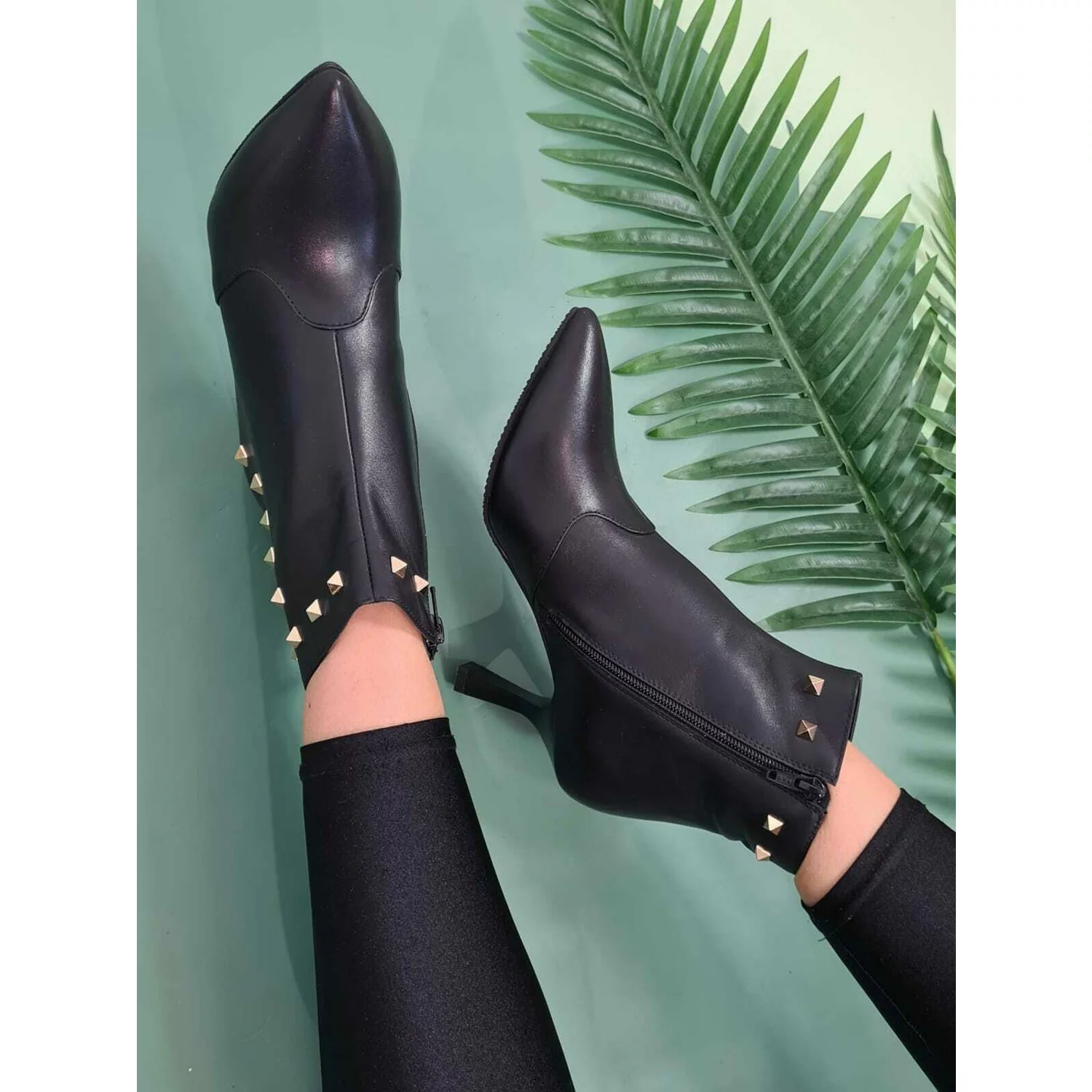 Ciocate dama Piele Naturala Negre accesorizate cu capse Evogue