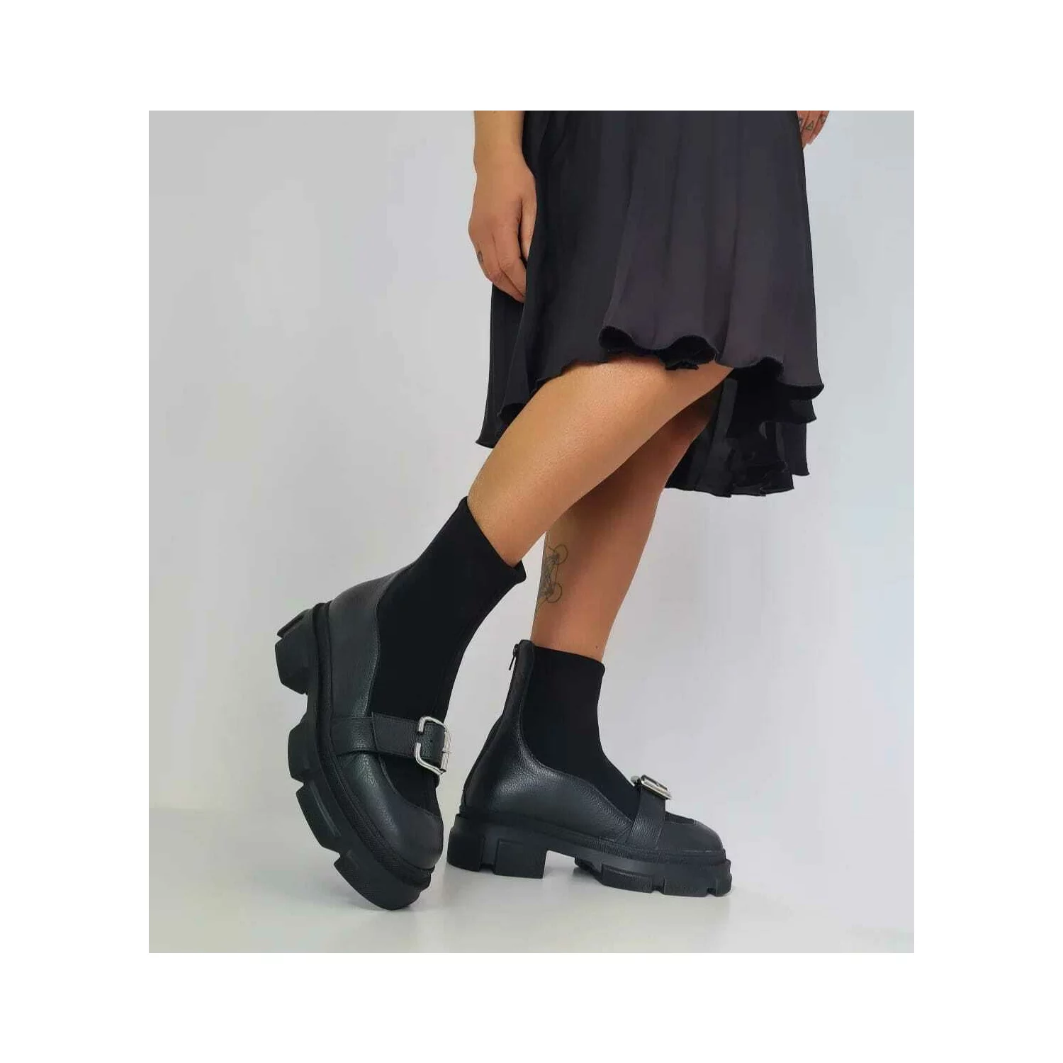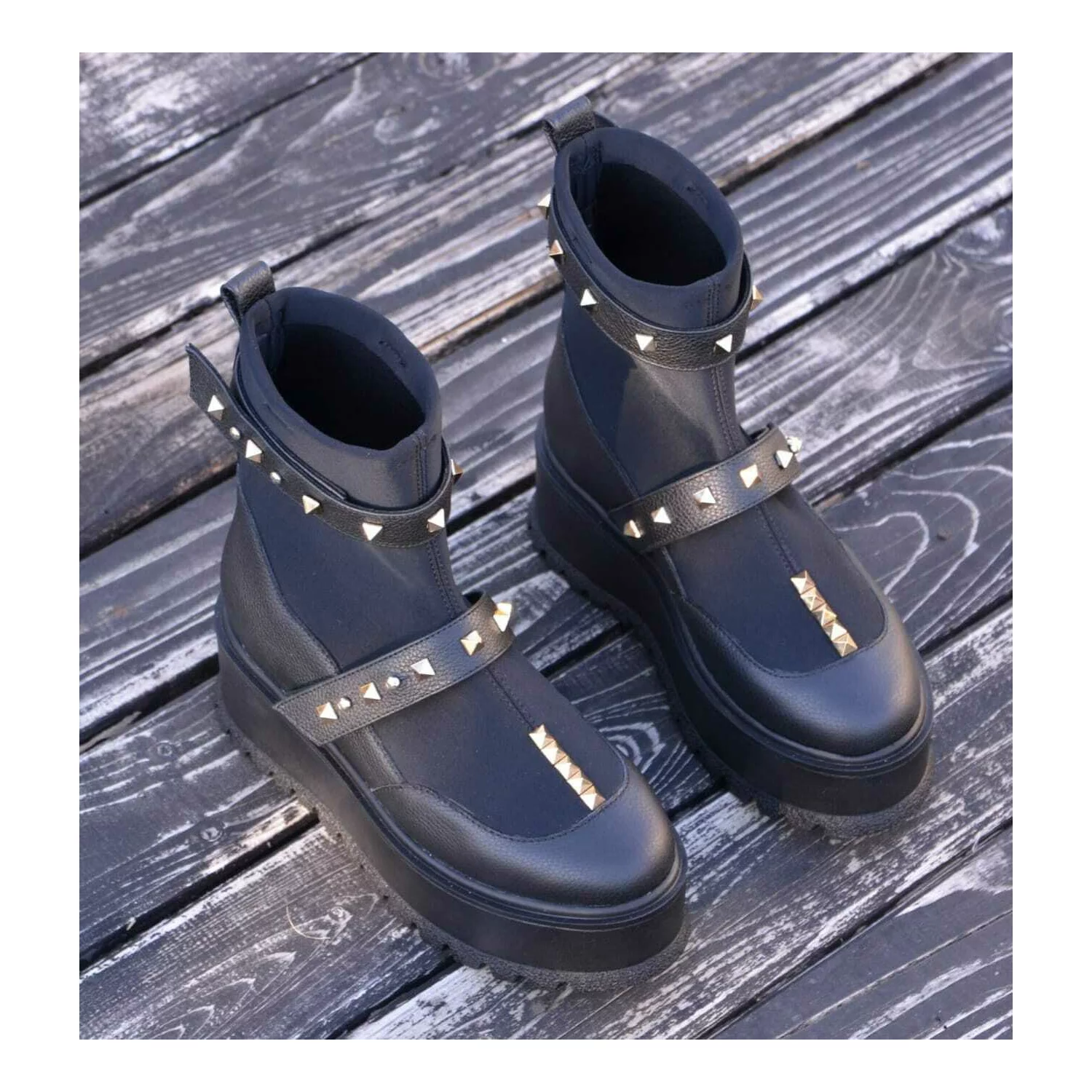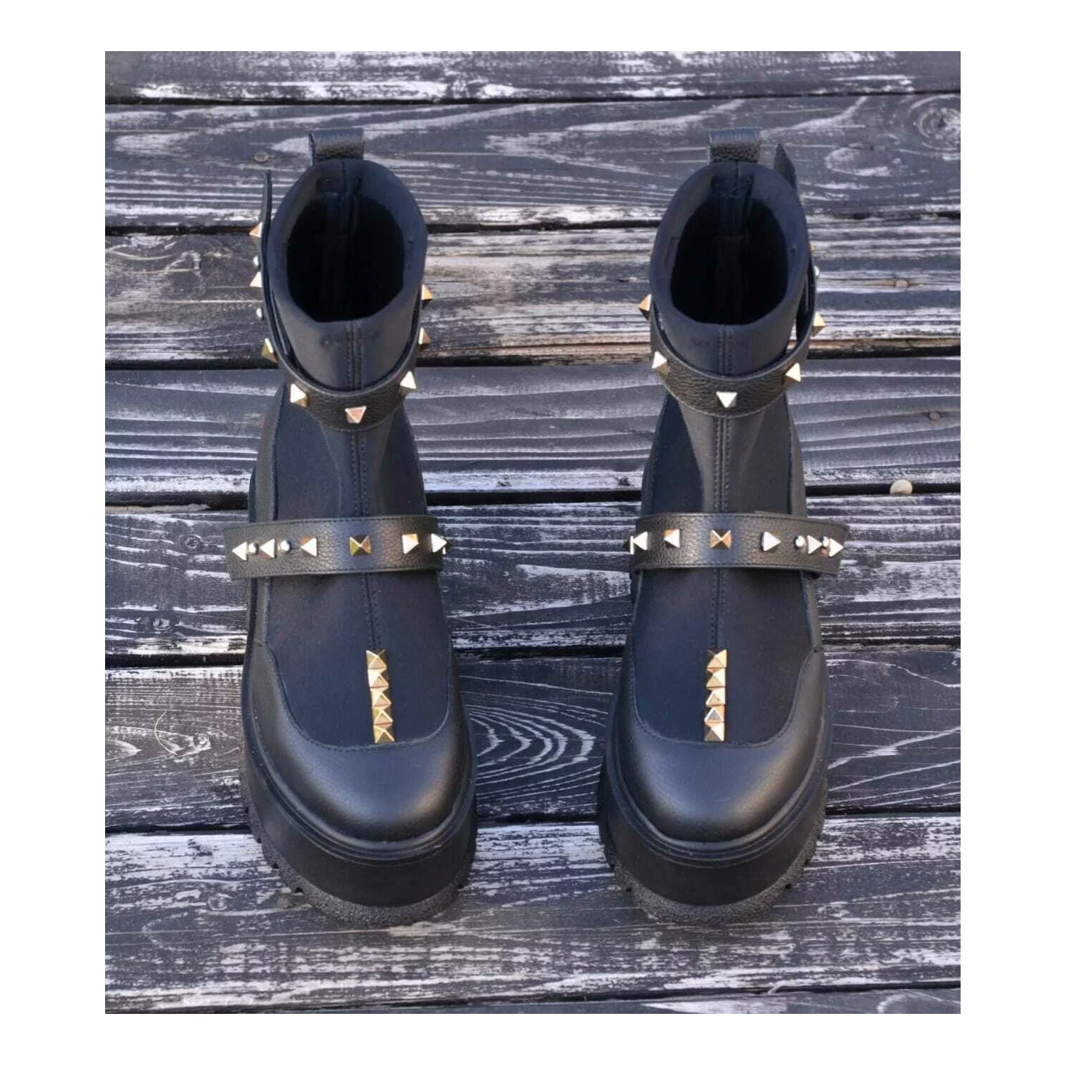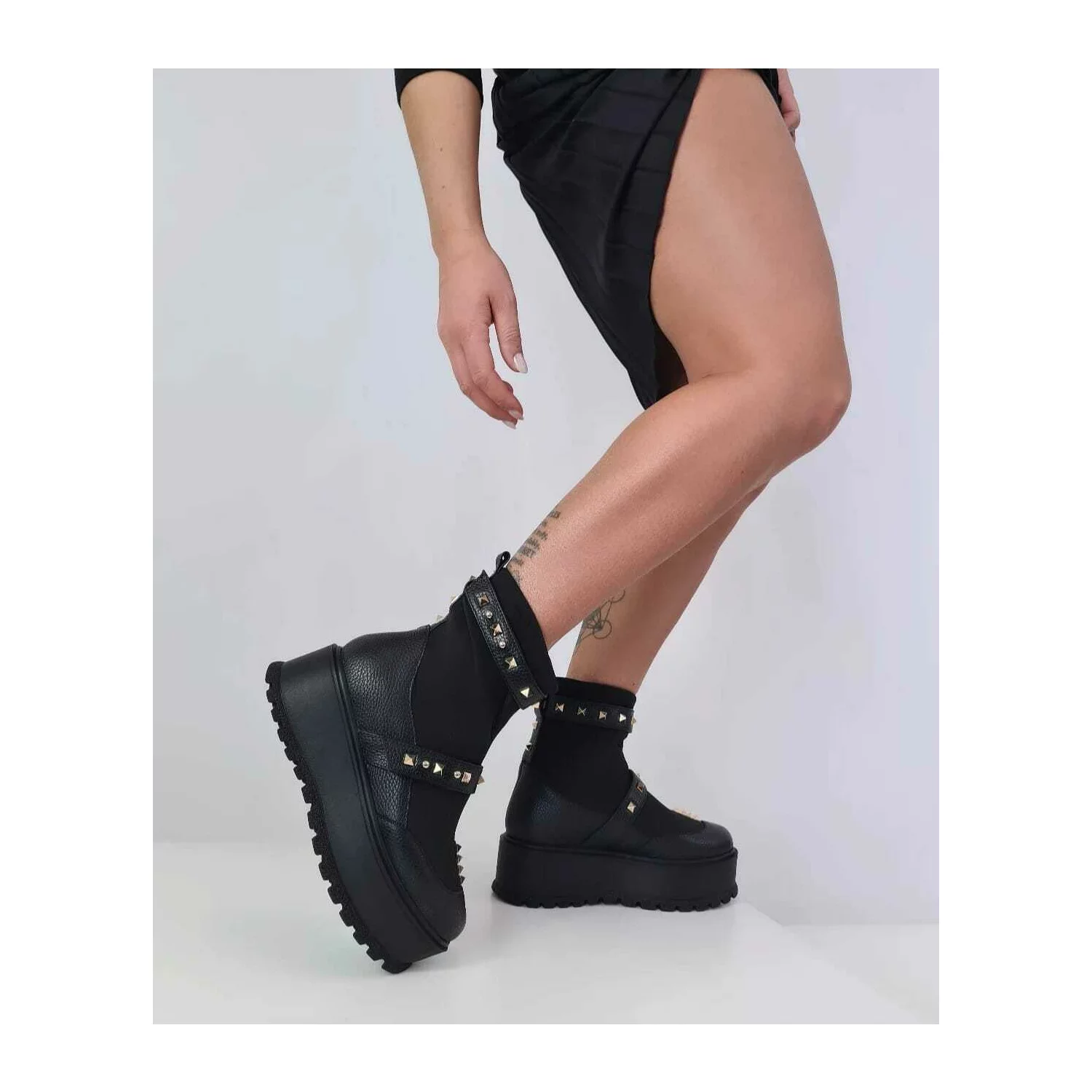 Ciocate dama Piele Naturala Negre accesorizate cu capse Evogue