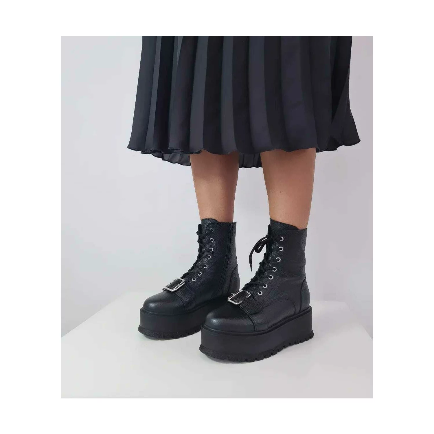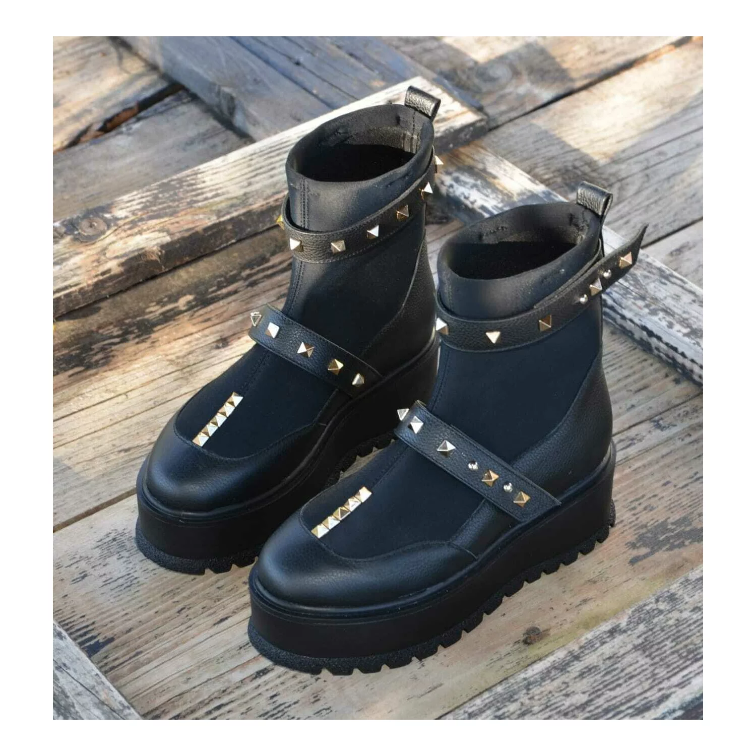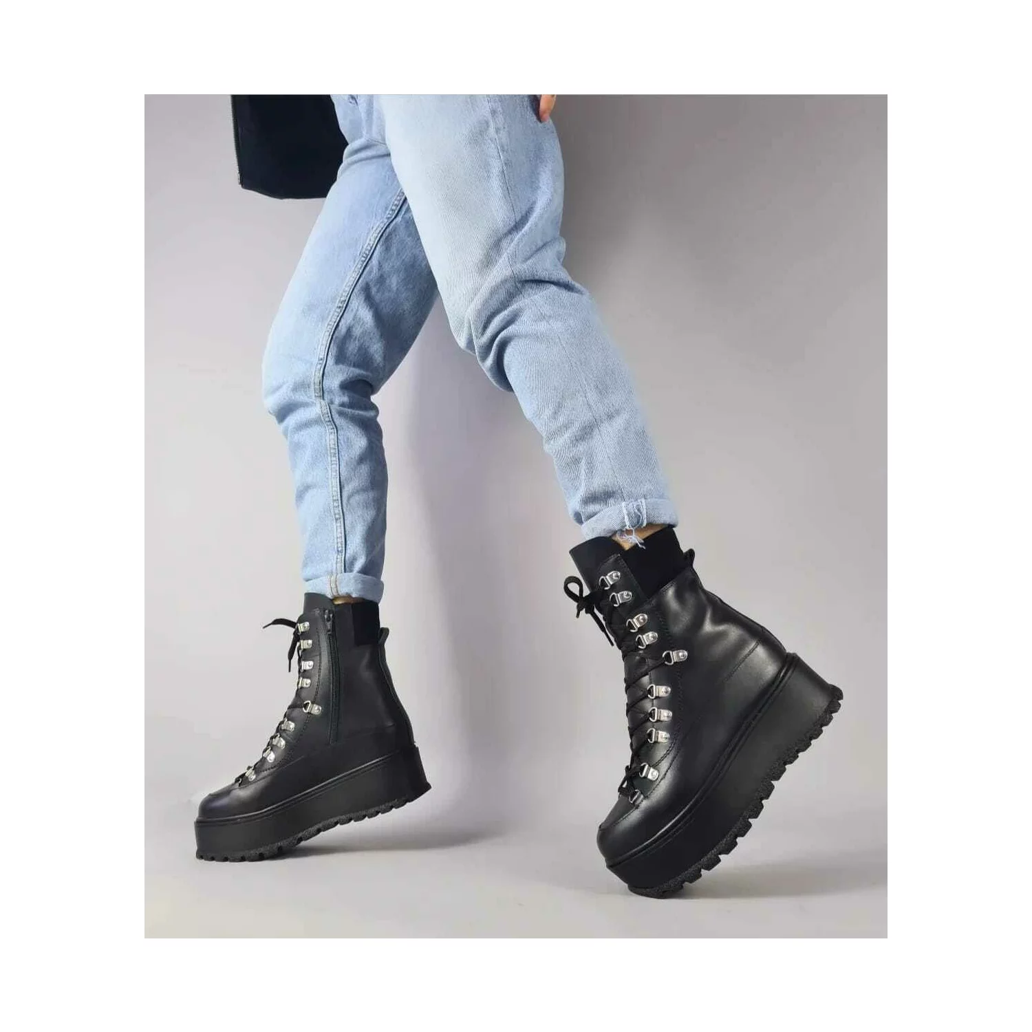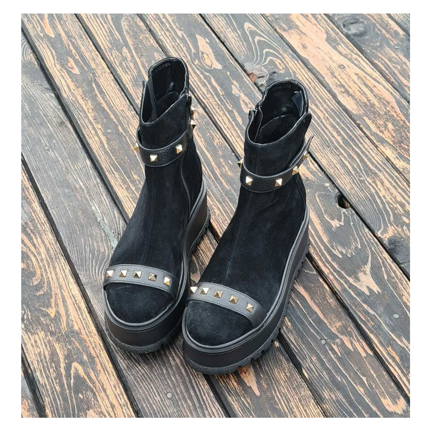 Ciocate dama Piele Naturala Negre accesorizate cu capse Evogue