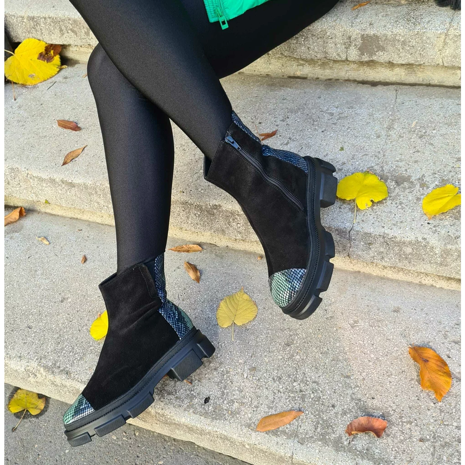 Ghete dama Piele Naturala Verzi cu bareta detasabila Monik