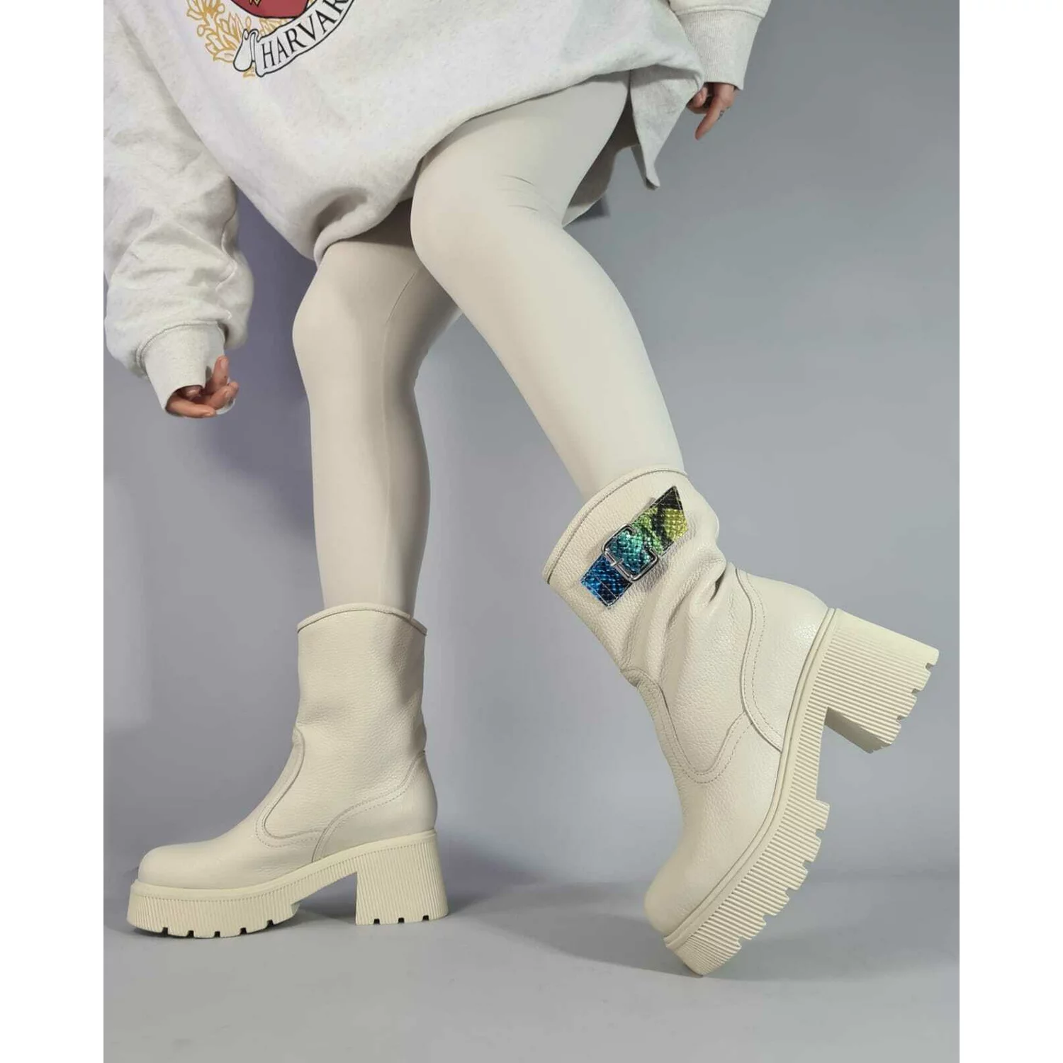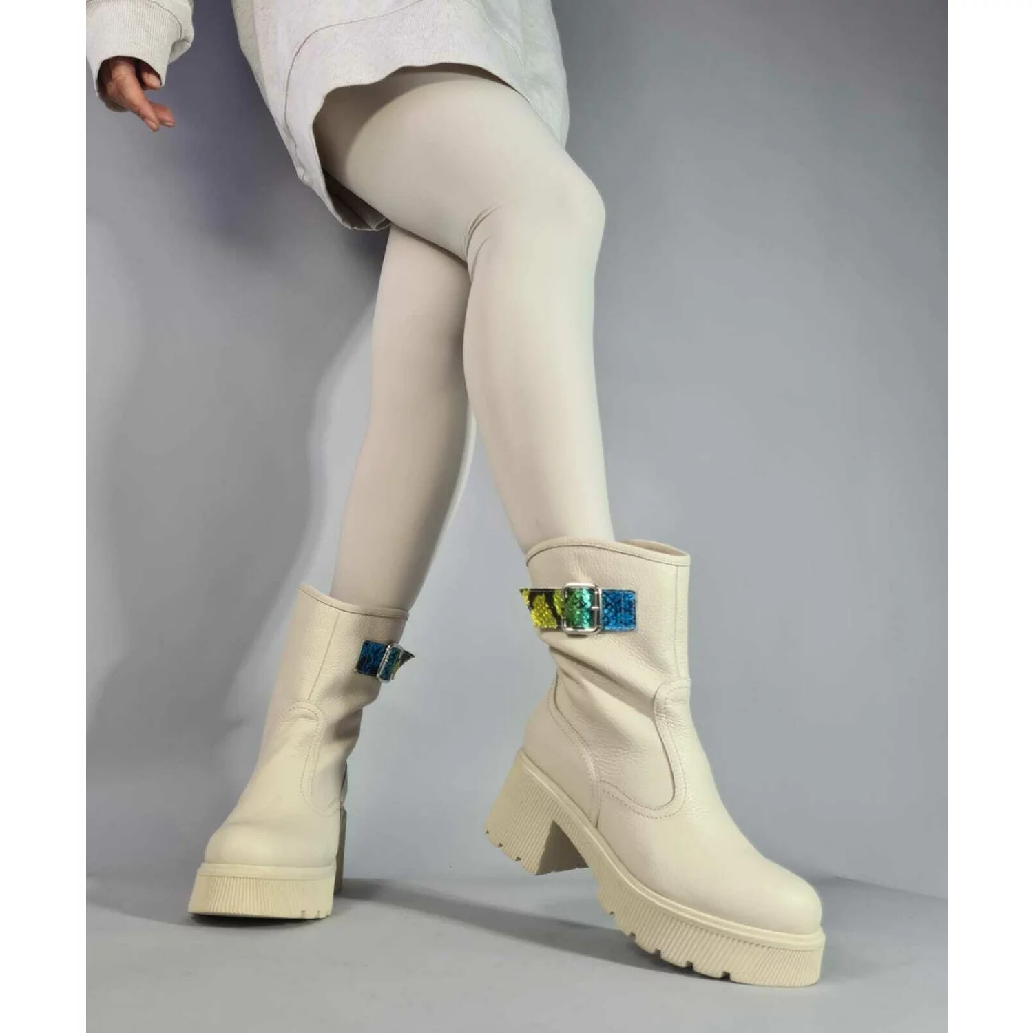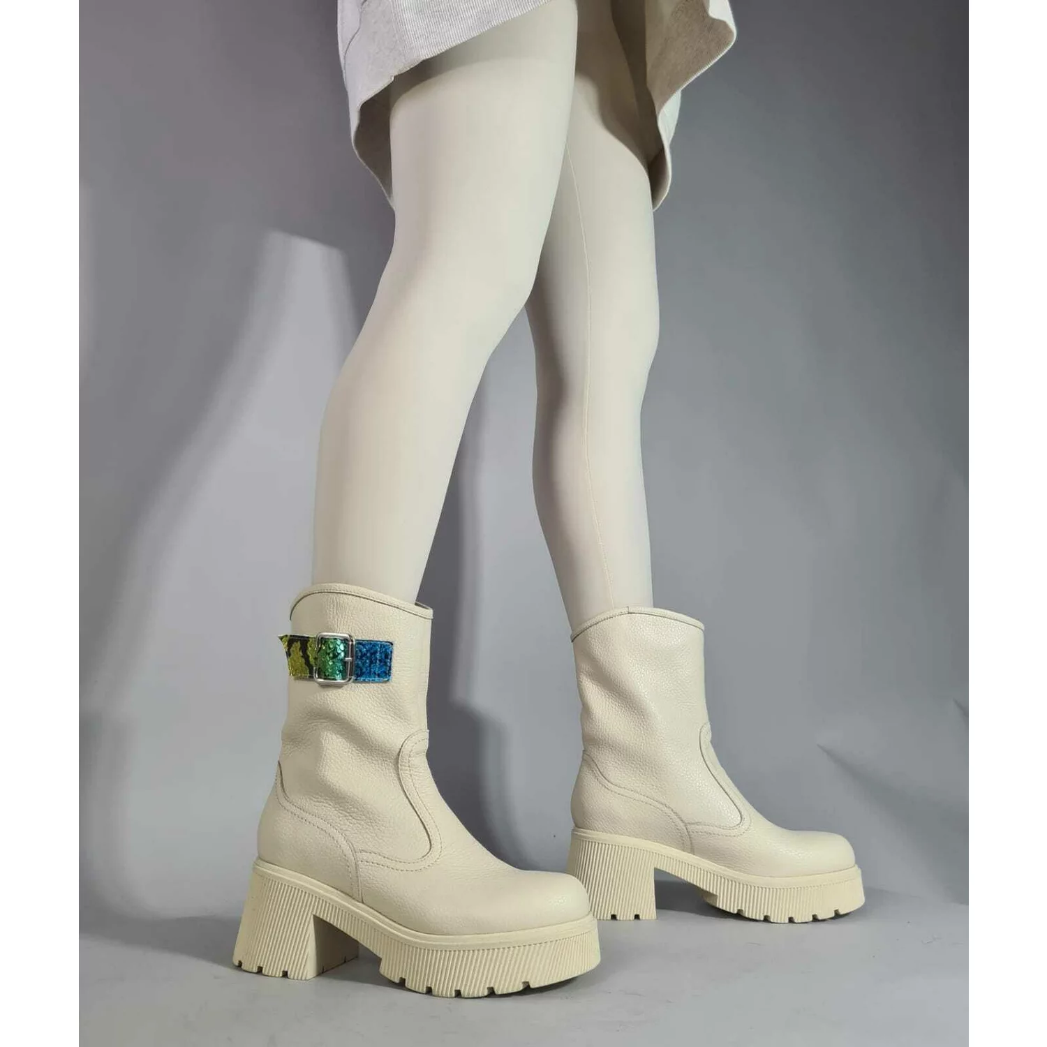 Ghete dama Piele Naturala Bej cu catarame Melua