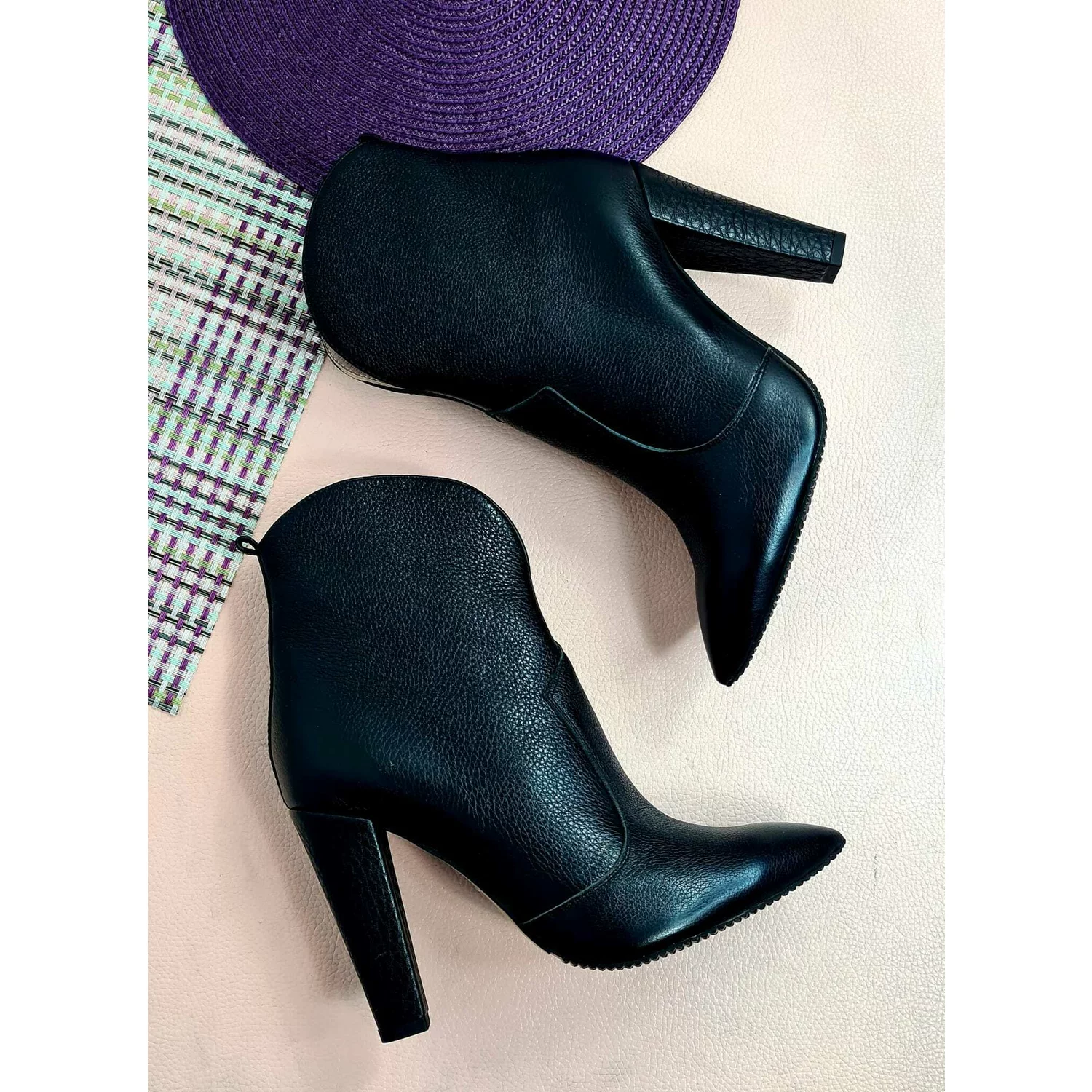 Ciocate Piele Naturala Negrecu toc conic Amalia