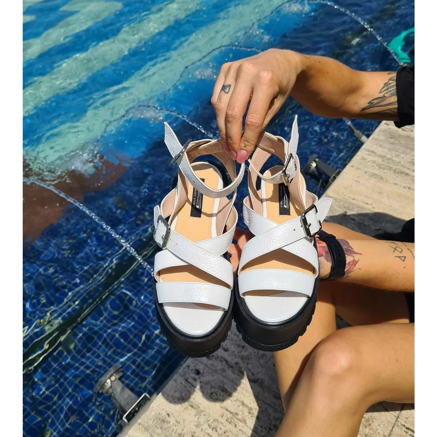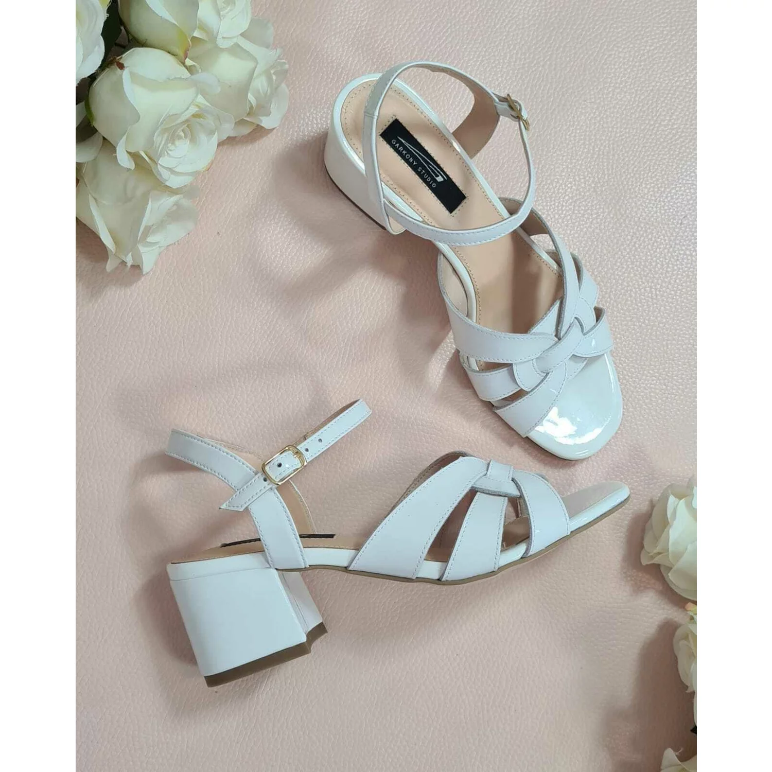 Sandale pielelacuita alba Vika