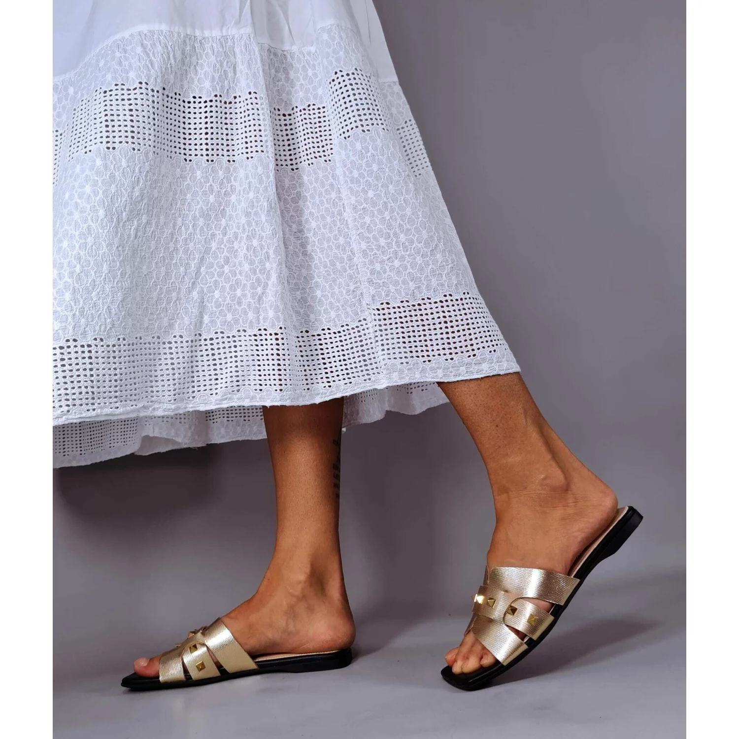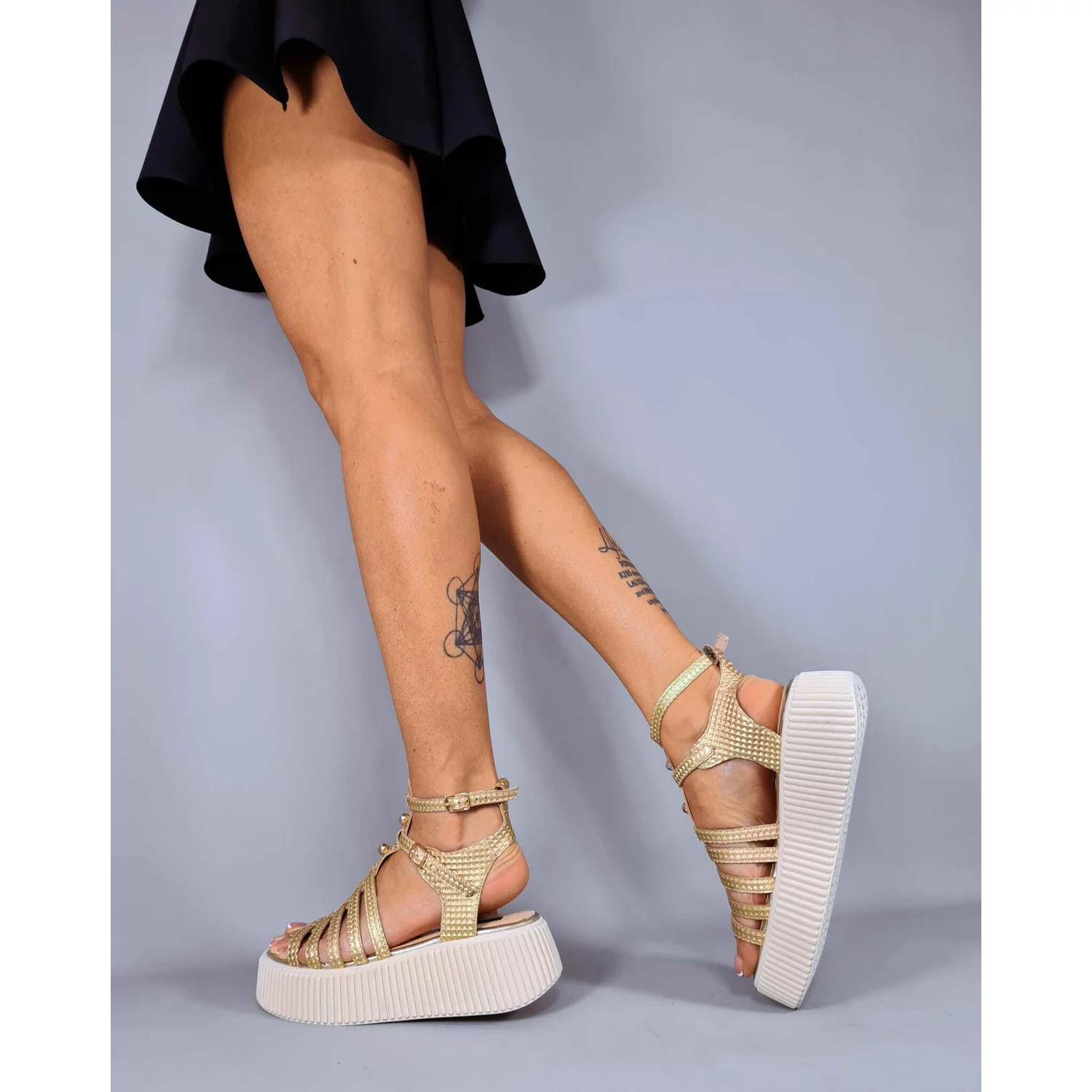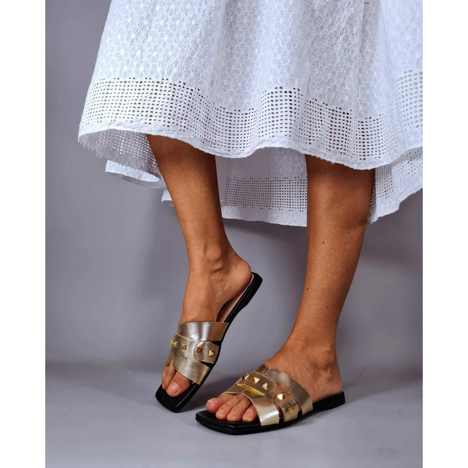 Sandale dama tip pacuci Piele Naturala Aurii cu accesorii Seed
