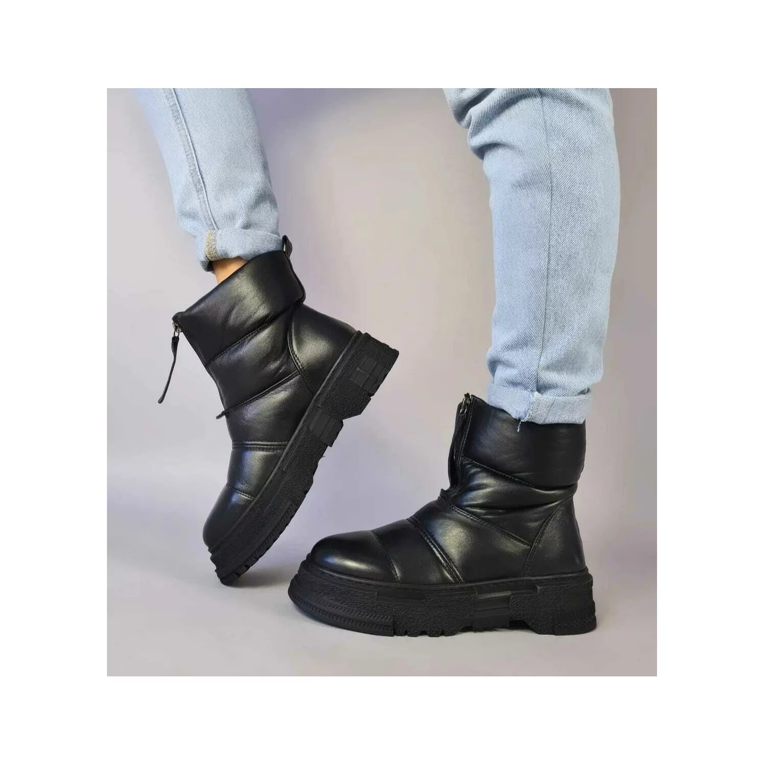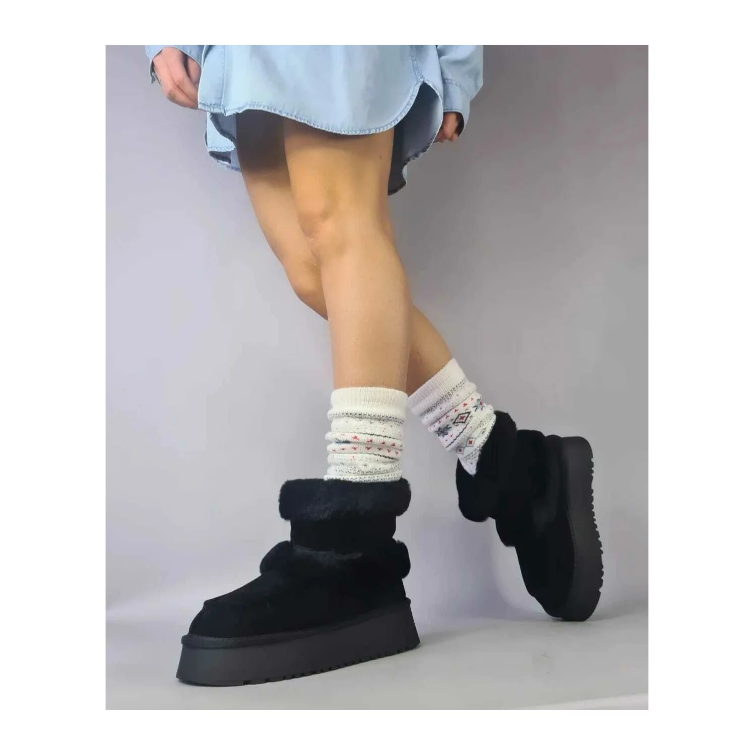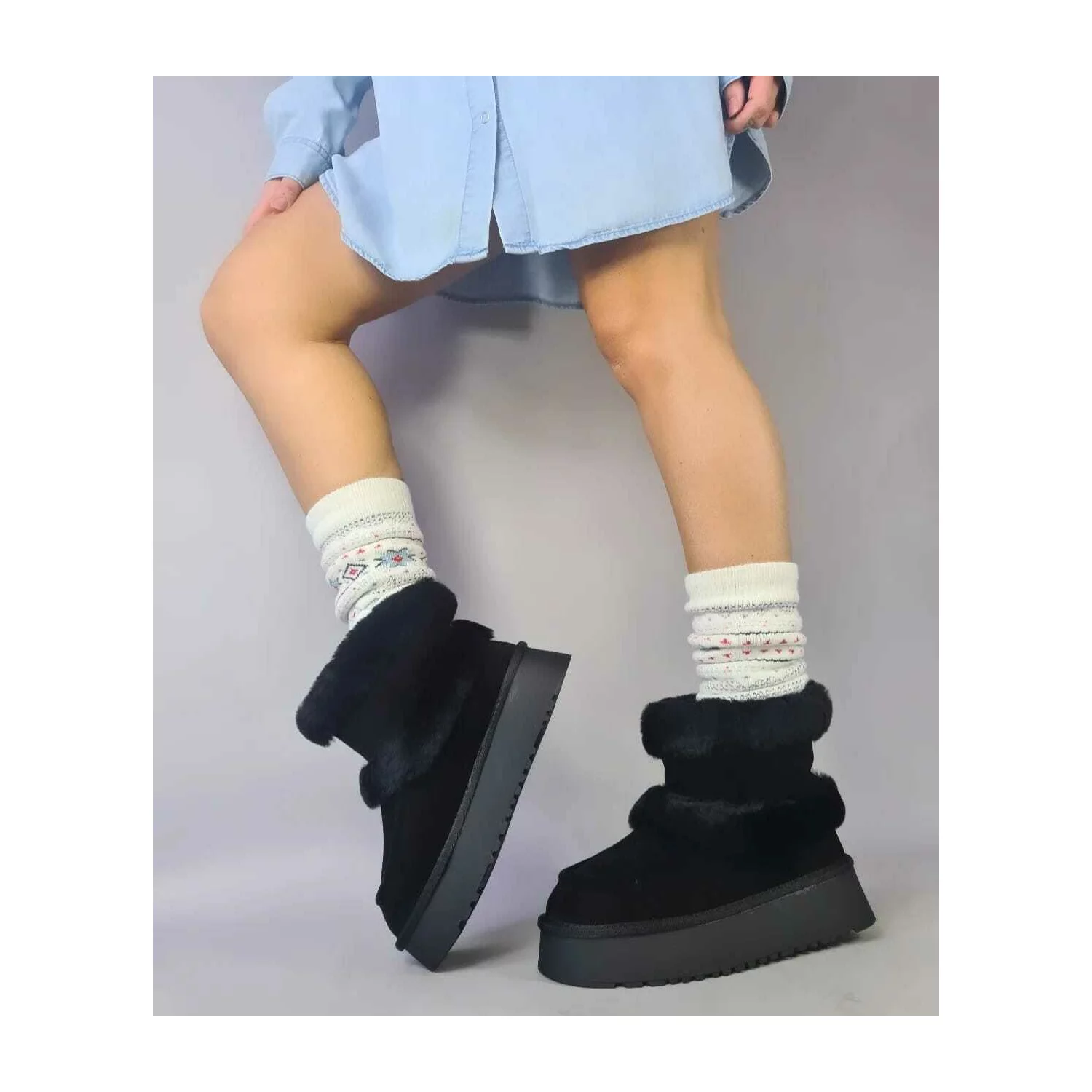 Ghete imblanite Piele Naturala Negre Wooly