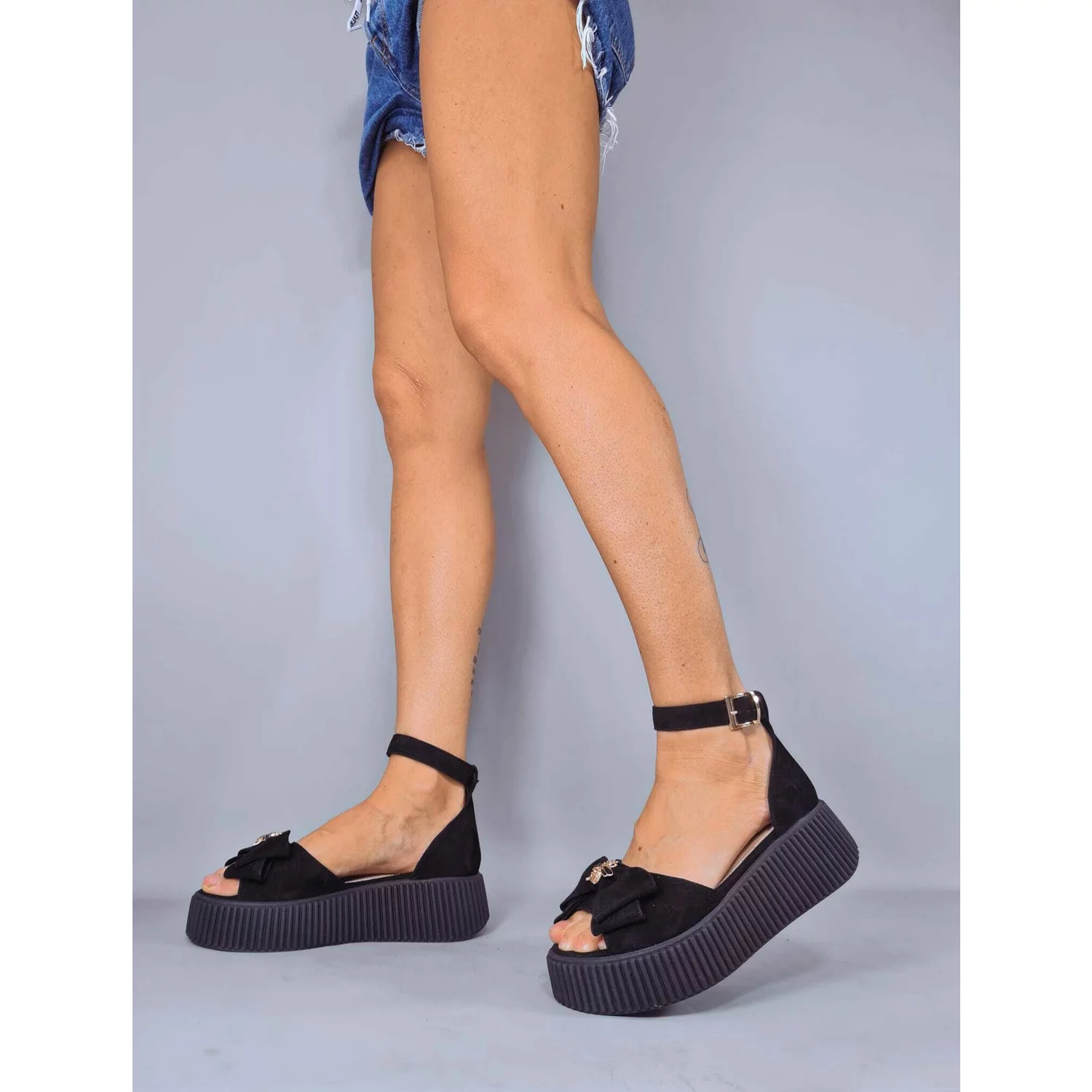 Sandale dama Piele Naturala Negre cu accesorii Glass