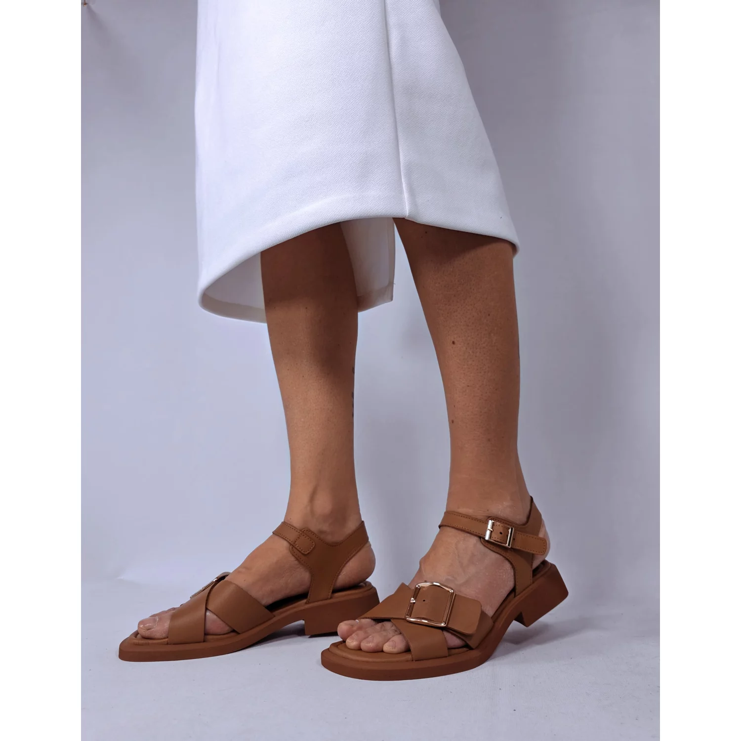 Sandale dama Piele Naturala Maro coniac, casual, talpa joasa Giovanna