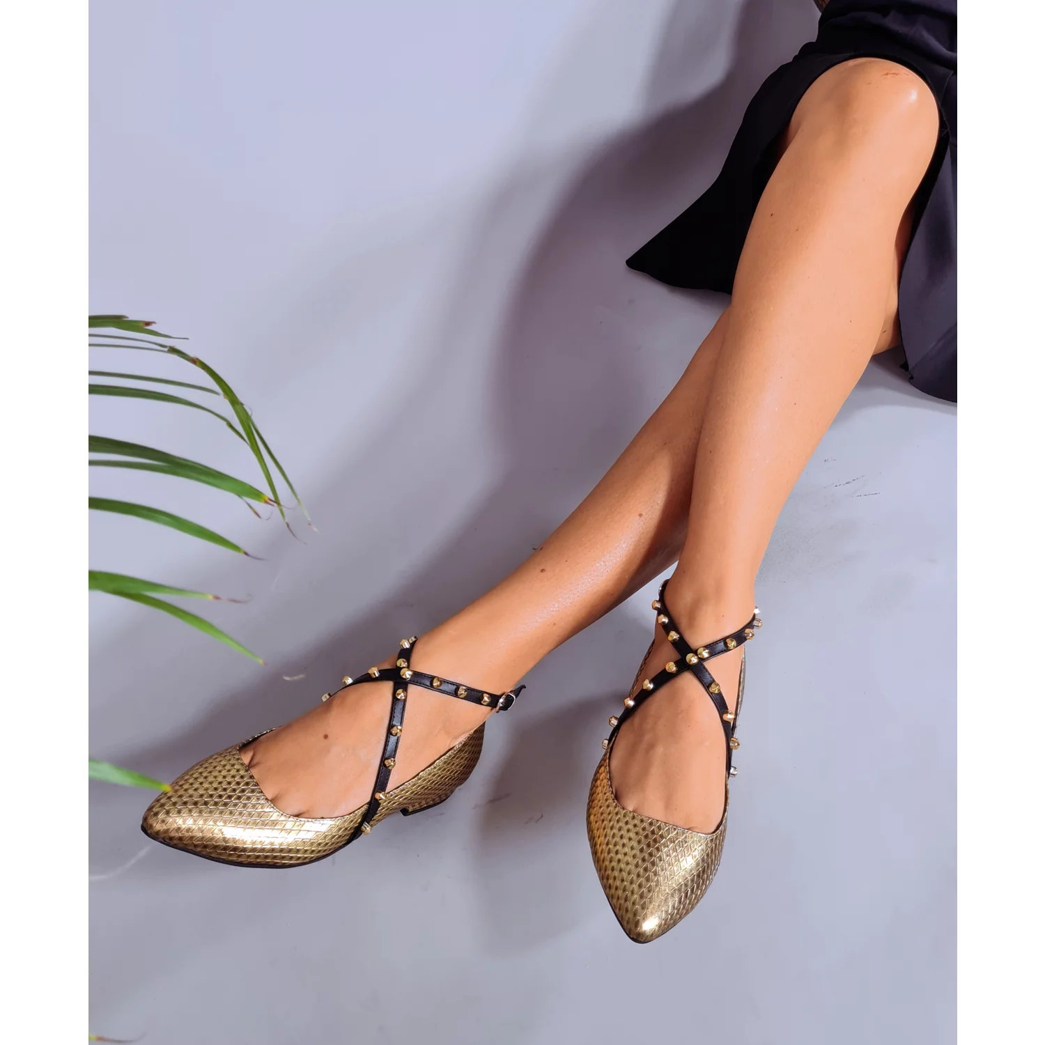 Pantofi Piele Naturala Aurii cu barete accesorizate Daliana