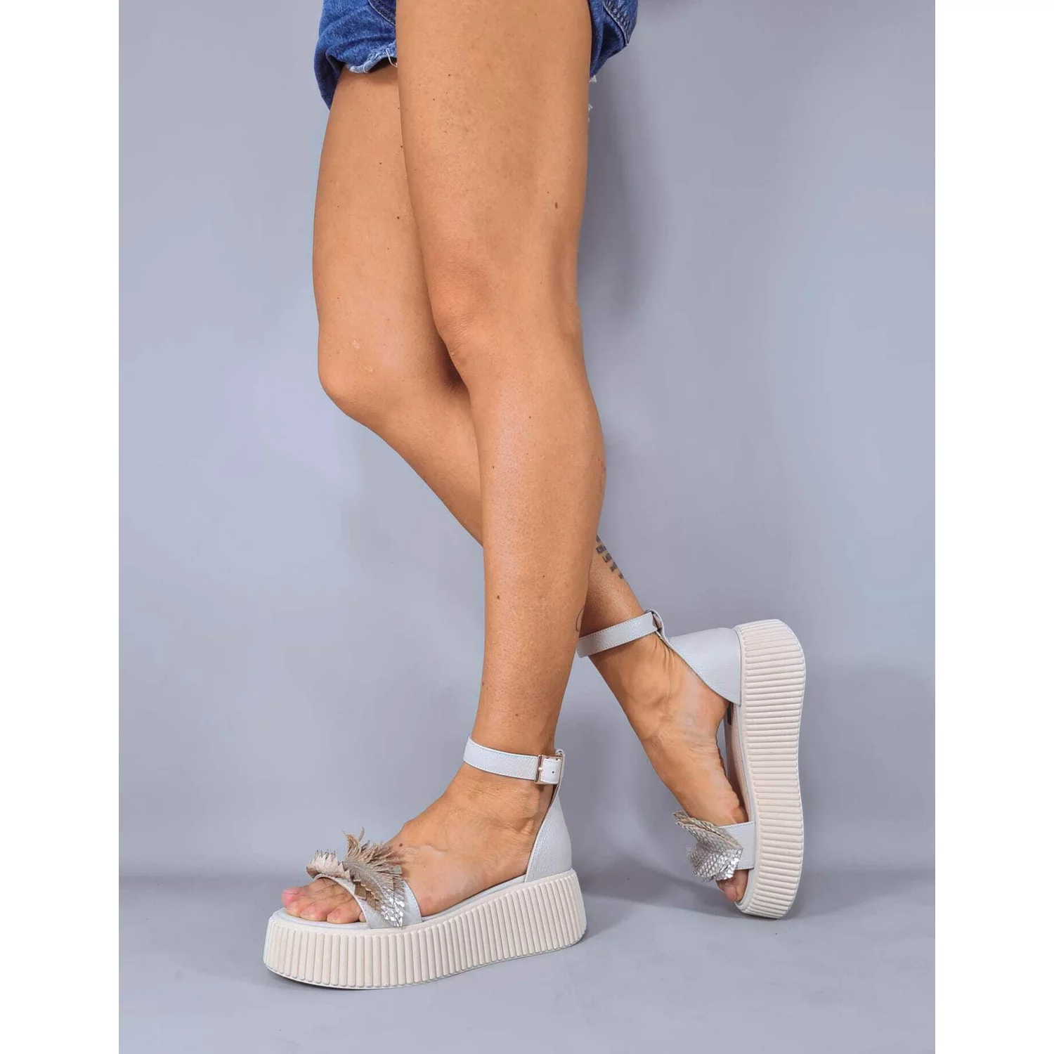 Sandale dama PIele Naturala Argintie cu accesorii Yarina