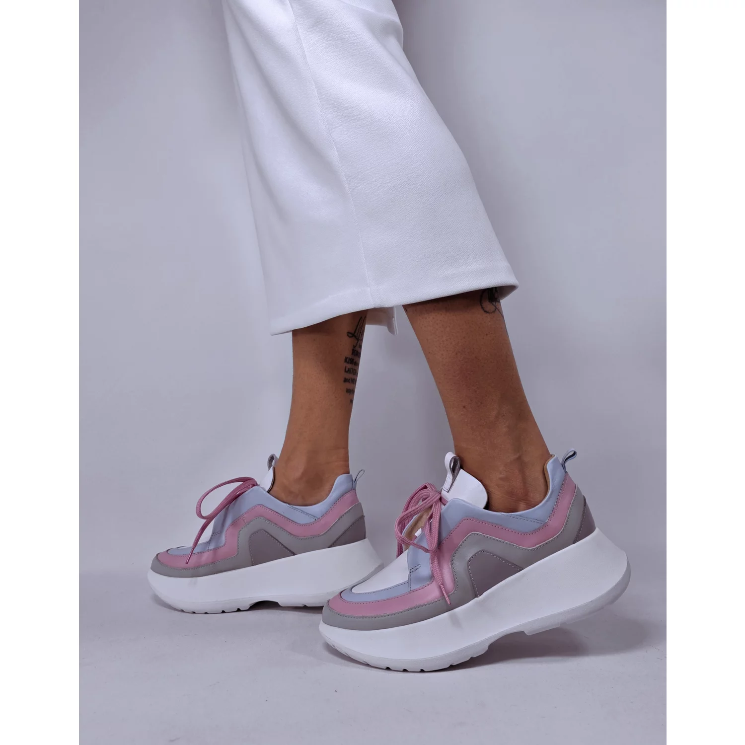 Pantofi sport Piele Naturala Albi cu Roz Selina