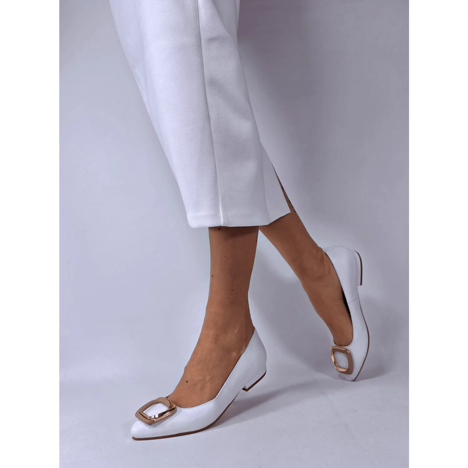 Balerini Piele Naturala Albi cu accesorii Ellen