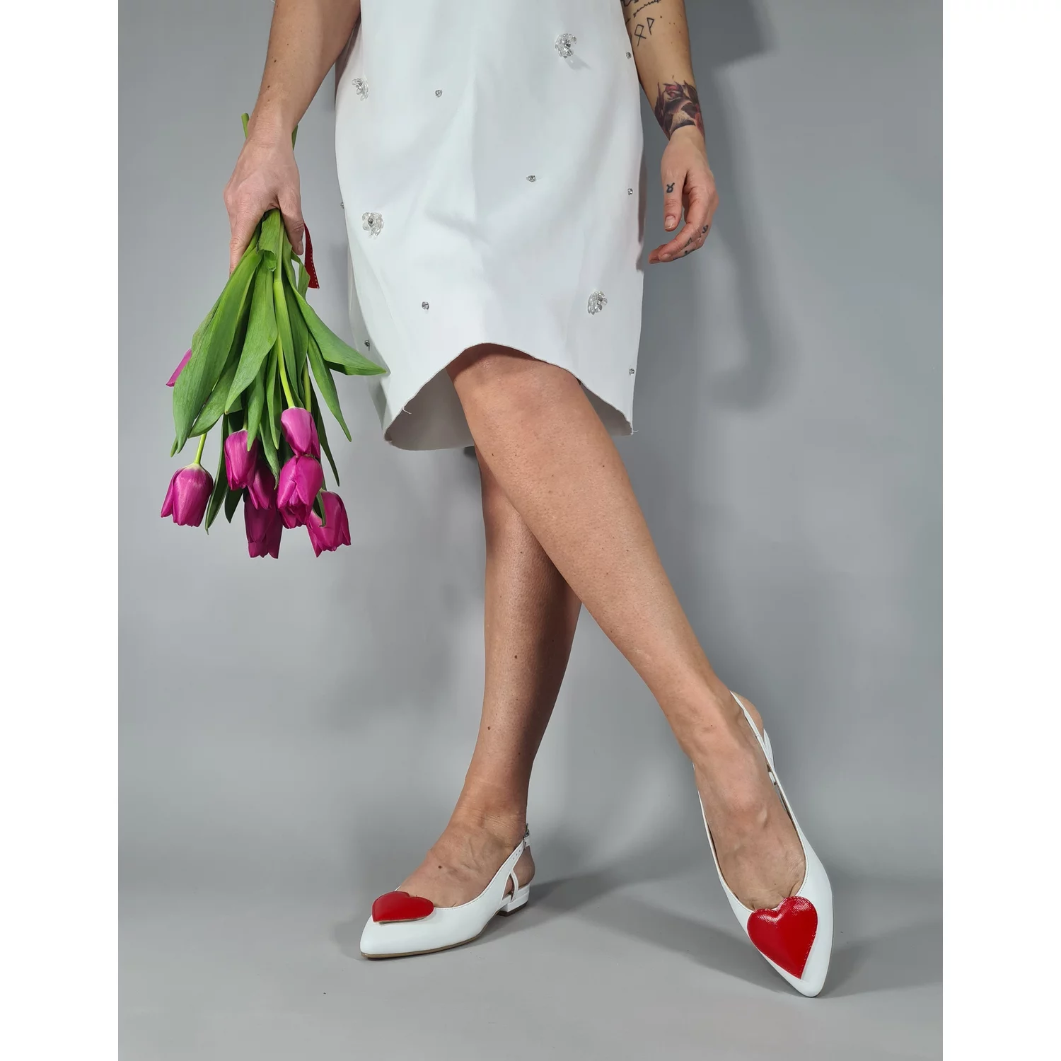 Balerini Piele Naturala Albi cu inima Dayana