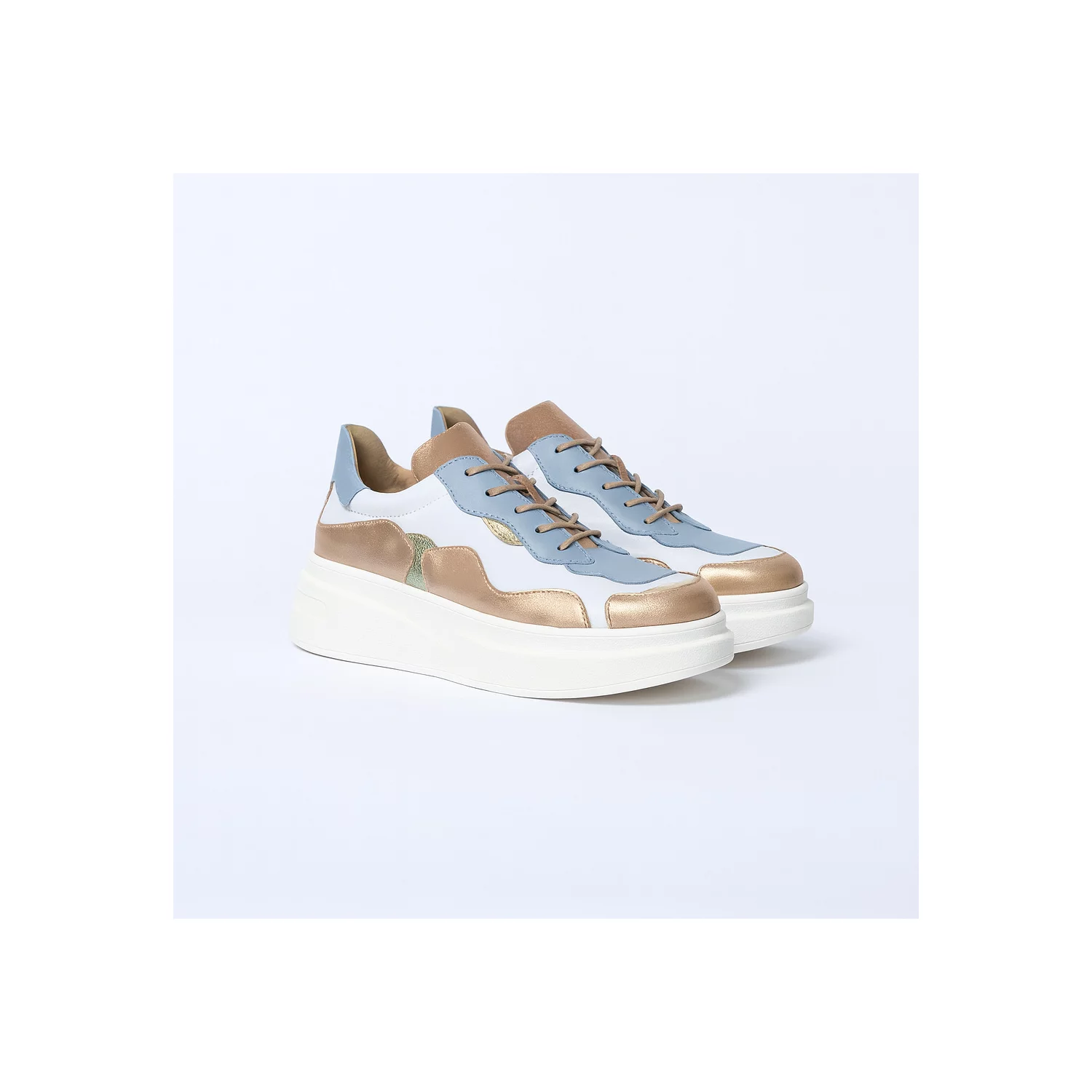 Pantofi casual Piele Naturala albi cu bej Sindy 2