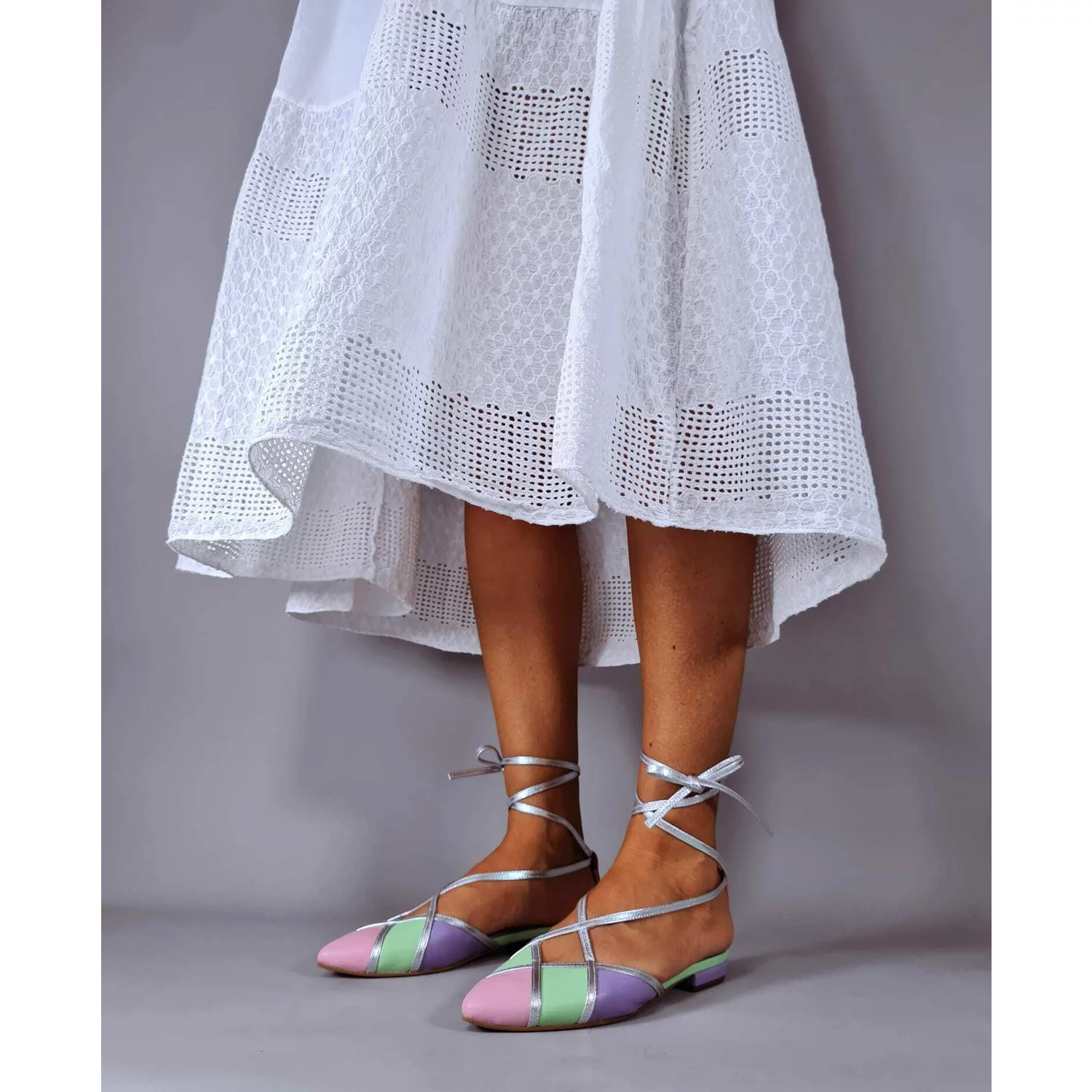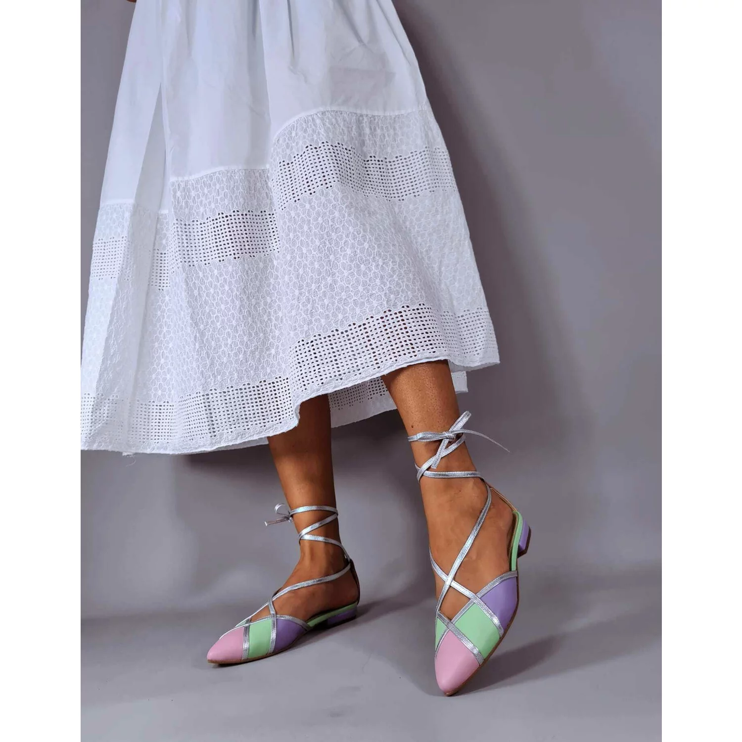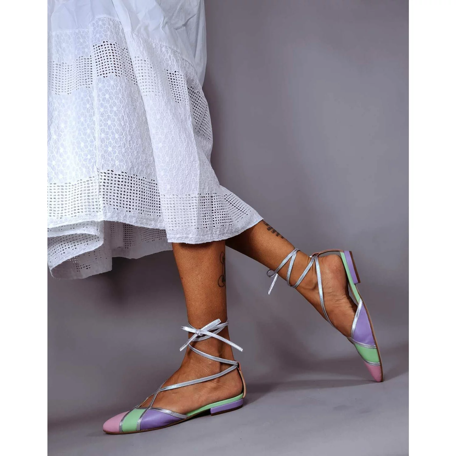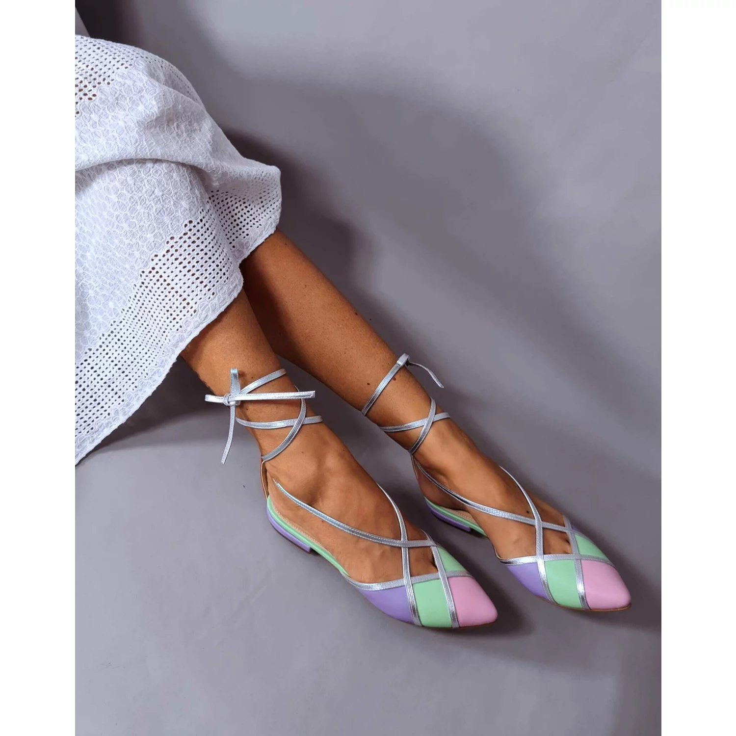 Balerini Piele Naturala presaj auriu cu funda Angel