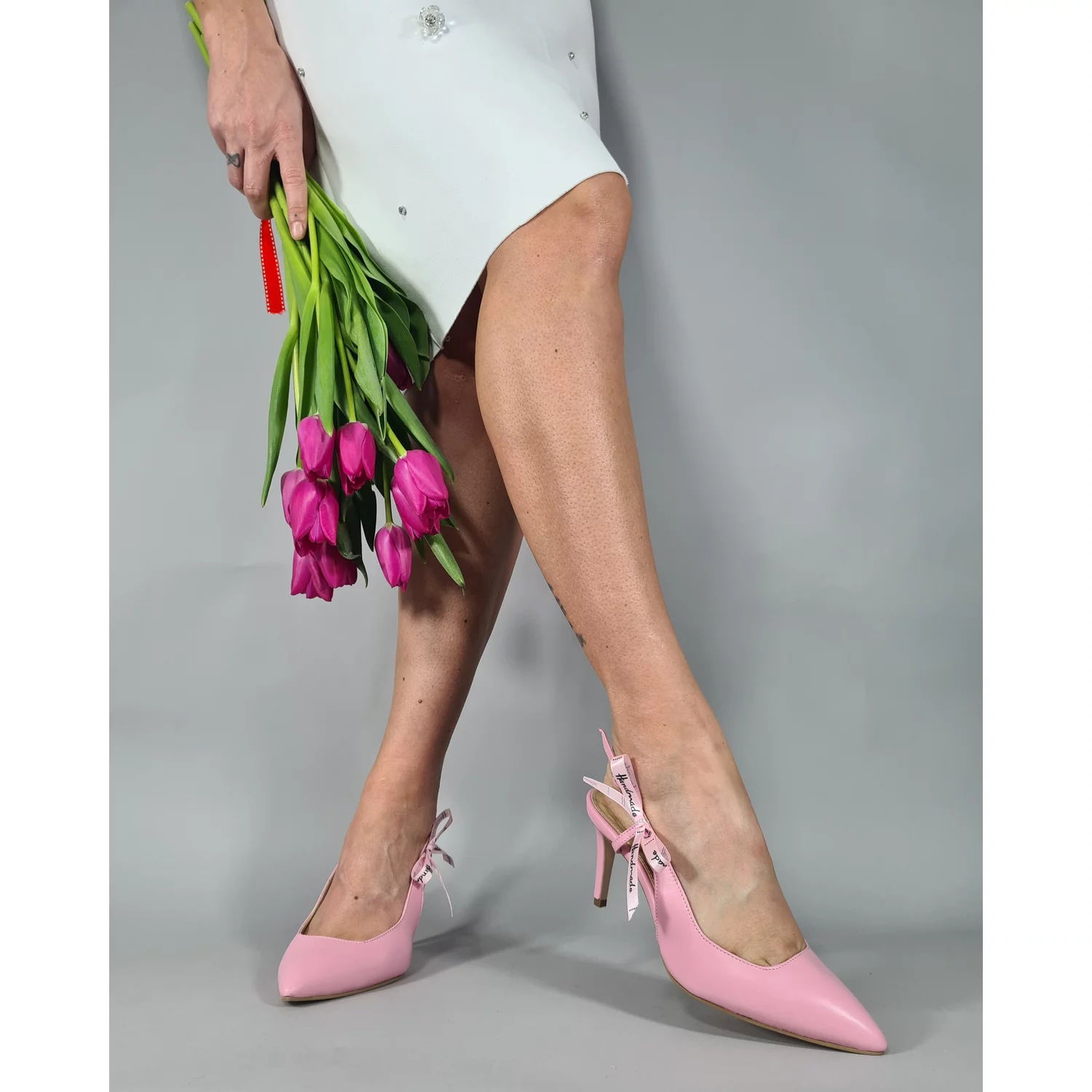 Pantofi stiletto Piele Naturala Bej cu funda Adelia