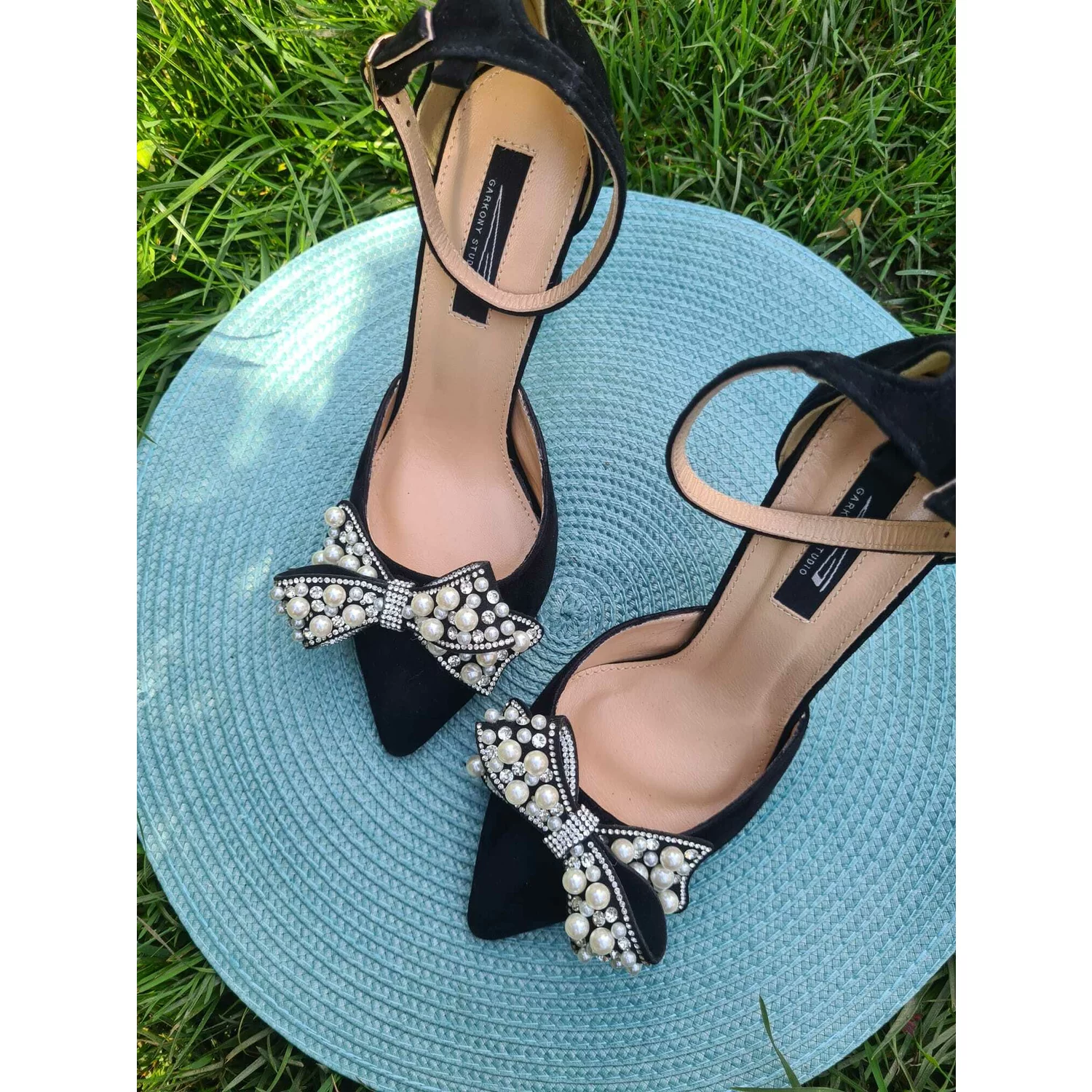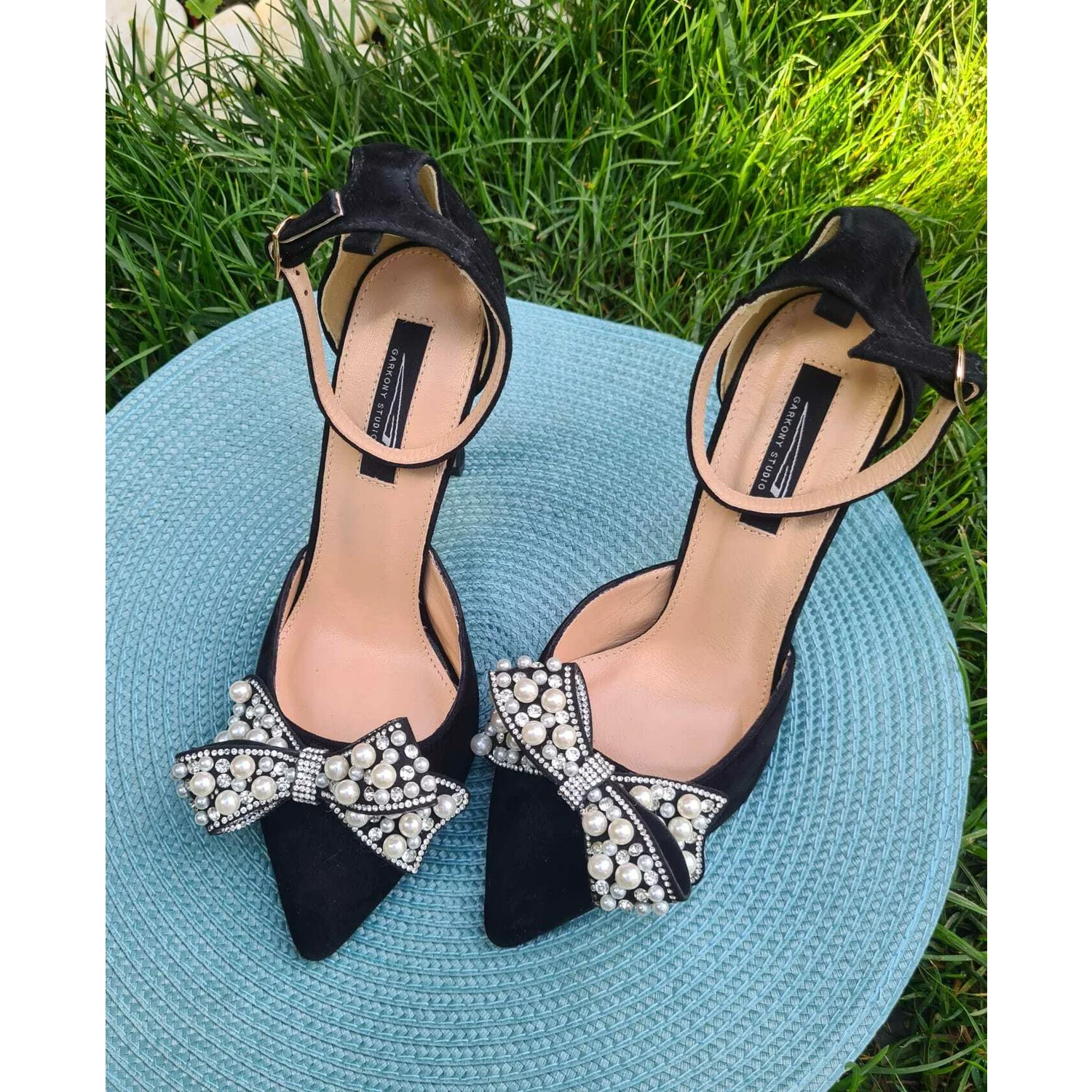 Pantofi stiletto Piele Naturala Negri cu funda perle Pearl