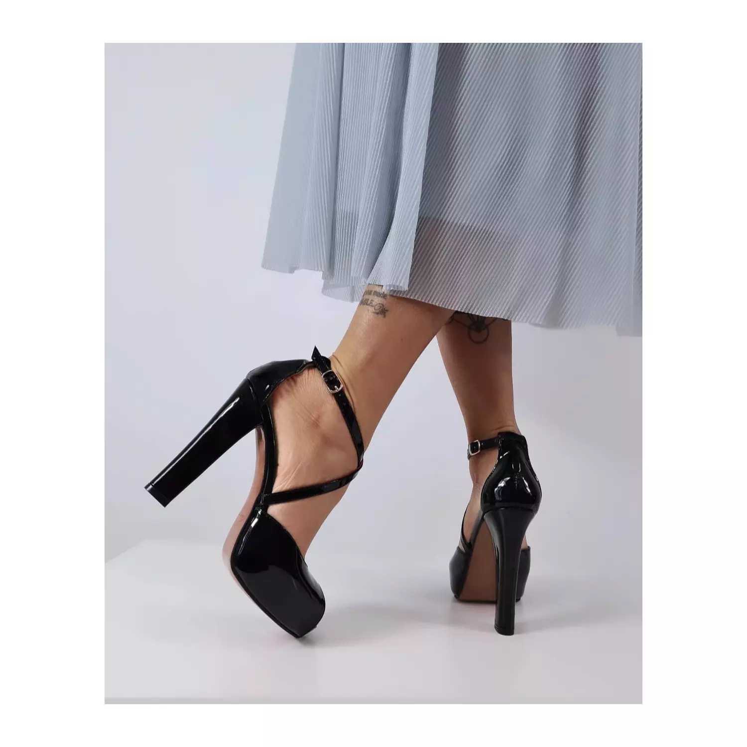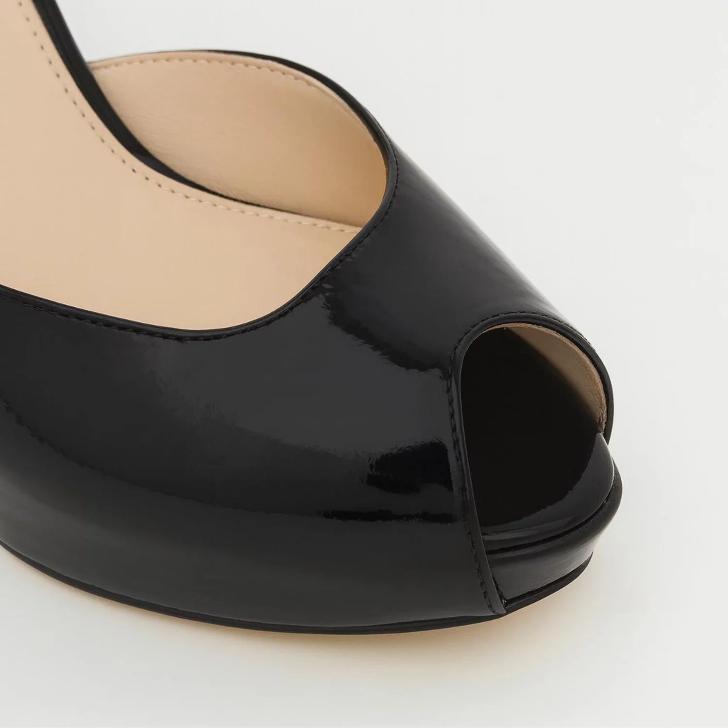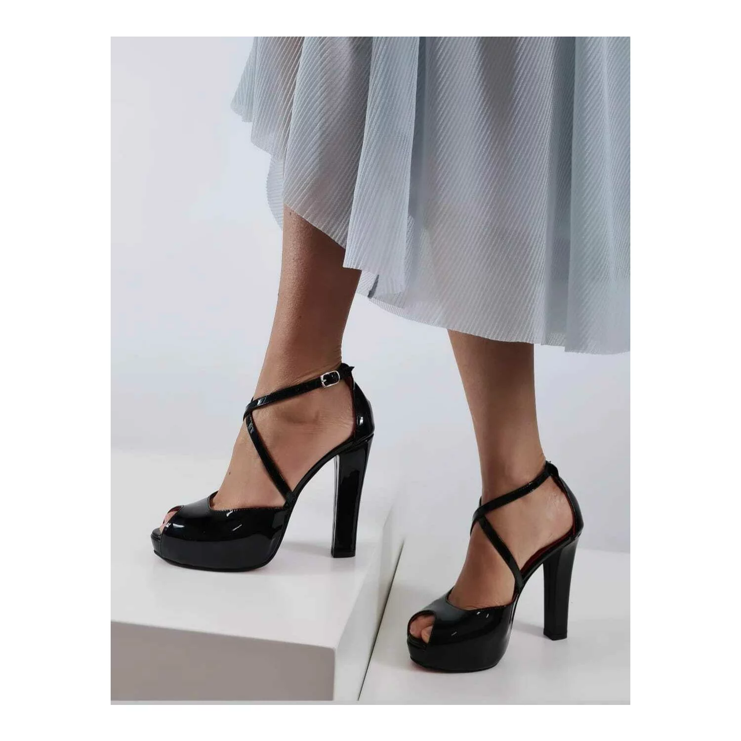 Sandale cu platou Piele Naturala lac negru Lavinia