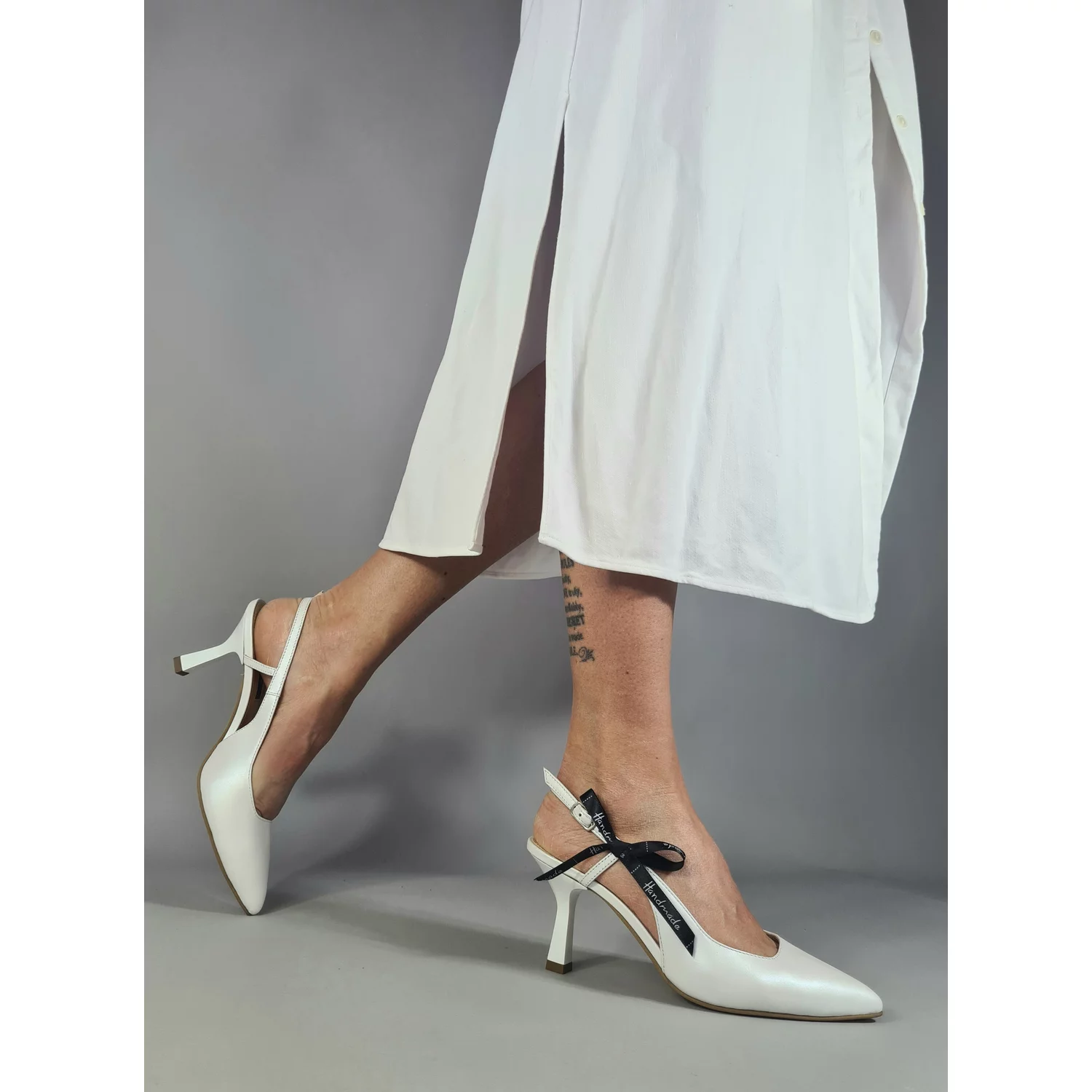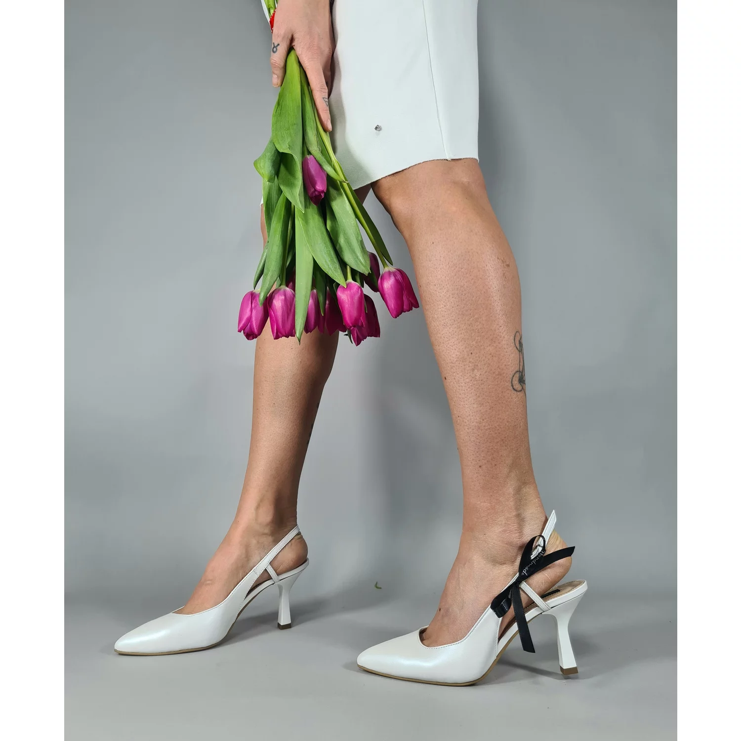 Pantofi stiletto Piele Naturala alb sidef Sesame