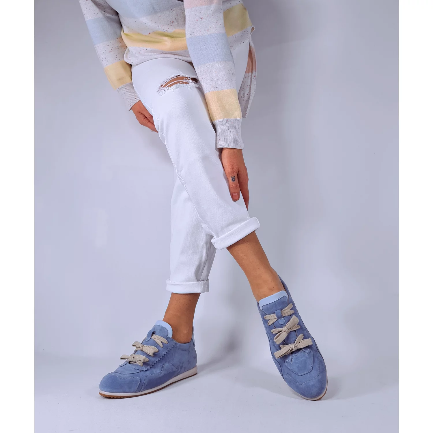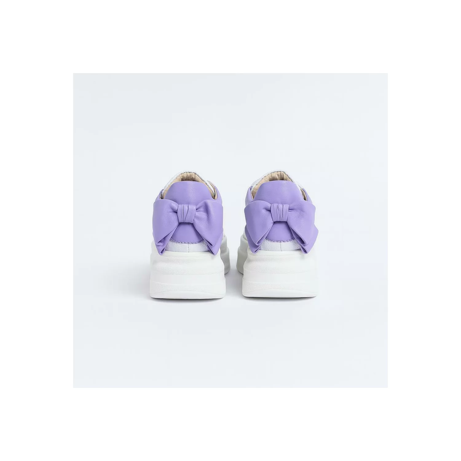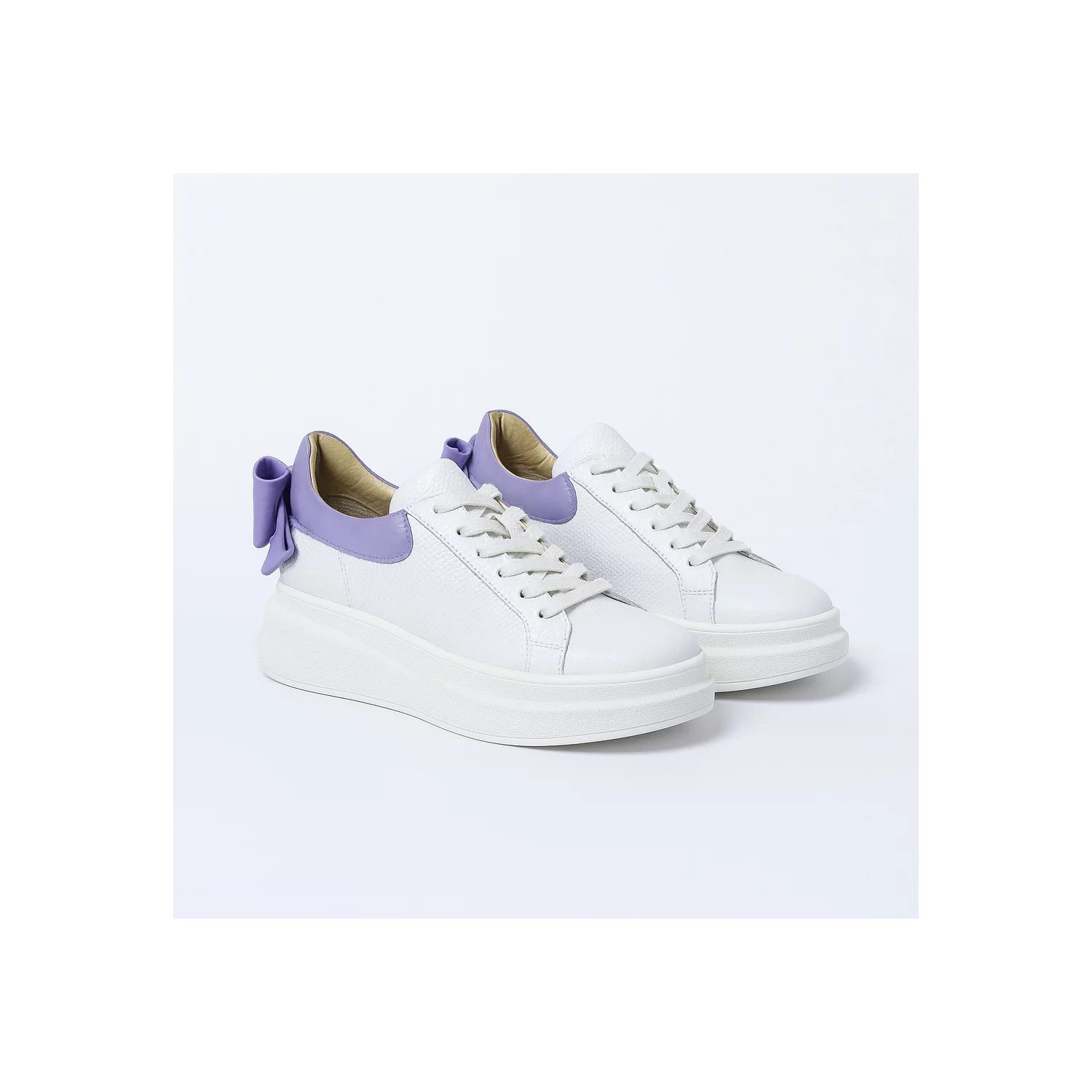Pantofi casual Piele Naturala Albi cu Lila Bow